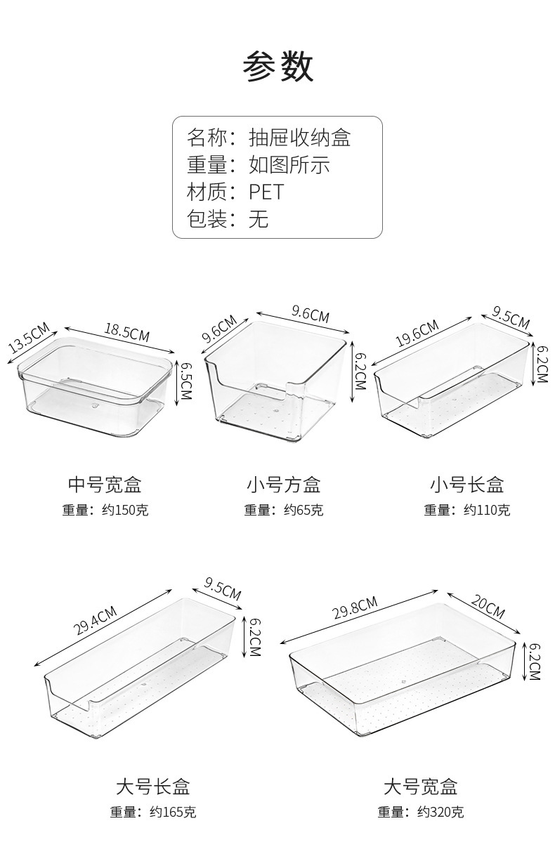 370多规格透明抽屉收纳盒无盖分格桌面整理盒收纳抽屉分隔盒