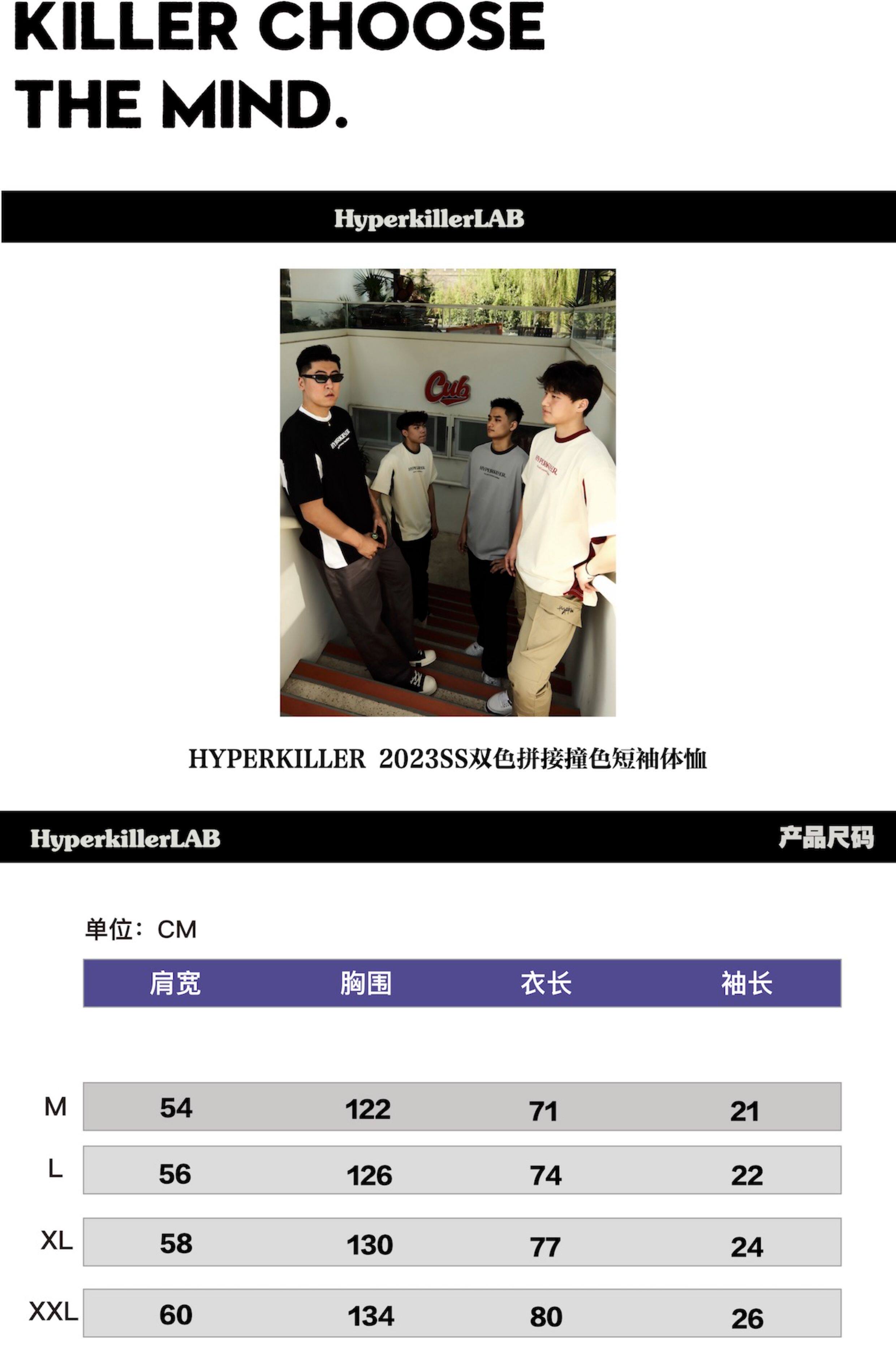 HYPERKILLER 2023SS李峙錦新款雙色拼接撞色基礎短袖T恤潮流寬鬆