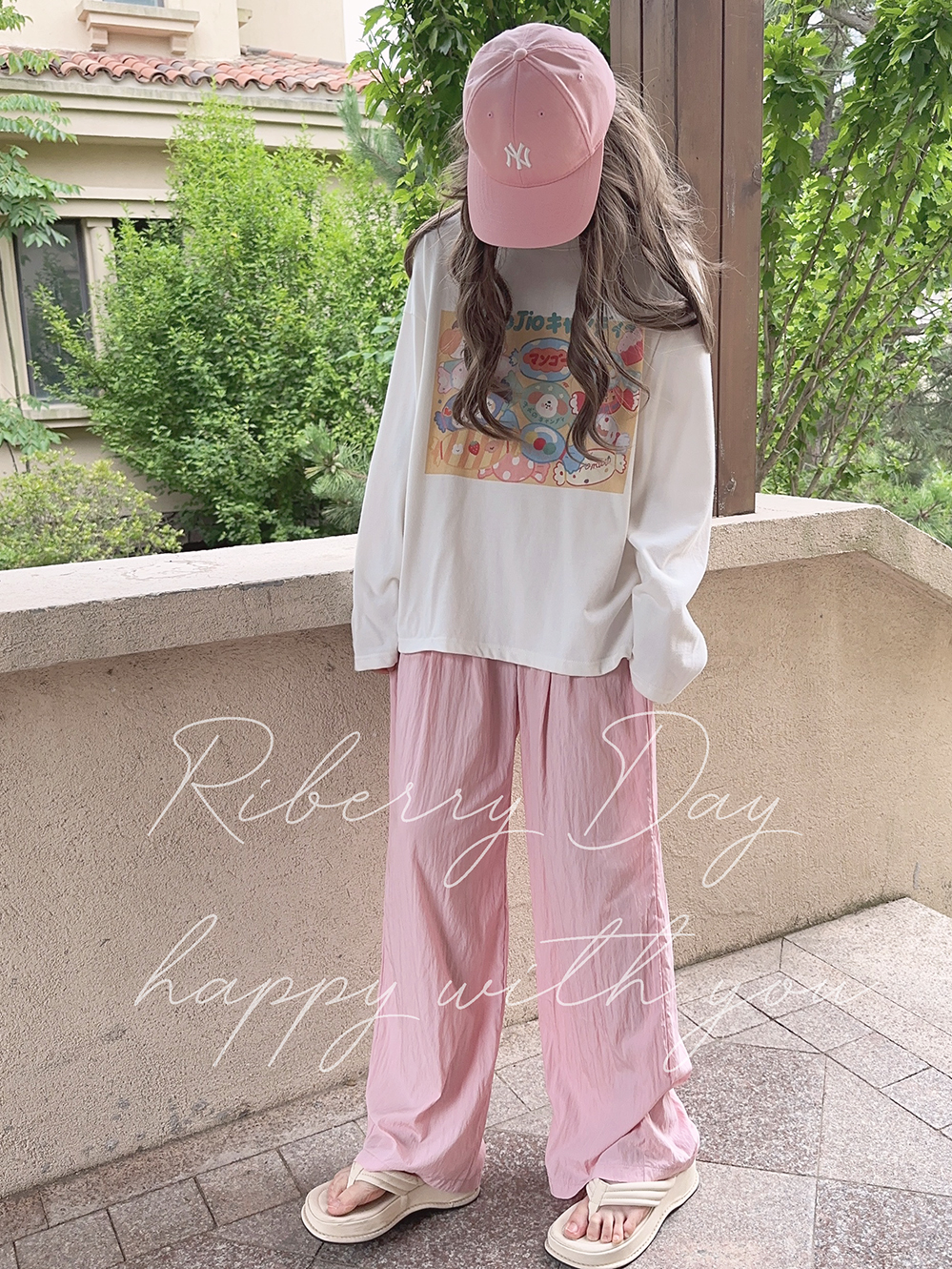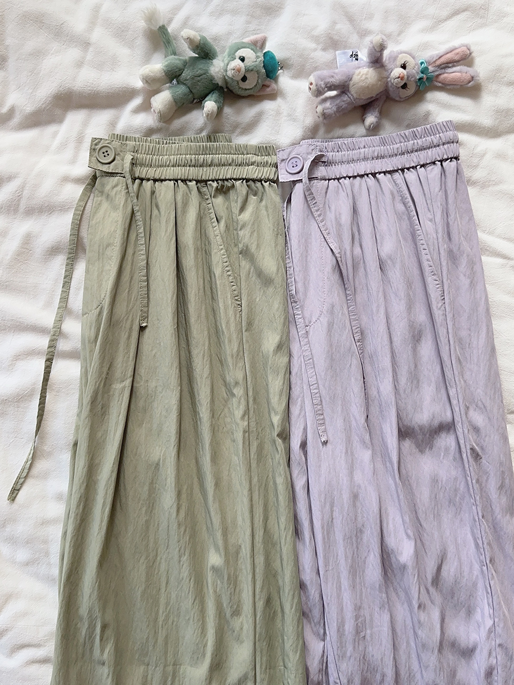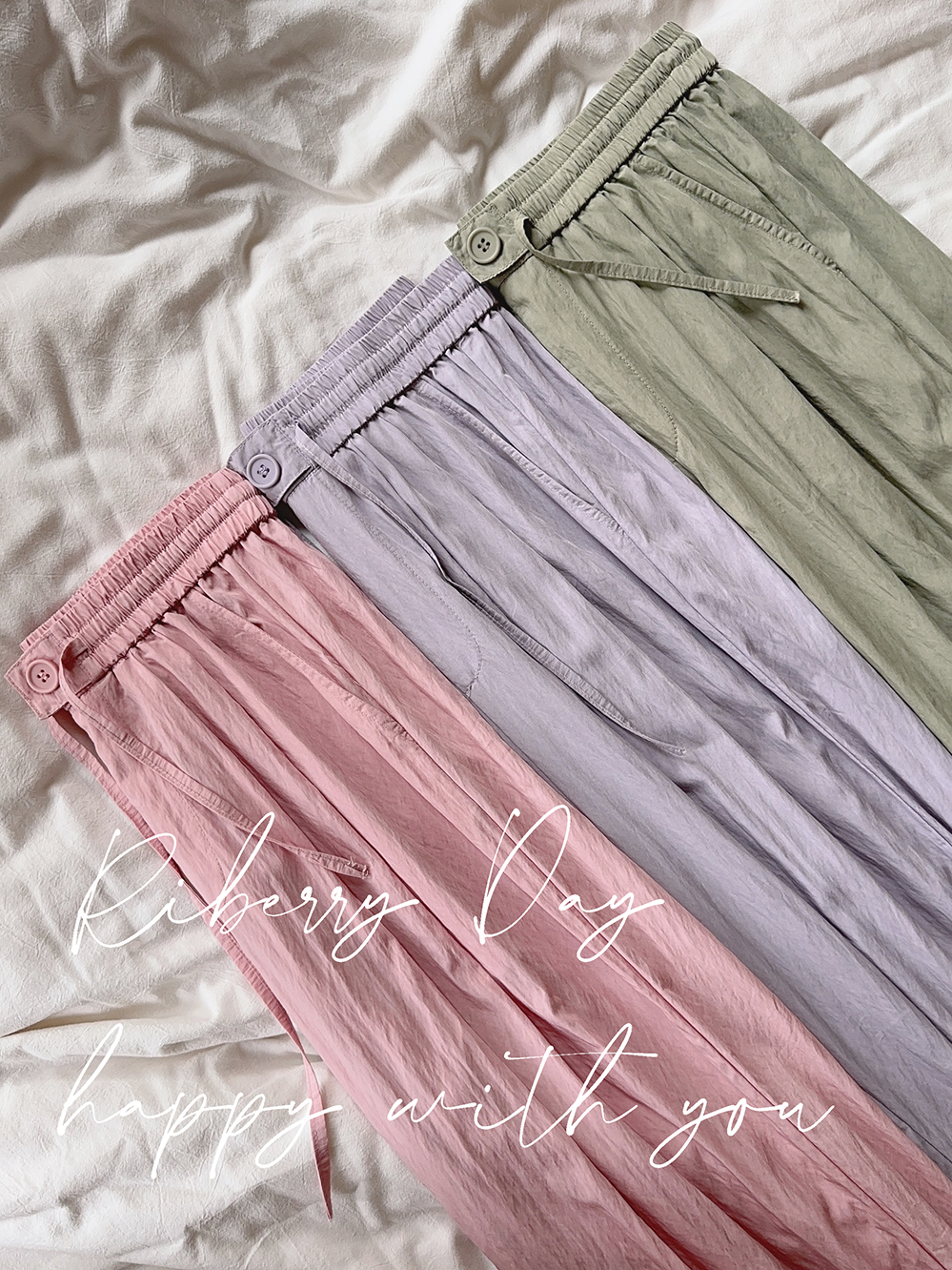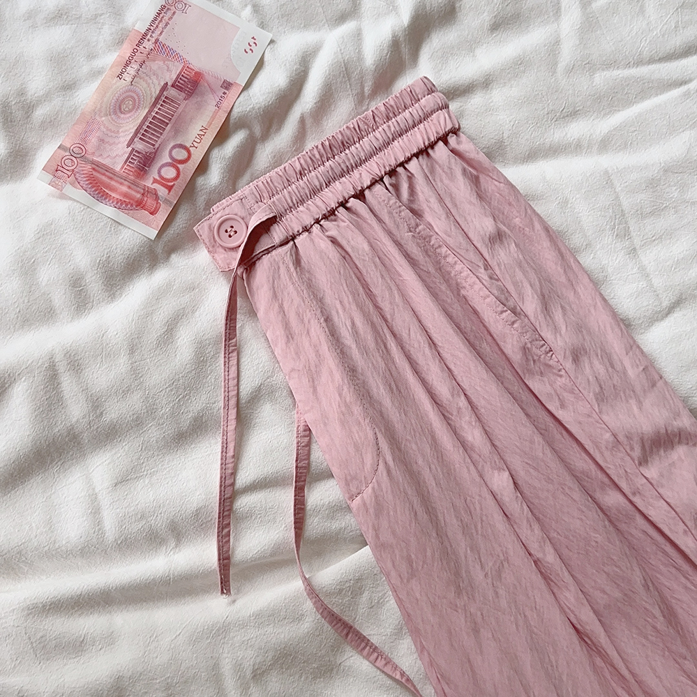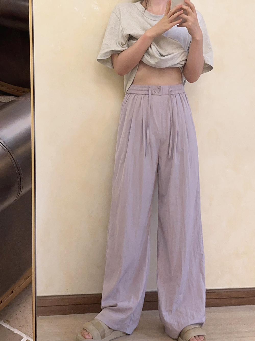 柔軟 輕薄涼快 抽繩鬆緊腰 寬鬆直筒 休閒長褲 夏季女 H