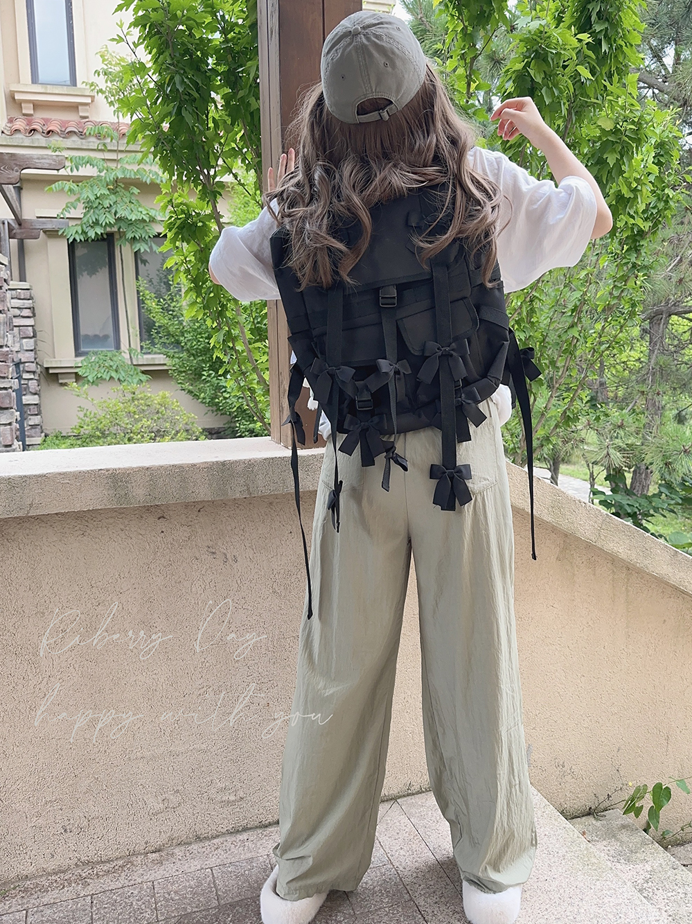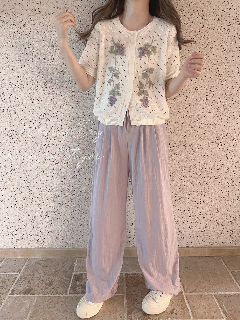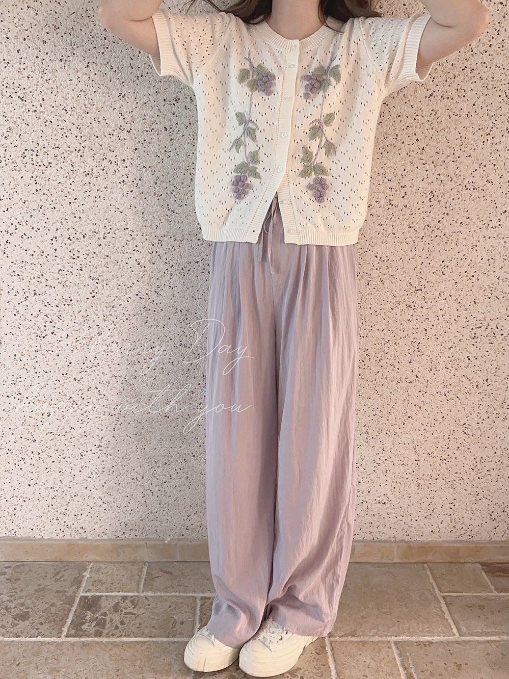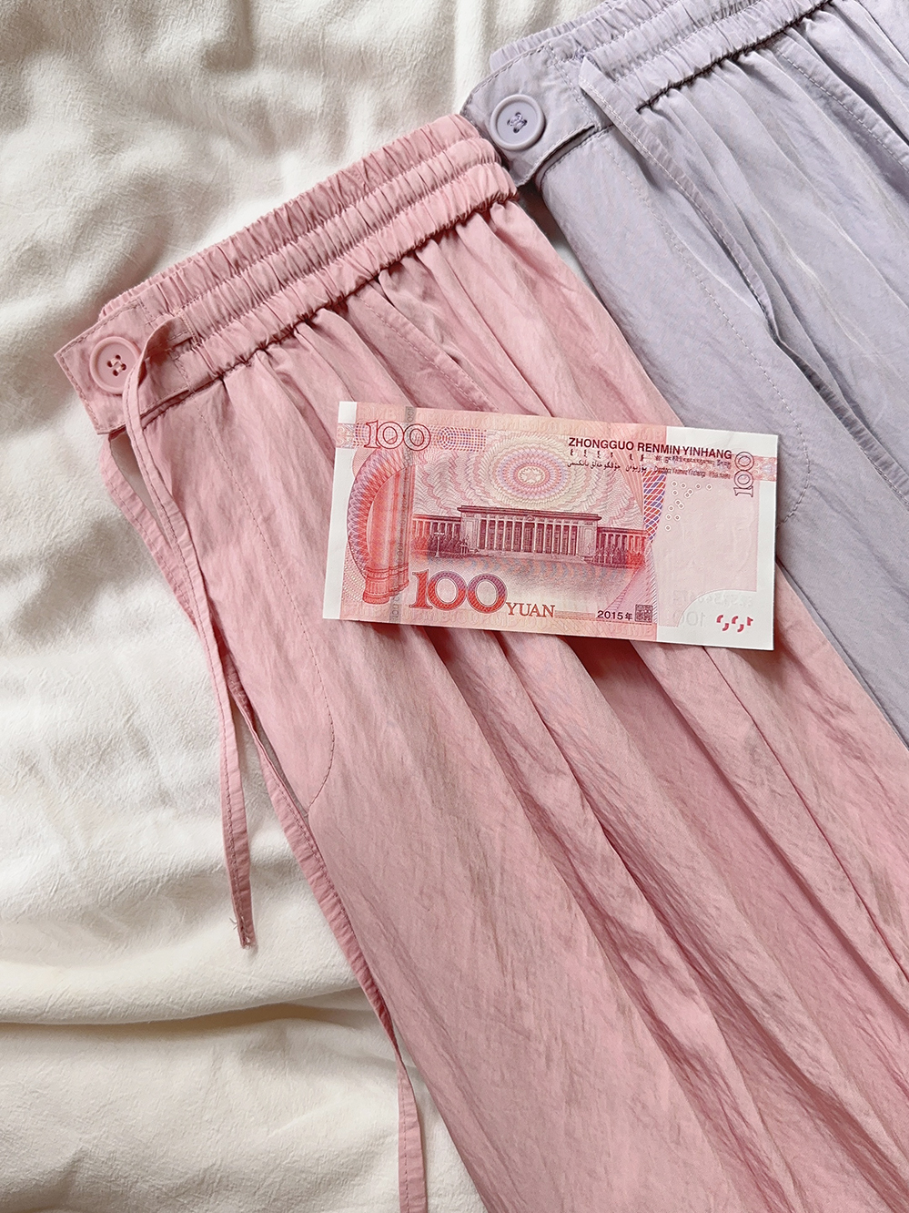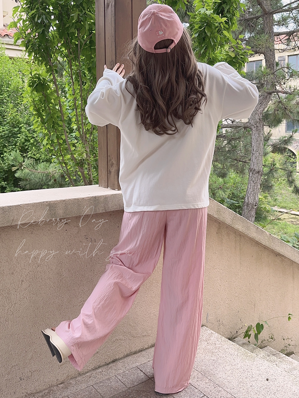 柔軟 輕薄涼快 抽繩鬆緊腰 寬鬆直筒 休閒長褲 夏季女 H