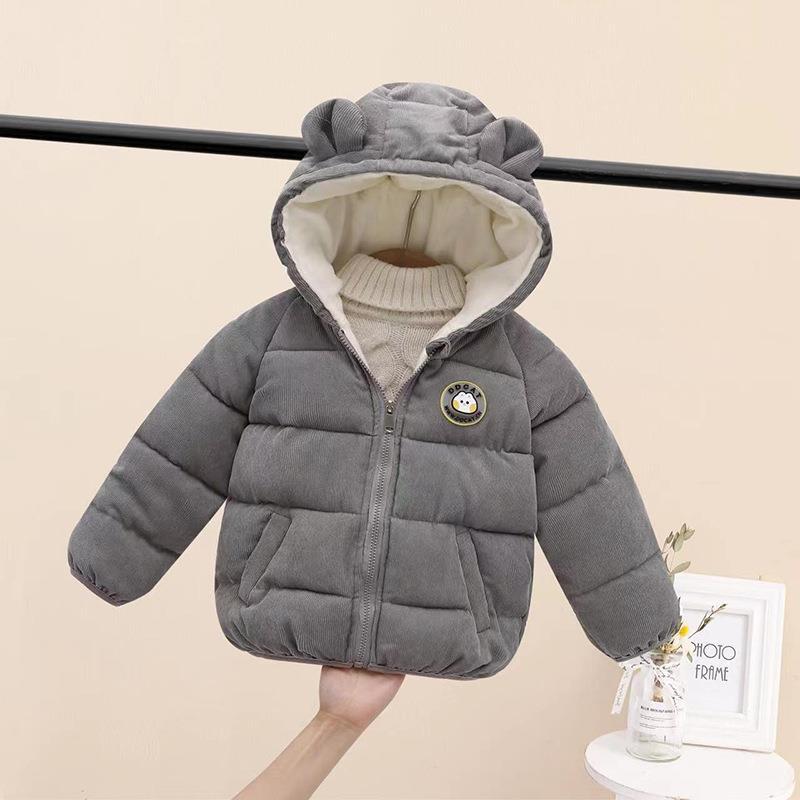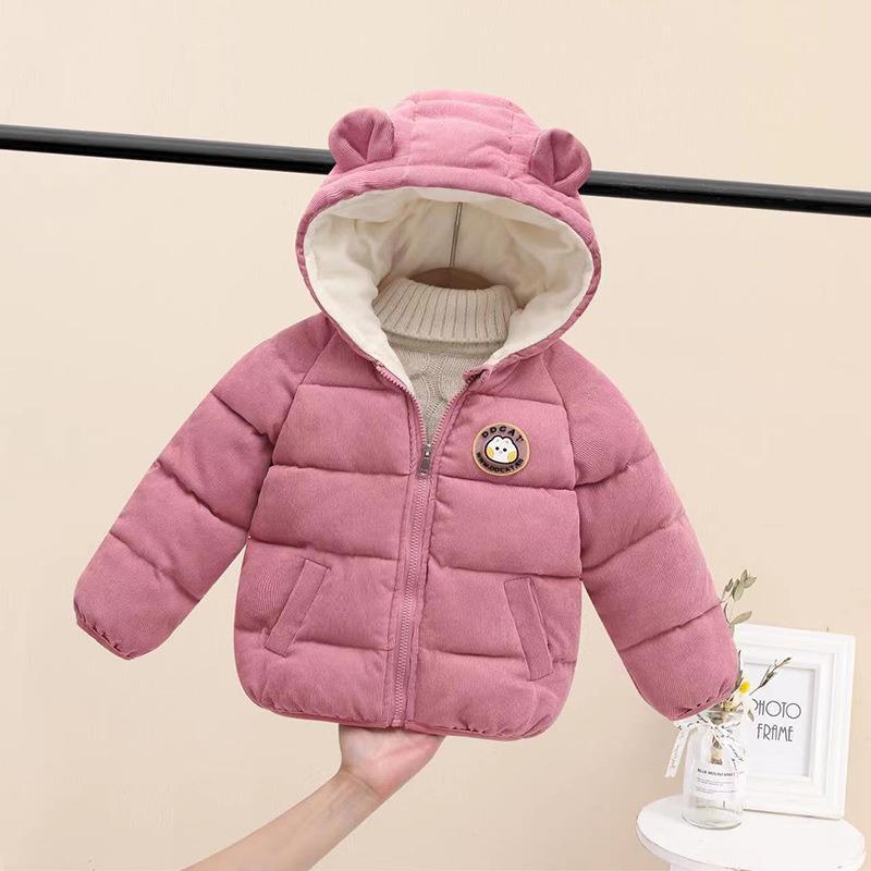 冬季童装儿童羽绒服男女童加厚棉服小耳朵宝宝灯芯绒短款棉衣外套
