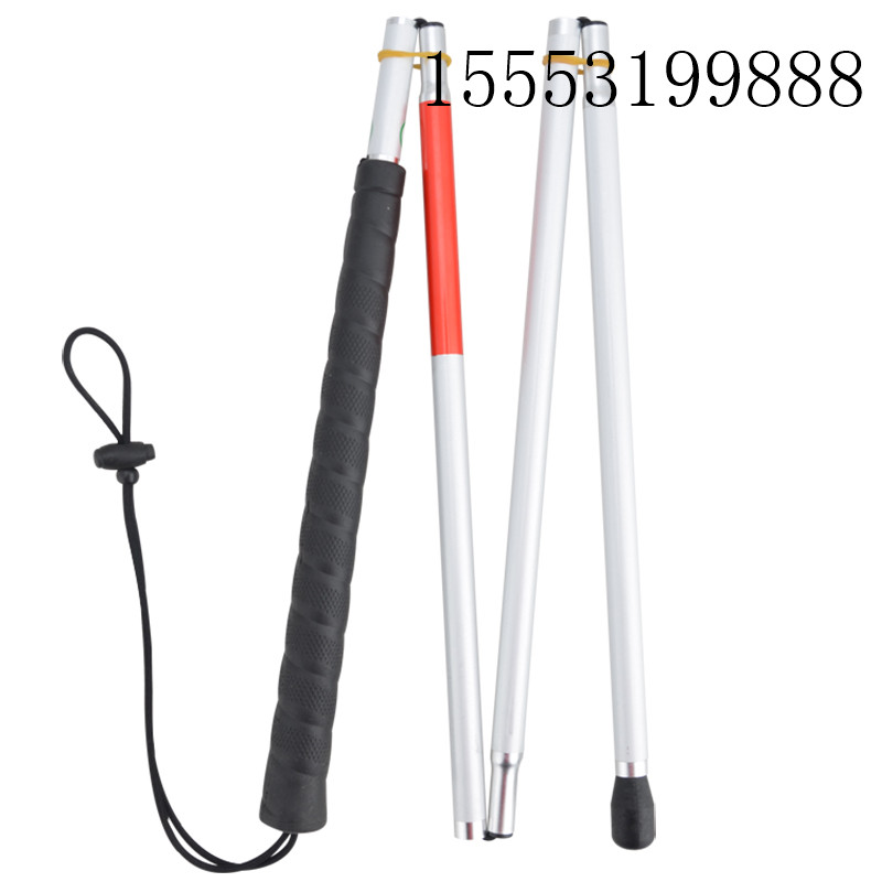 7节钛合金卡扣盲杖杖杆材质。钛合金  拉开长度1.23米。伸缩后30厘米 重量150g 手柄材质;泡绵 。杖头;金属 杖柄顶端附带尼龙挂绳