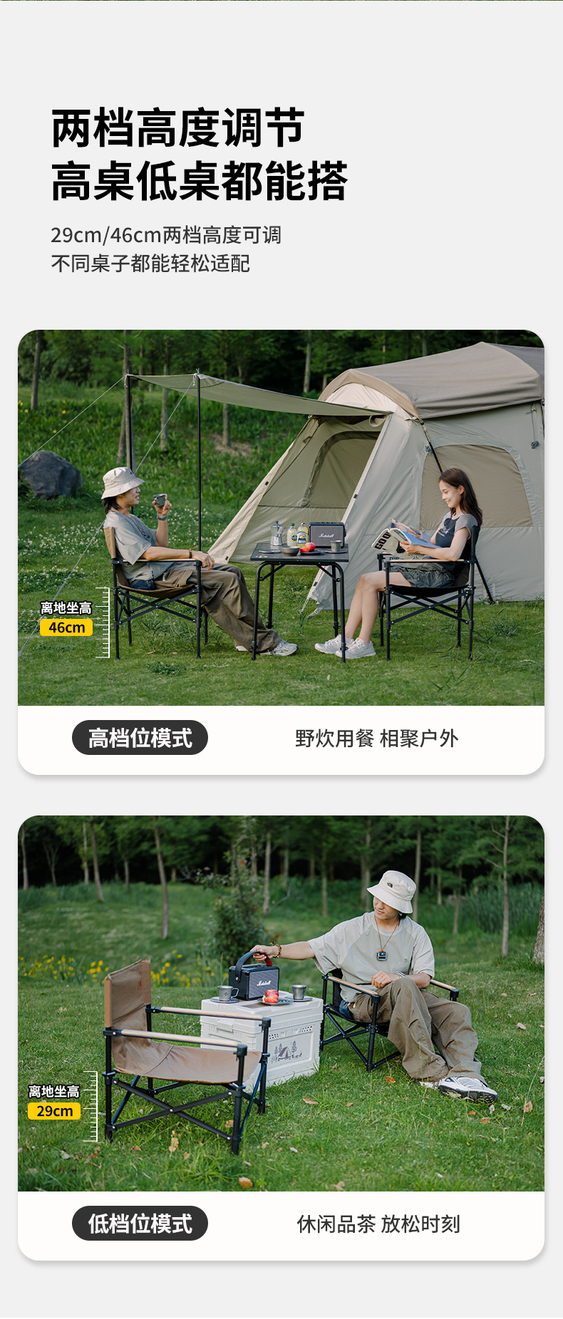 Naturehike挪客高低可調椅戶外靠背椅露營椅子野餐野營可攜式摺疊椅