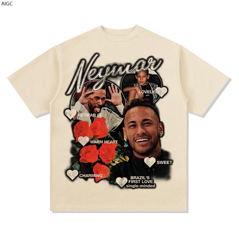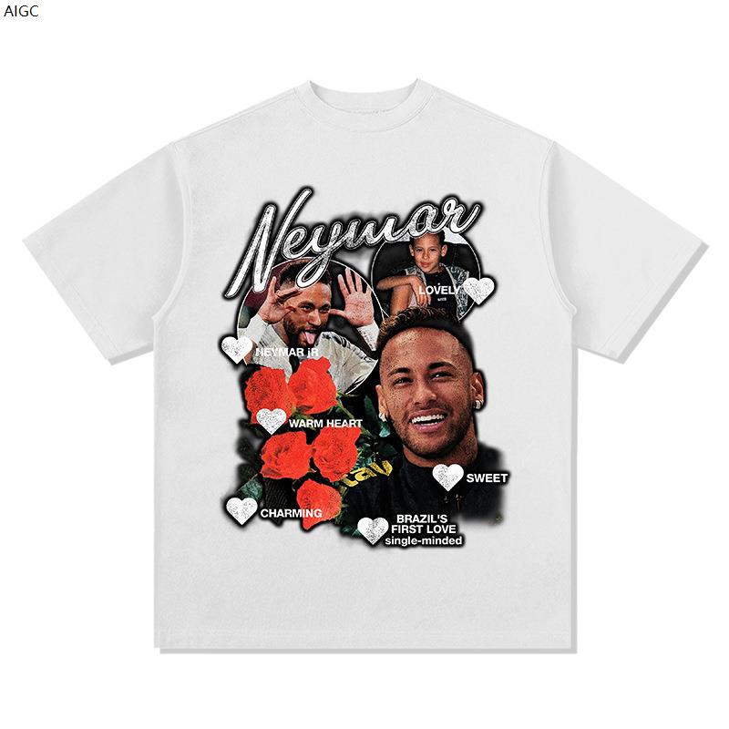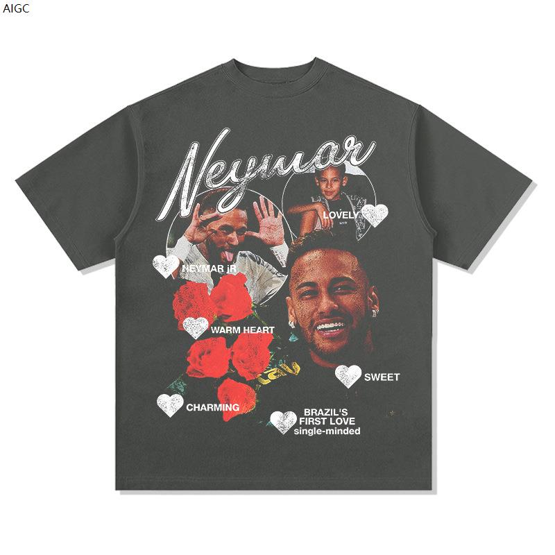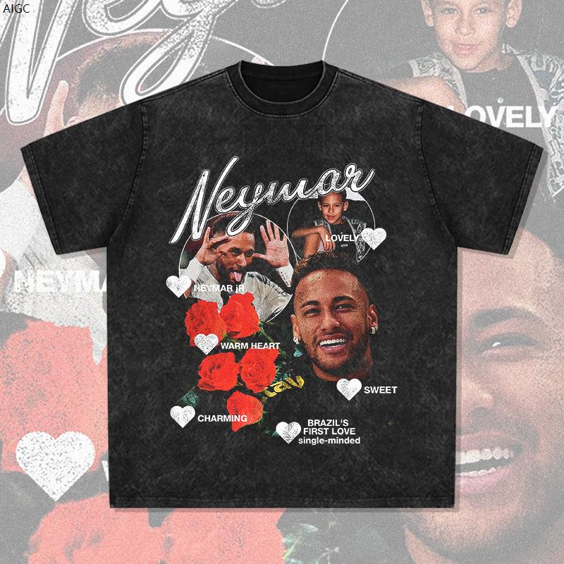 小紅書熱賣|內馬爾Neymar足球球星復古印花長袖短袖T恤水洗做舊重