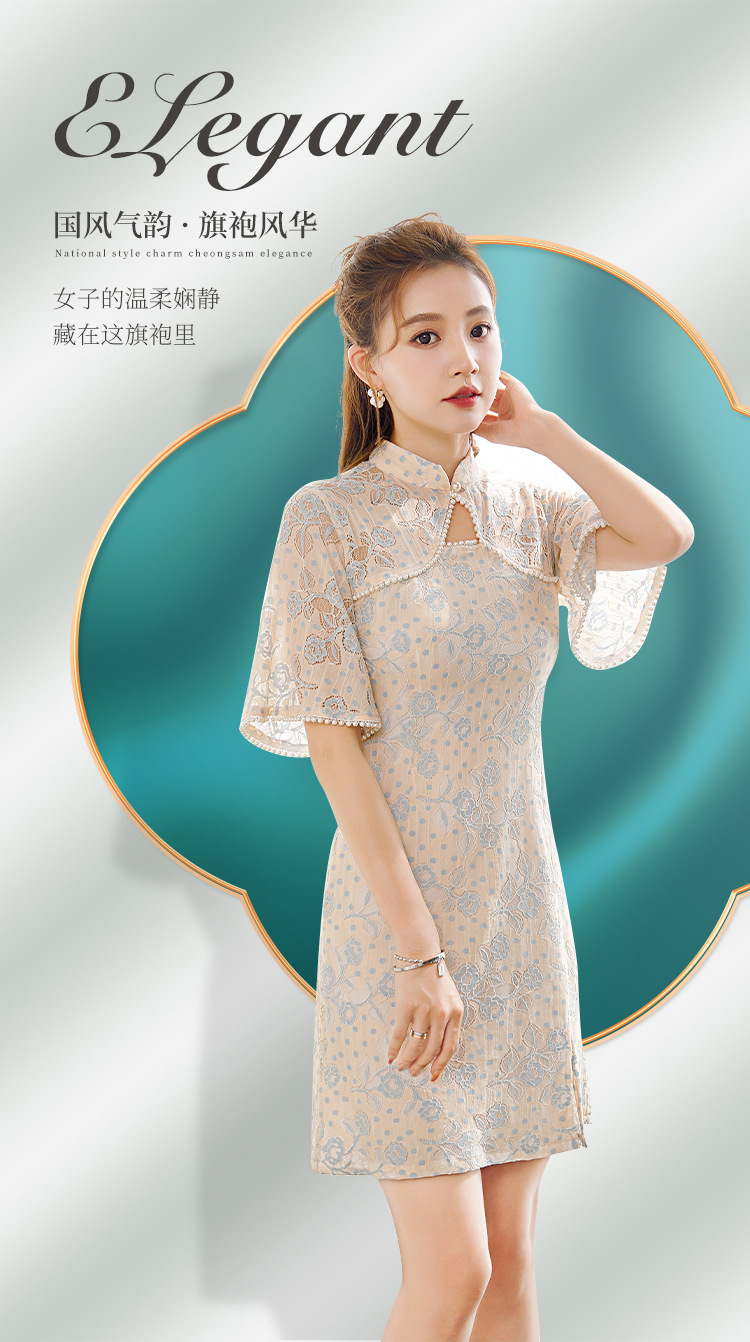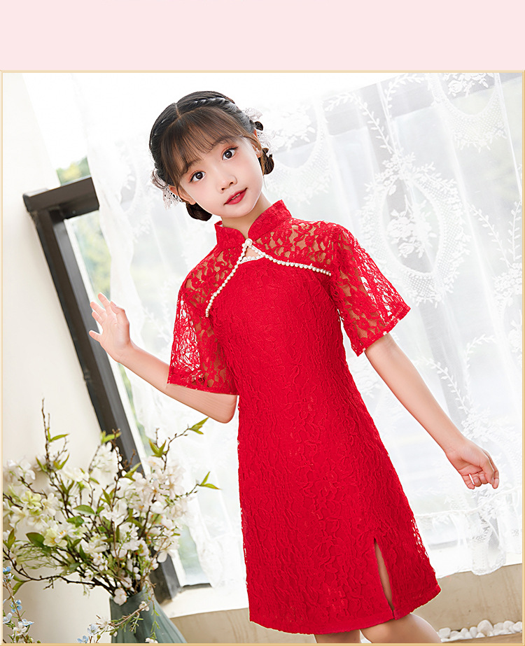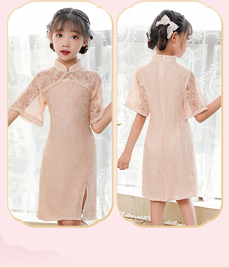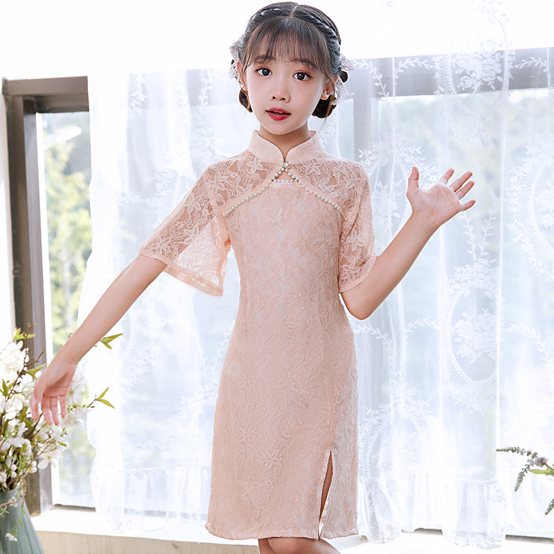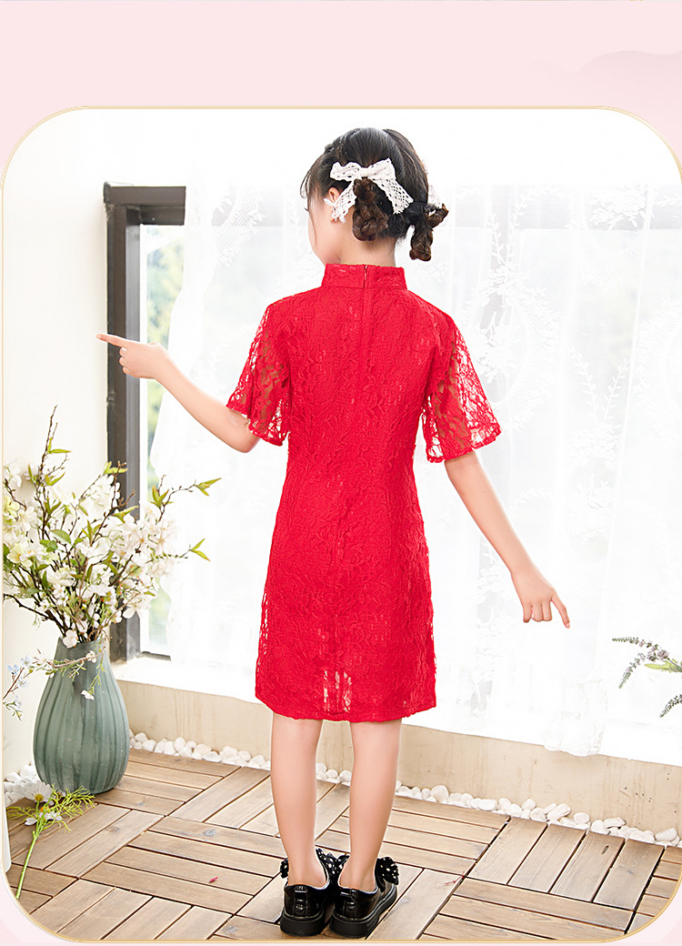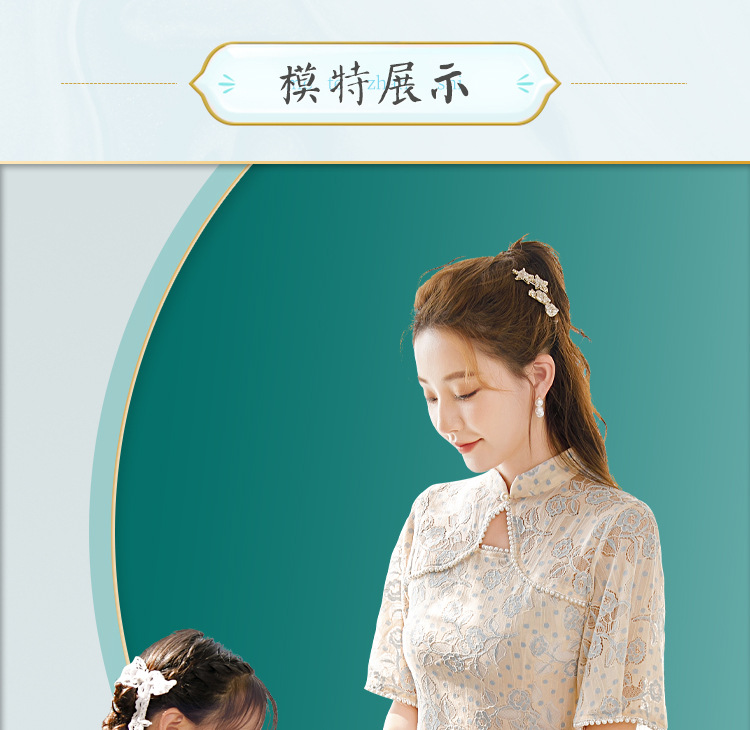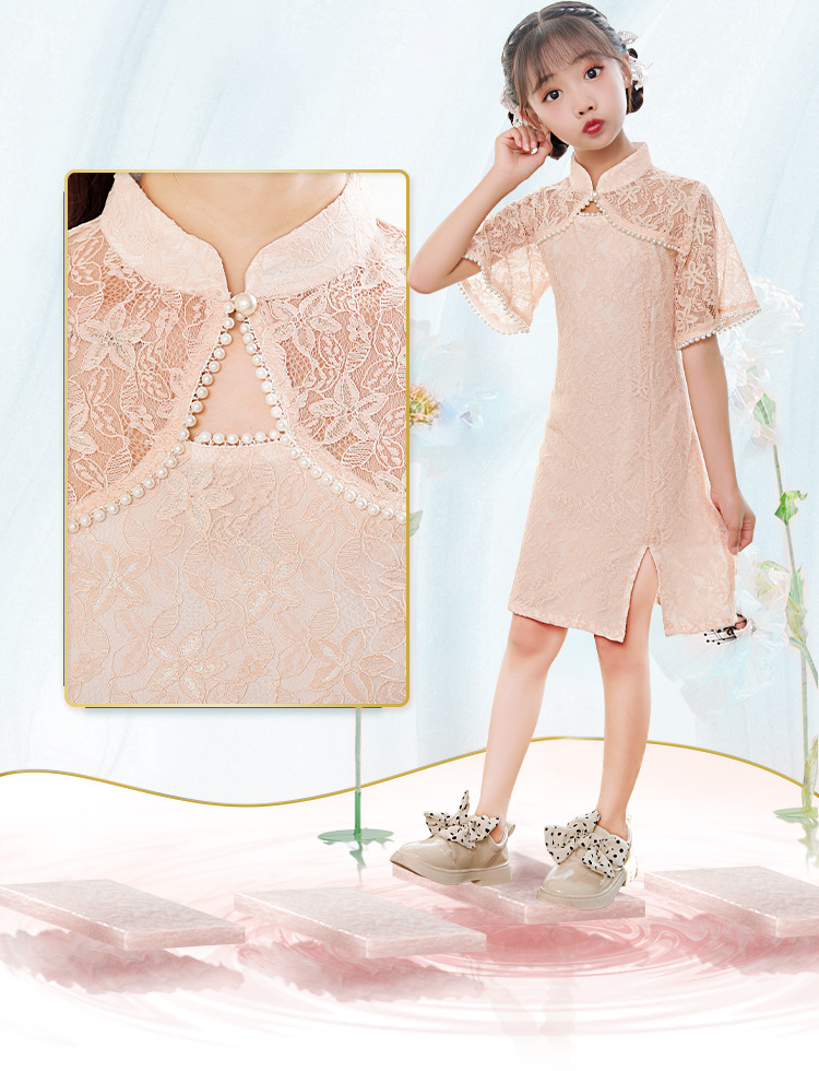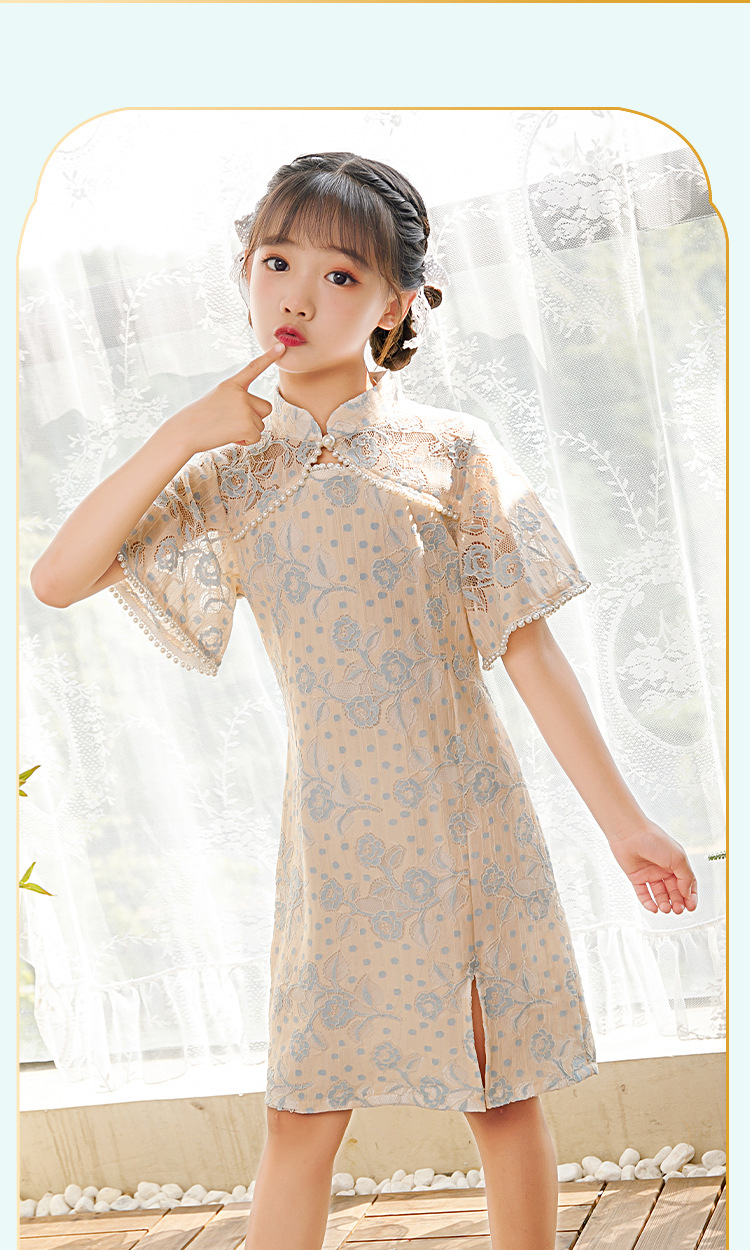 亲子装夏装母女装旗袍连衣裙2023新款高端蕾丝旗袍大袖女童连衣裙