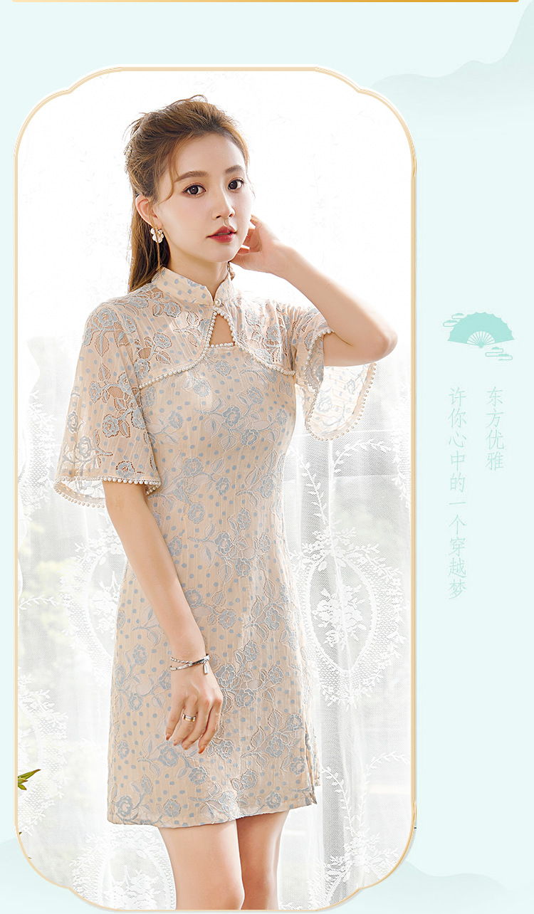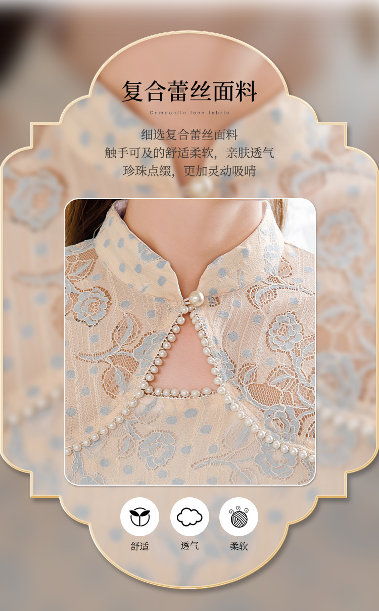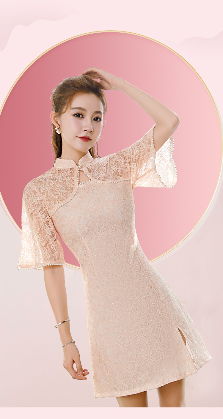 颜色 米色(蓝花),粉色,本白色,杏色,红色亮片(喇叭短袖)