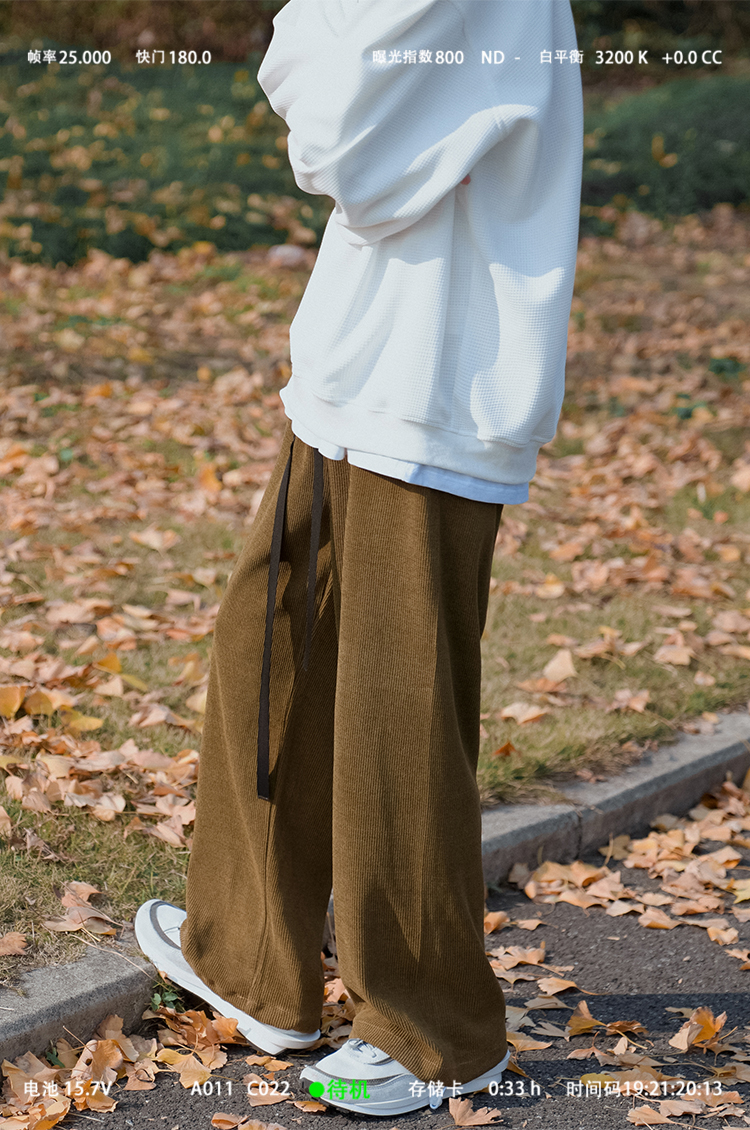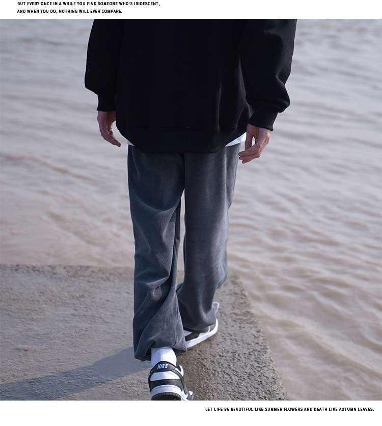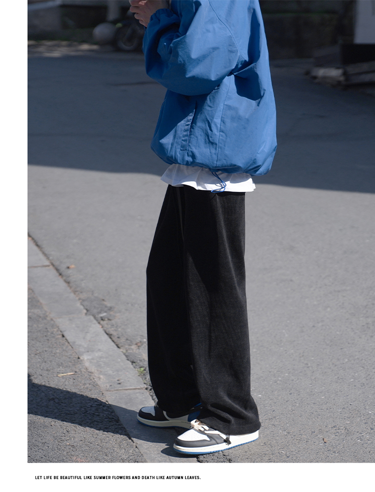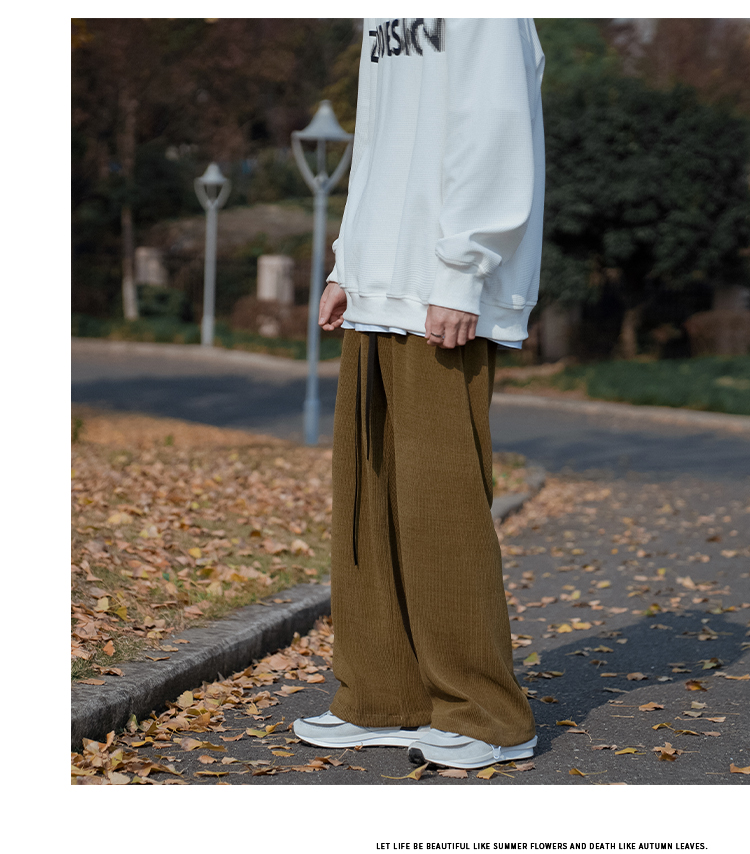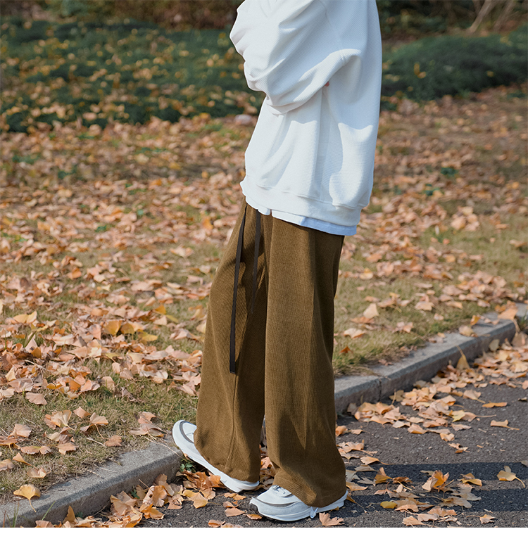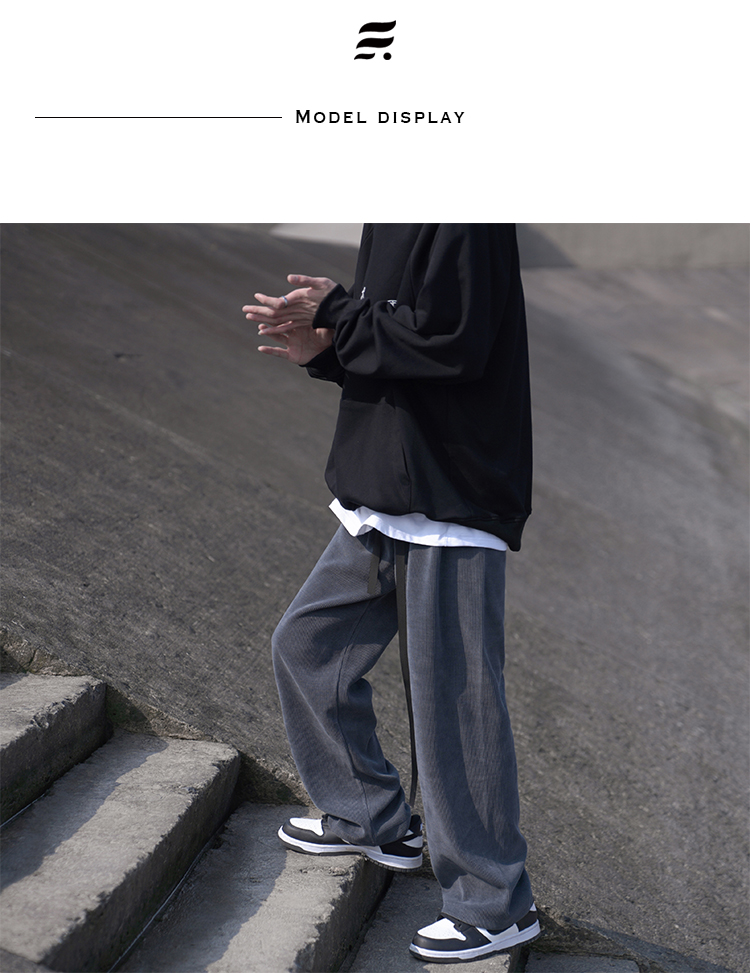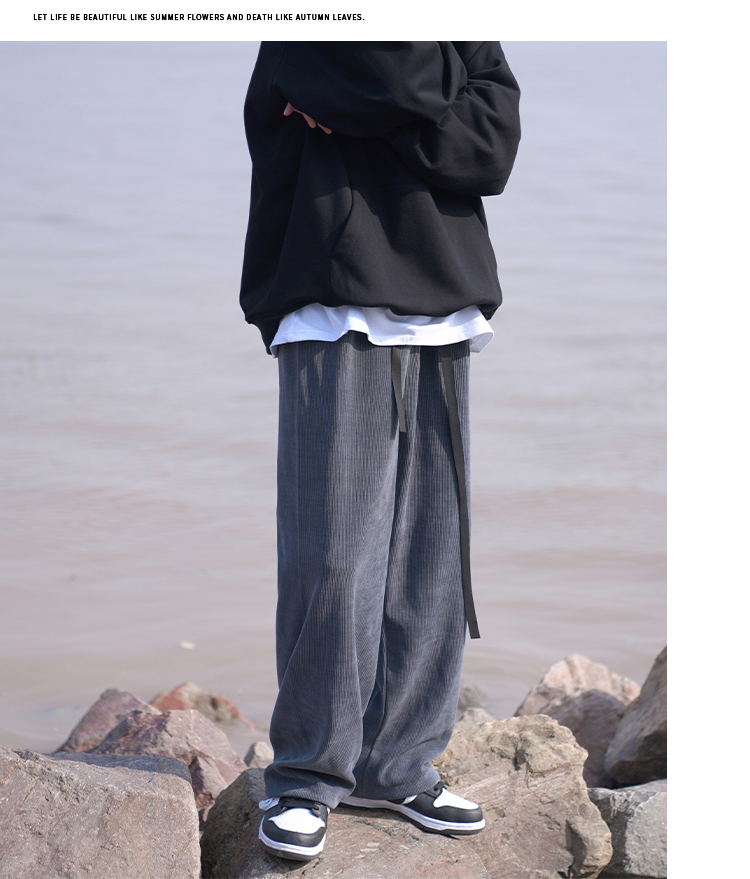 E禾子先生春秋男士休閒褲日系純色百搭潮牌垂感直筒褲ins情侶長褲