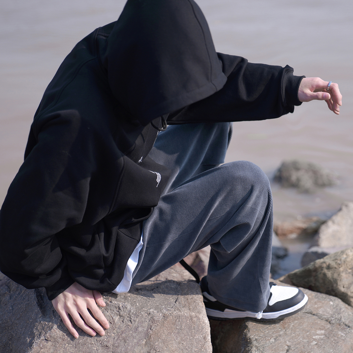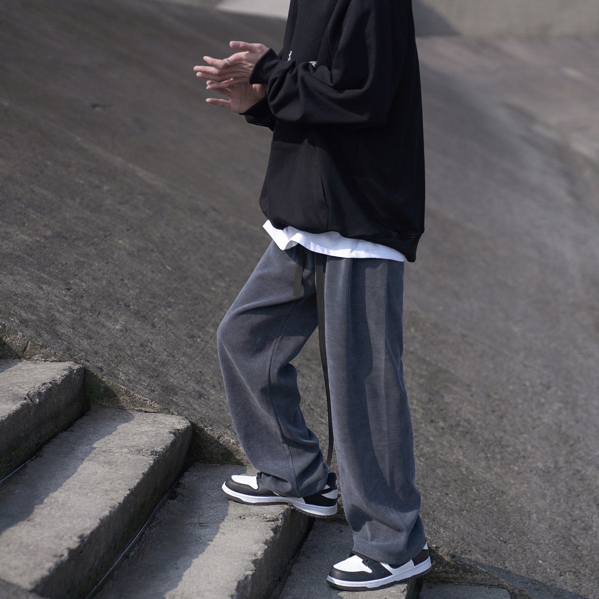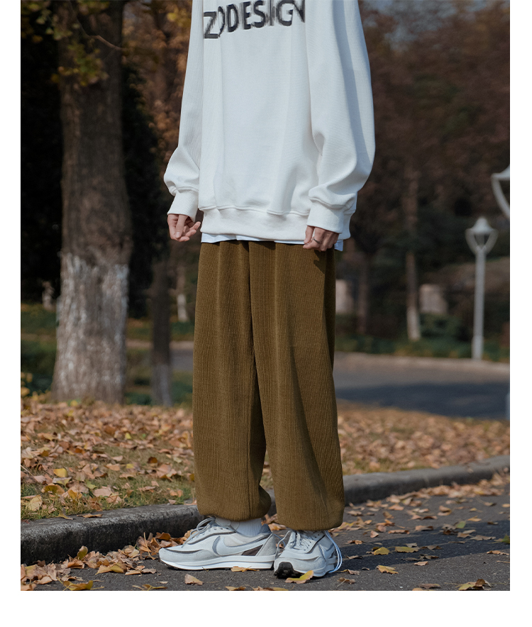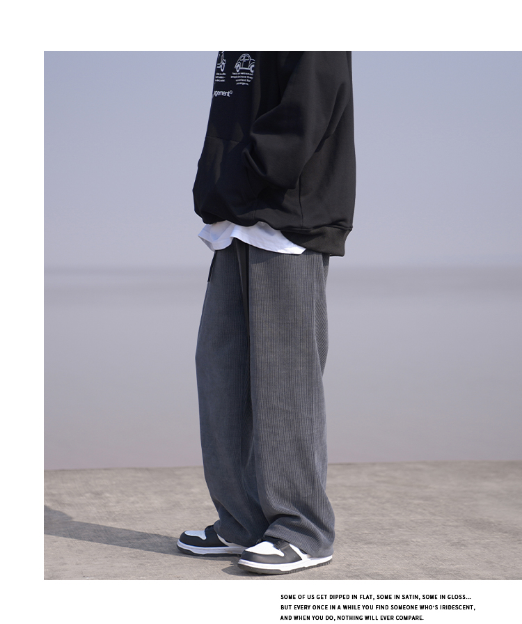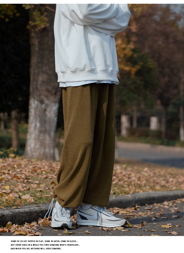 E禾子先生春秋男士休閒褲日系純色百搭潮牌垂感直筒褲ins情侶長褲
