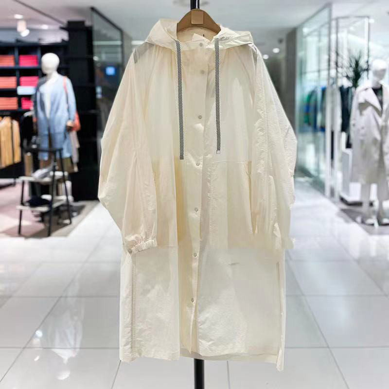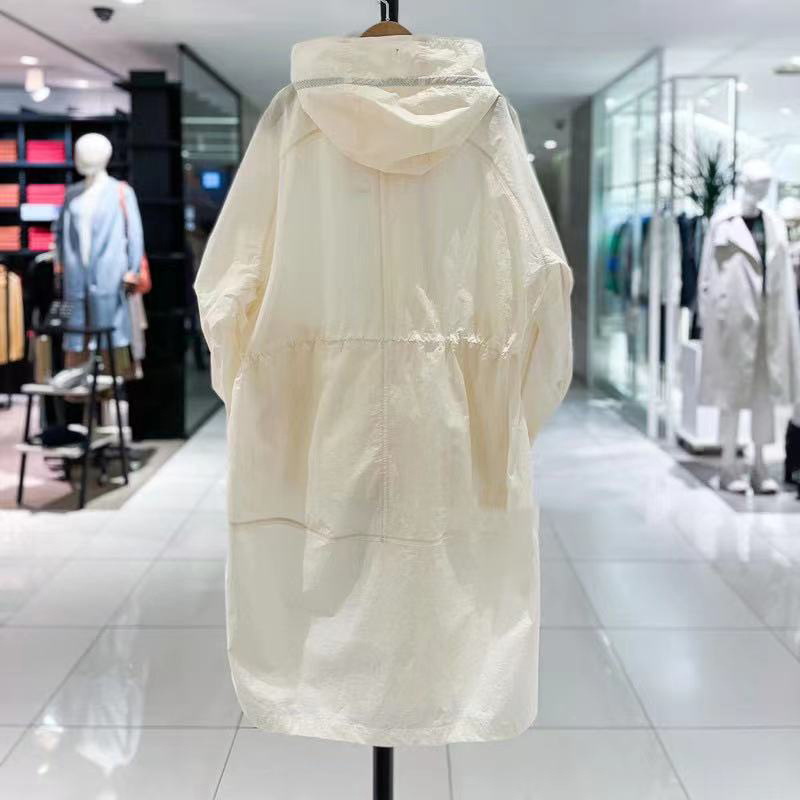 米色連帽中長版防曬衣女韓國東大門夏季新款風衣外套高級感襯衫潮