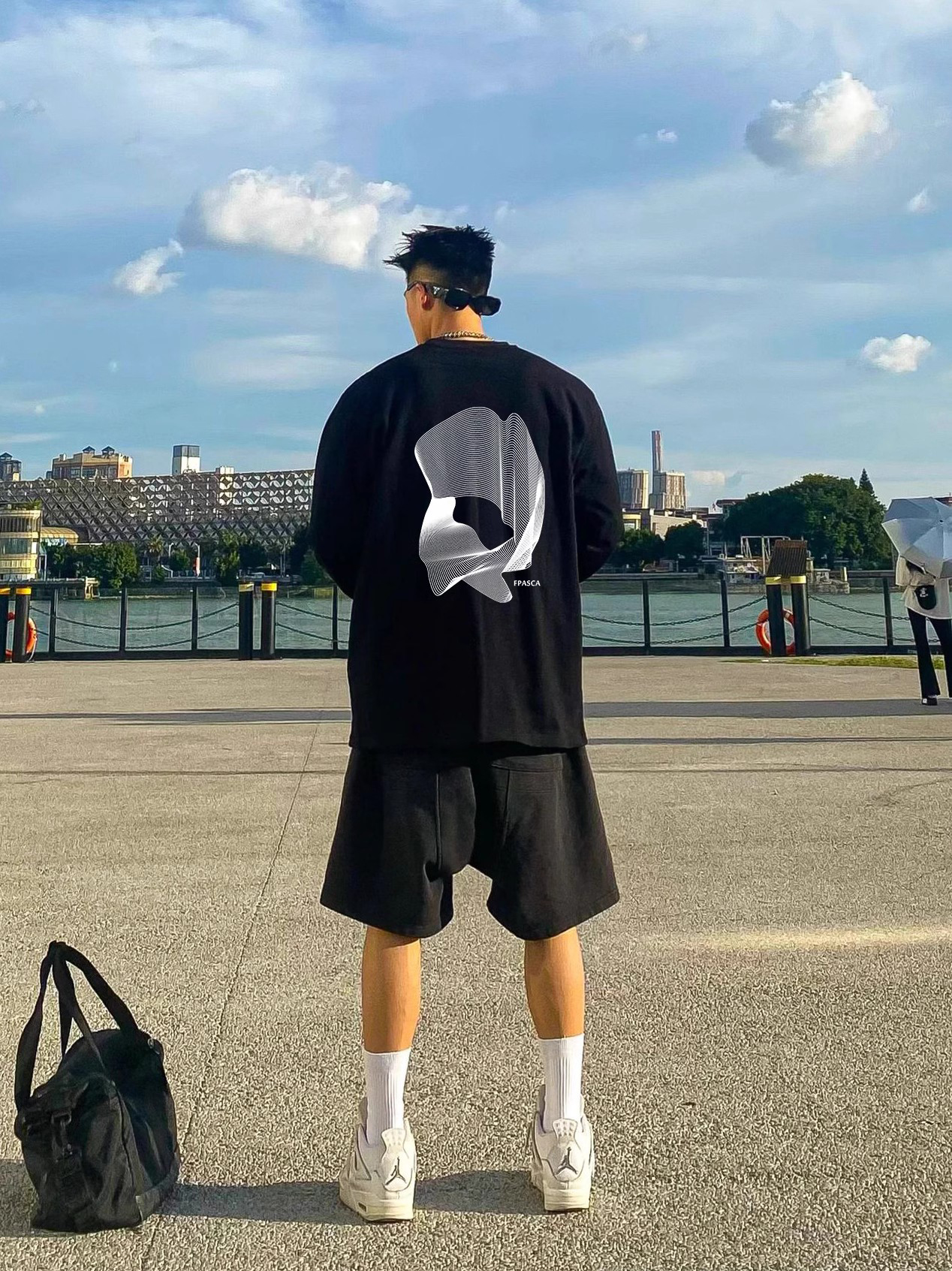 潮牌百搭印花長袖T恤男美式高街重磅寬鬆oversize西海岸圓領上衣