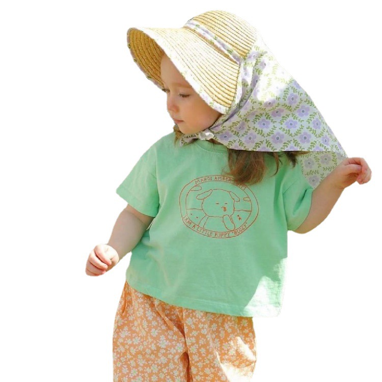 新款儿童草帽男女同款夏季出行休闲风防晒遮阳防紫外线渔夫帽批发