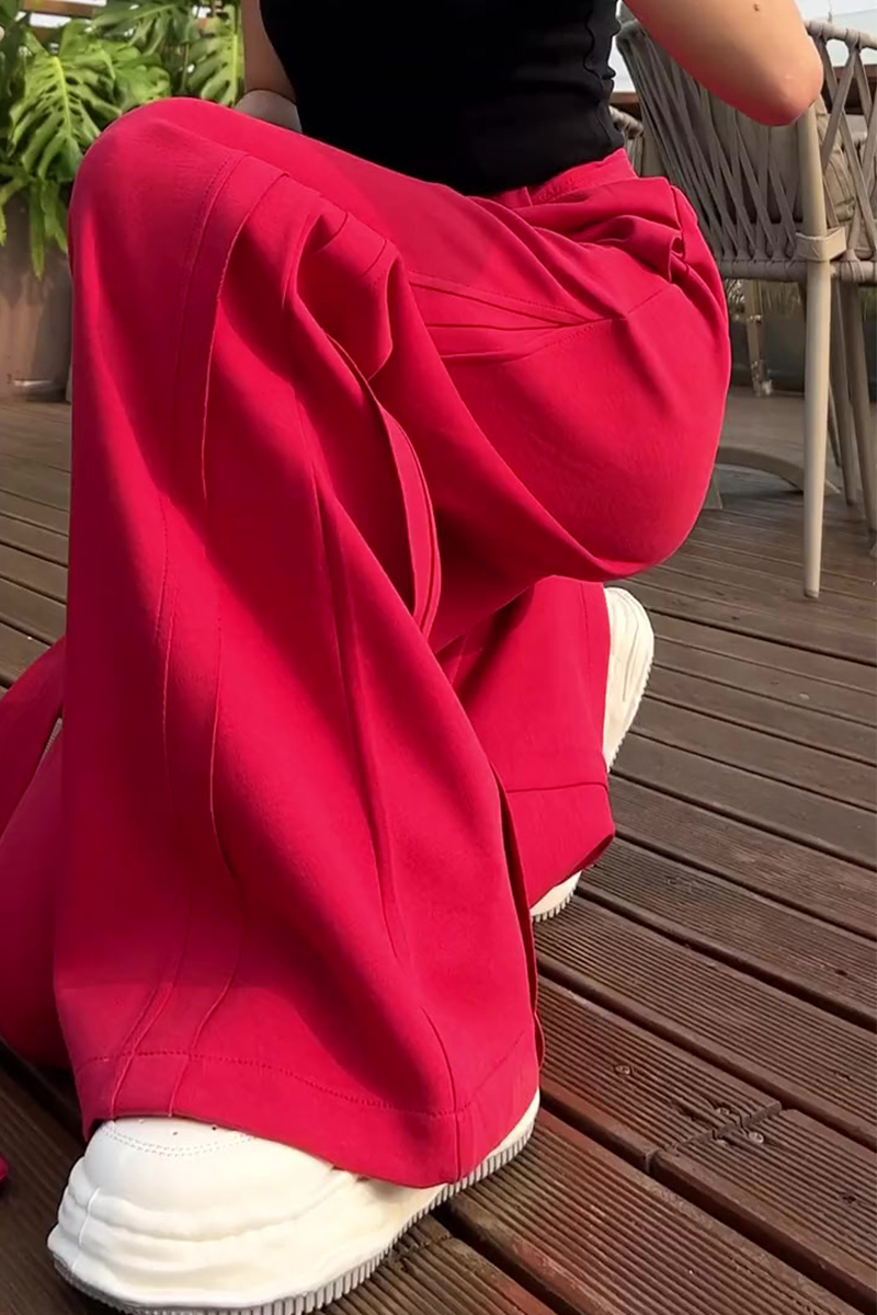 顏色分類 高腰墜感紅色闊腿顯瘦直筒拖地褲