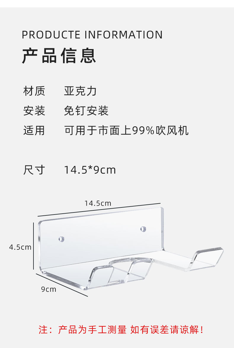 透明吹风机置物架免打孔卫生间壁挂式电吹风支架浴室风筒架收纳架