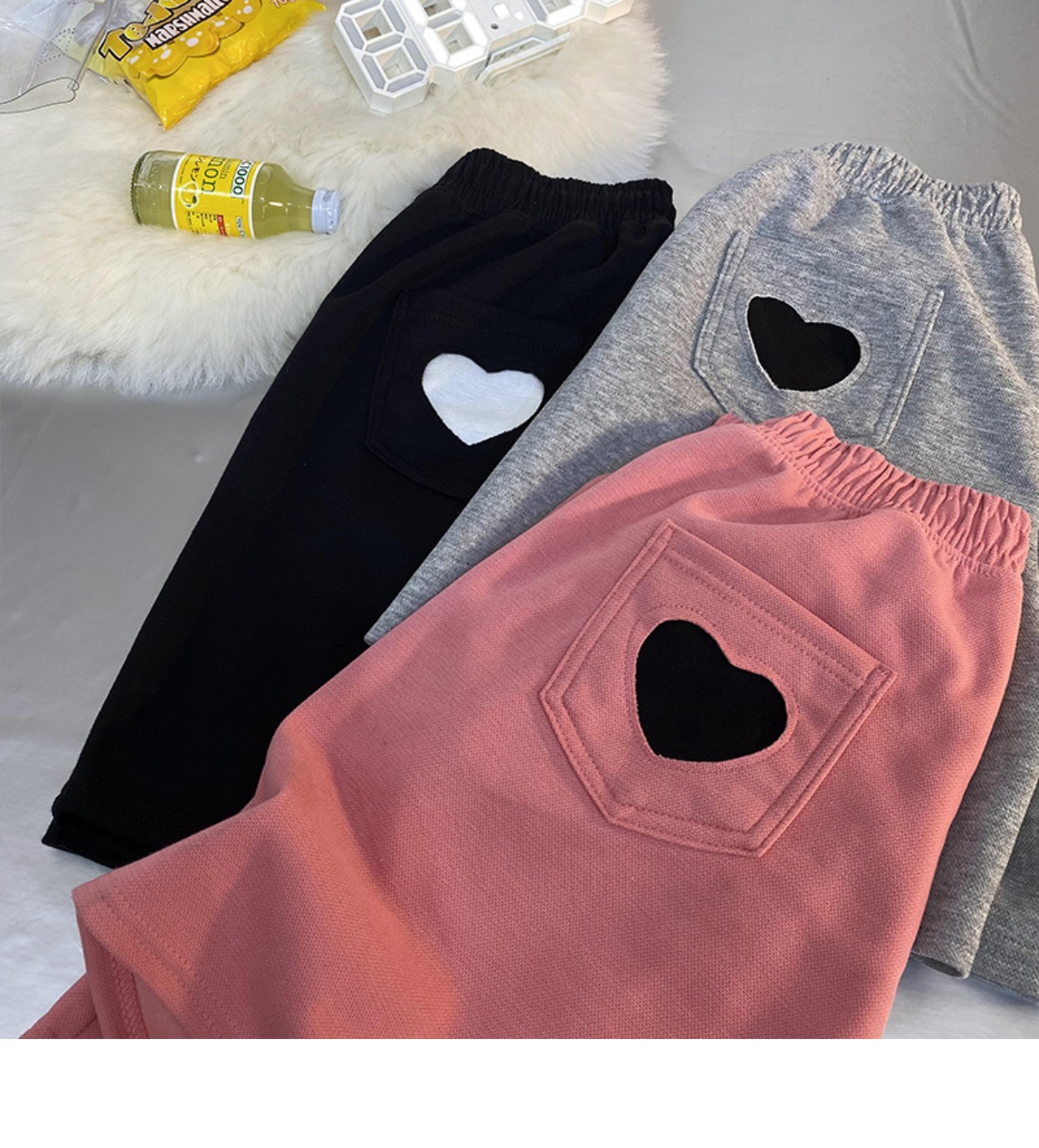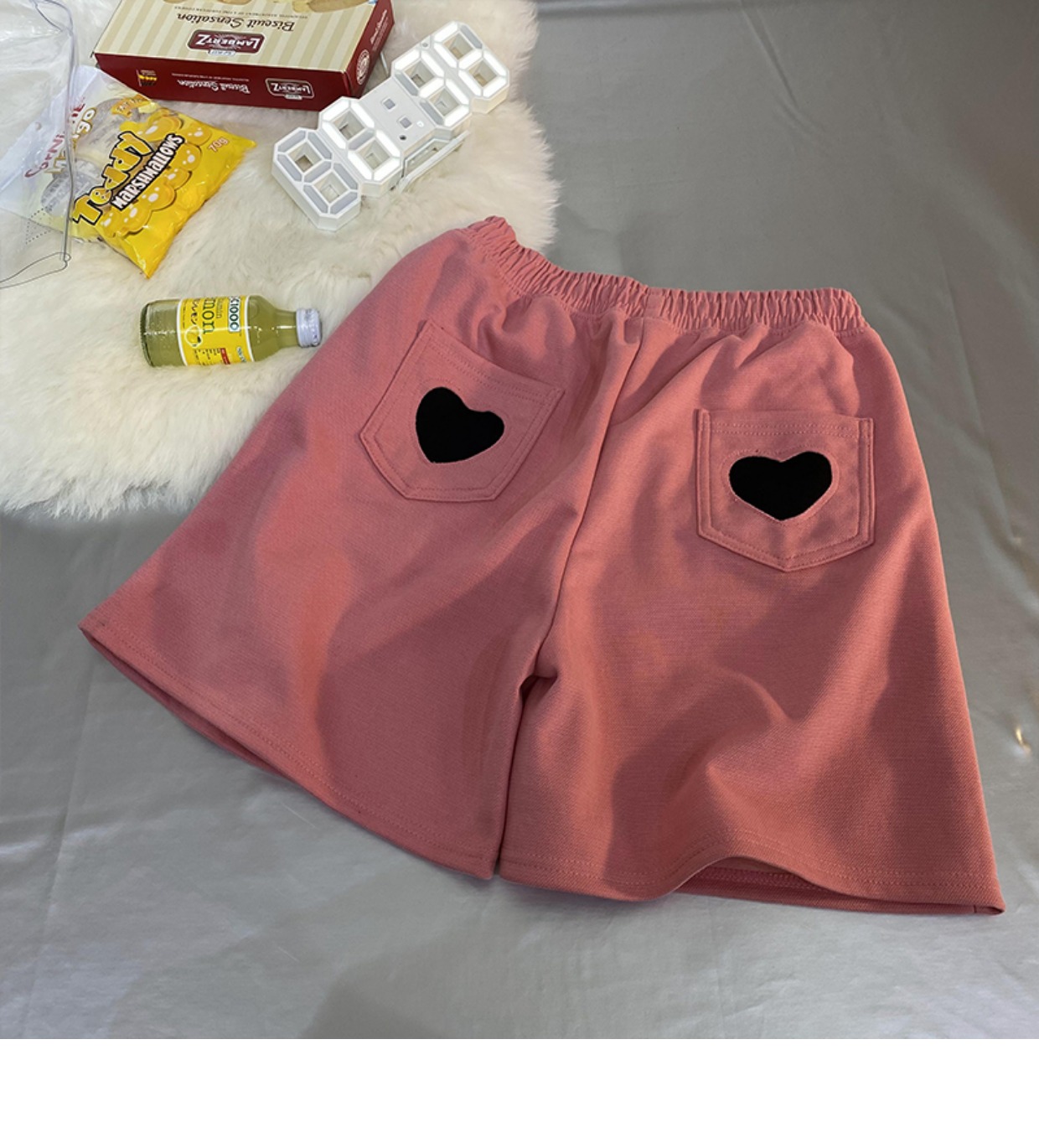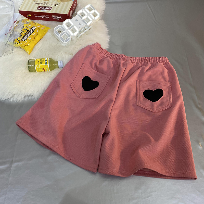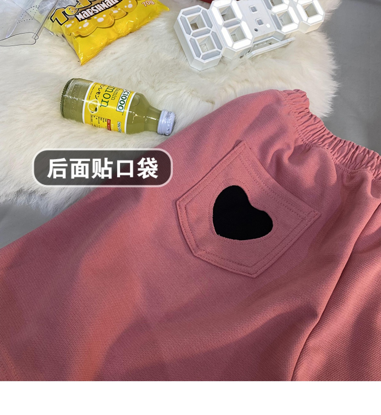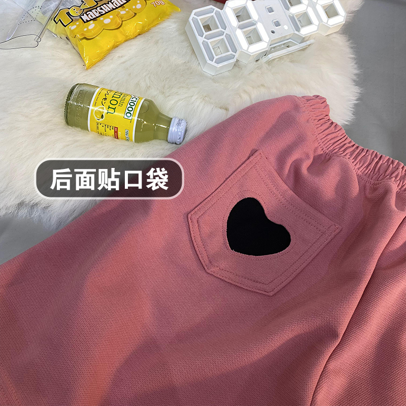 蜜桃粉愛心)短褲女夏季五分褲子高腰顯瘦寬鬆運動五分褲潮ins透氣