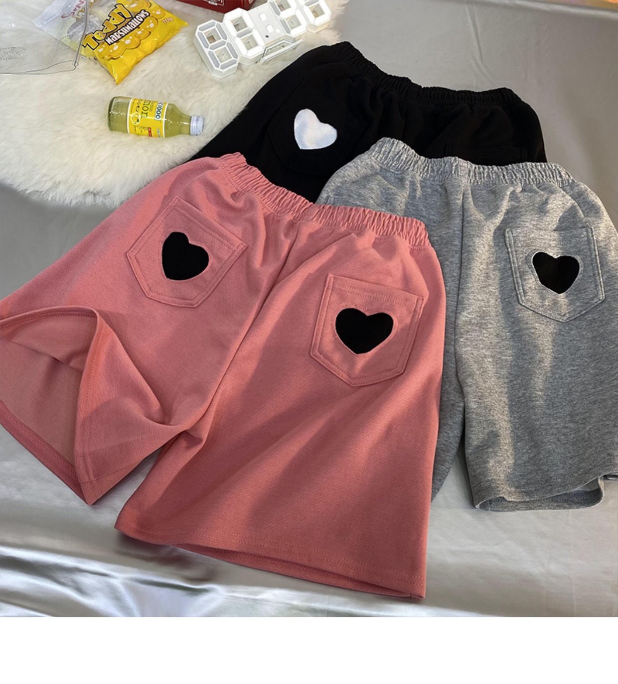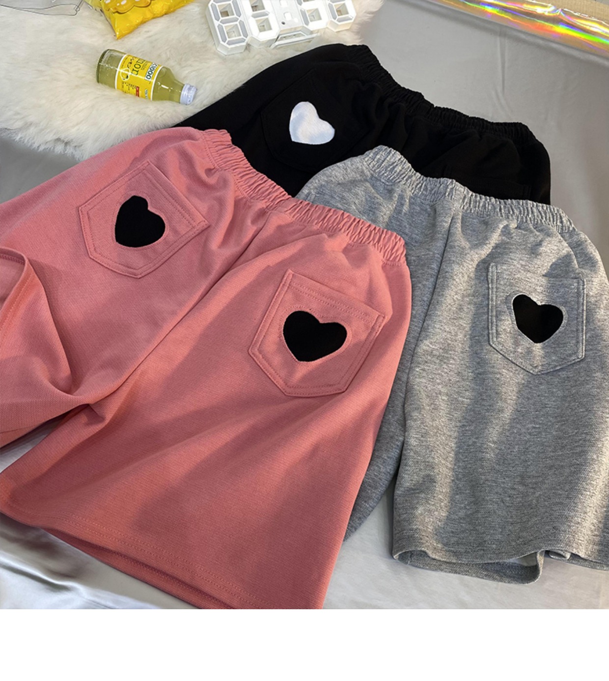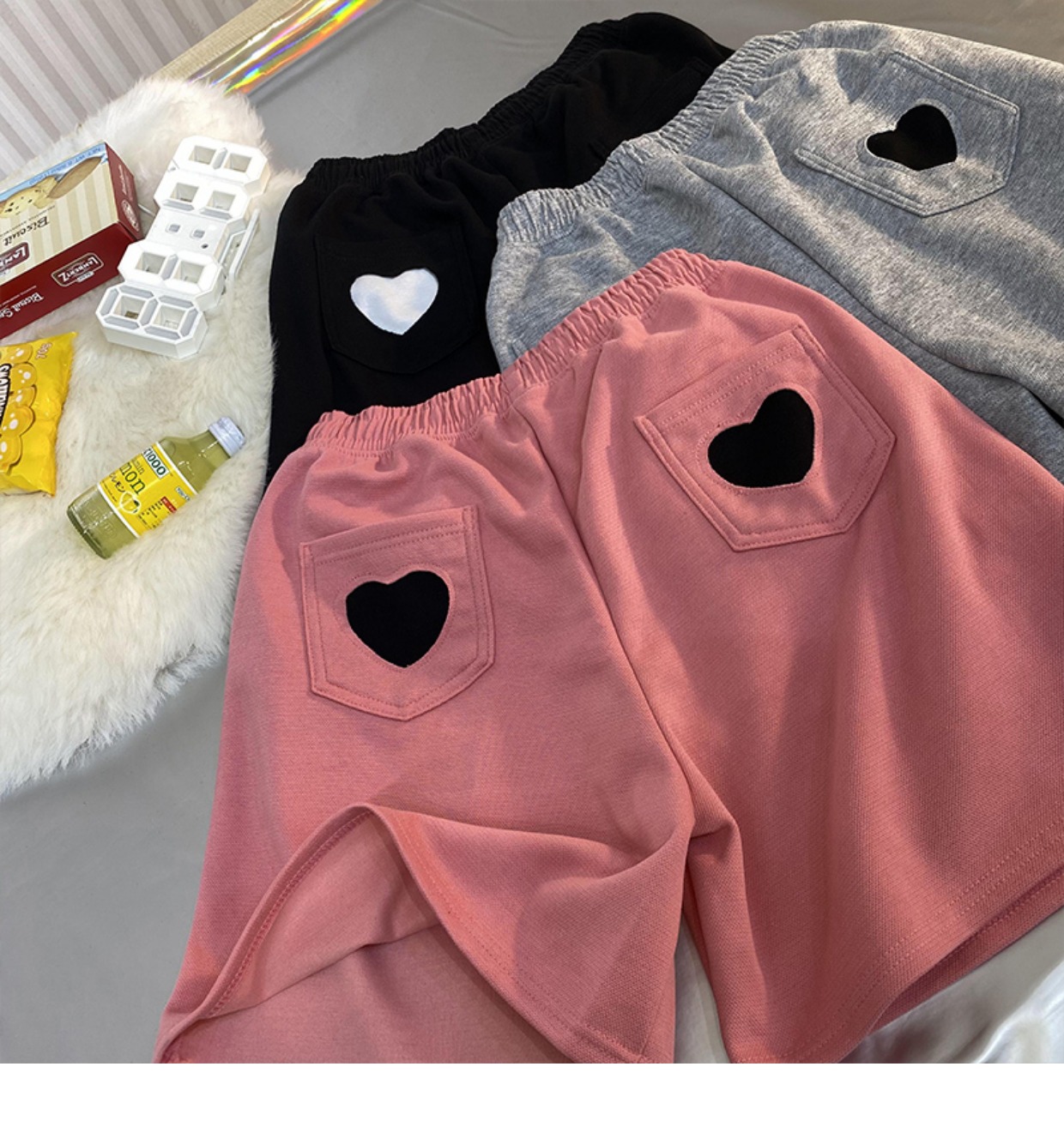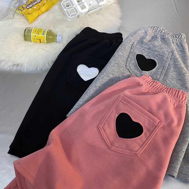蜜桃粉愛心)短褲女夏季五分褲子高腰顯瘦寬鬆運動五分褲潮ins透氣
