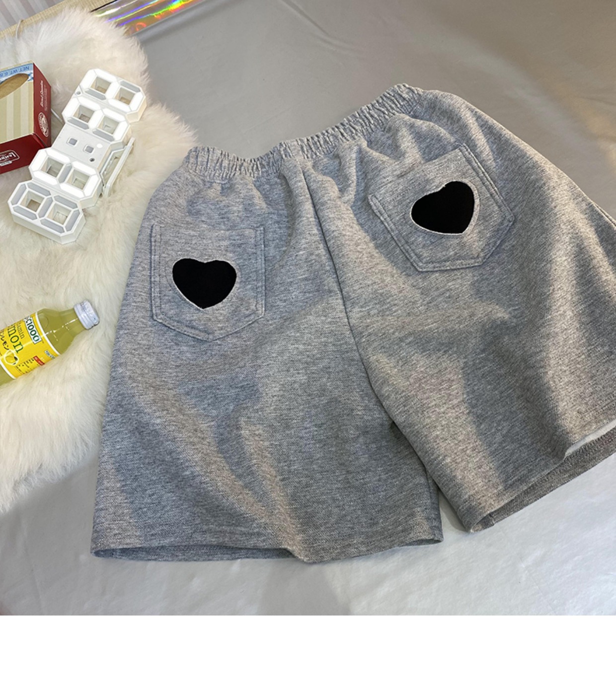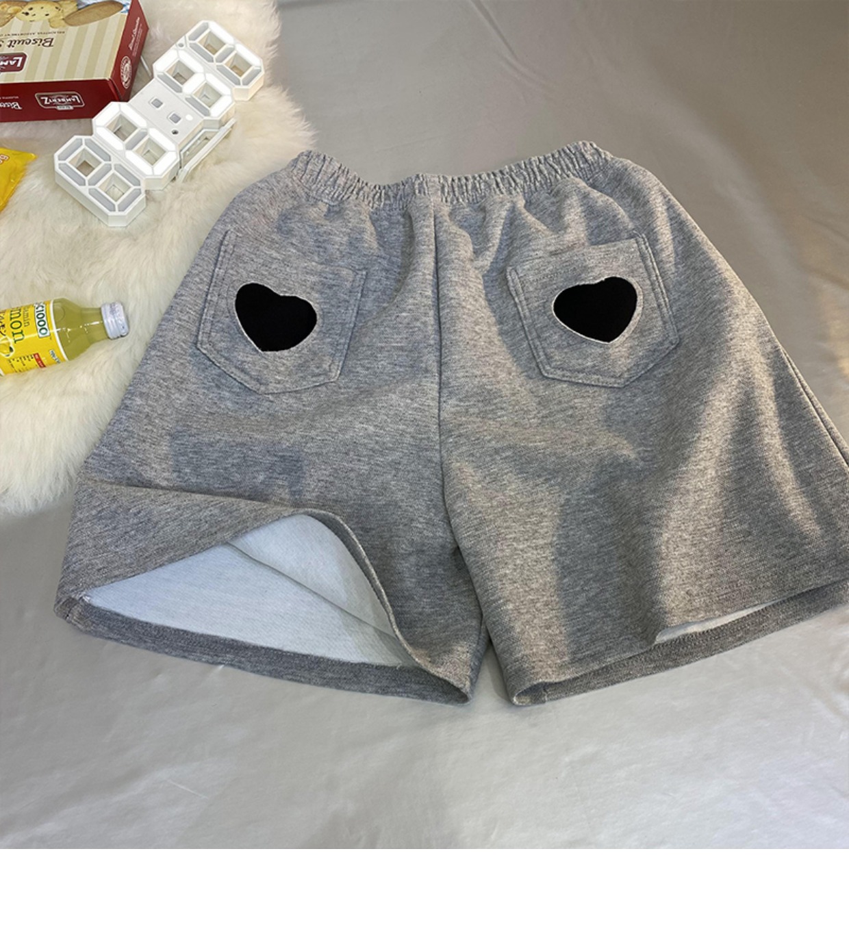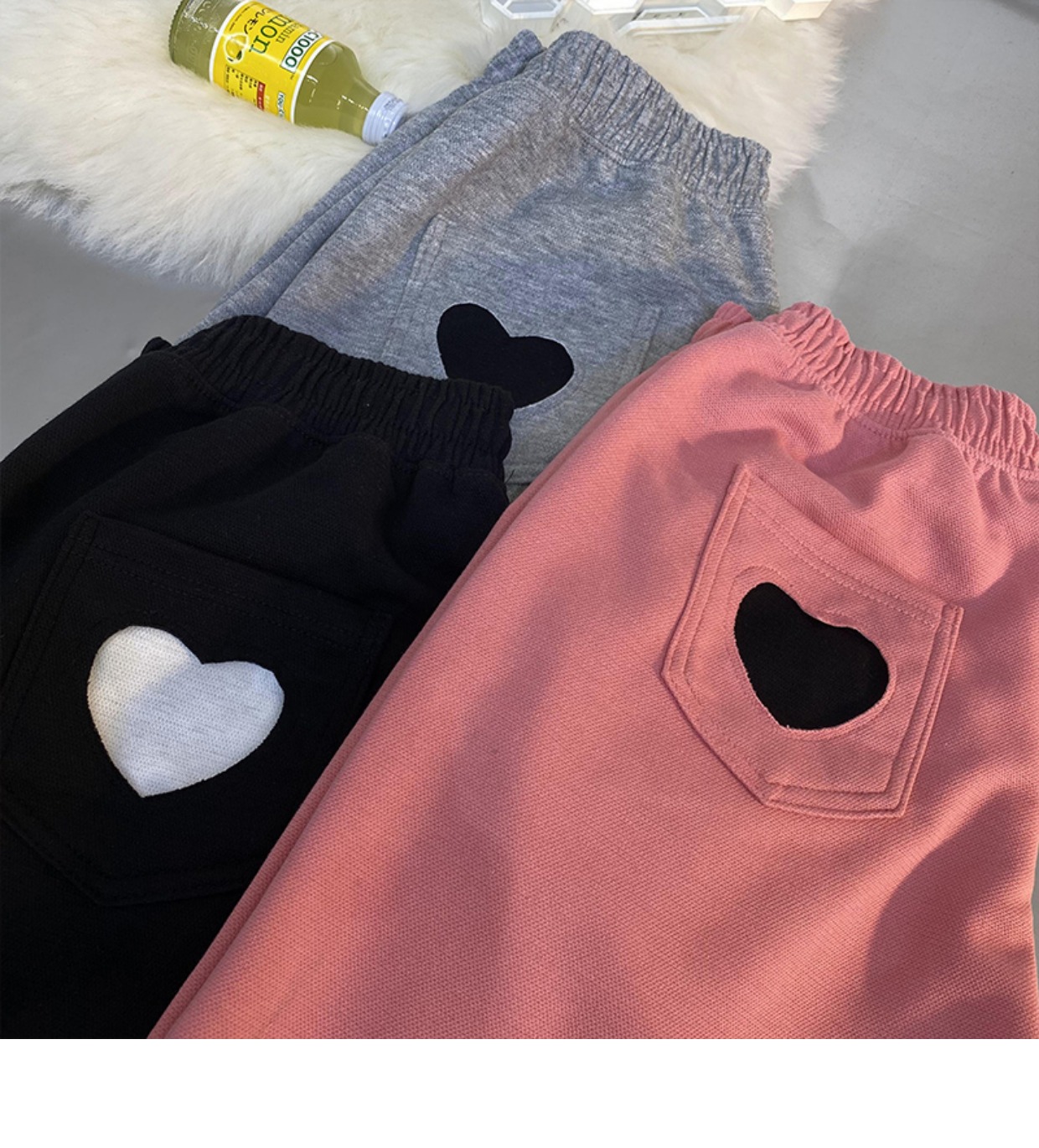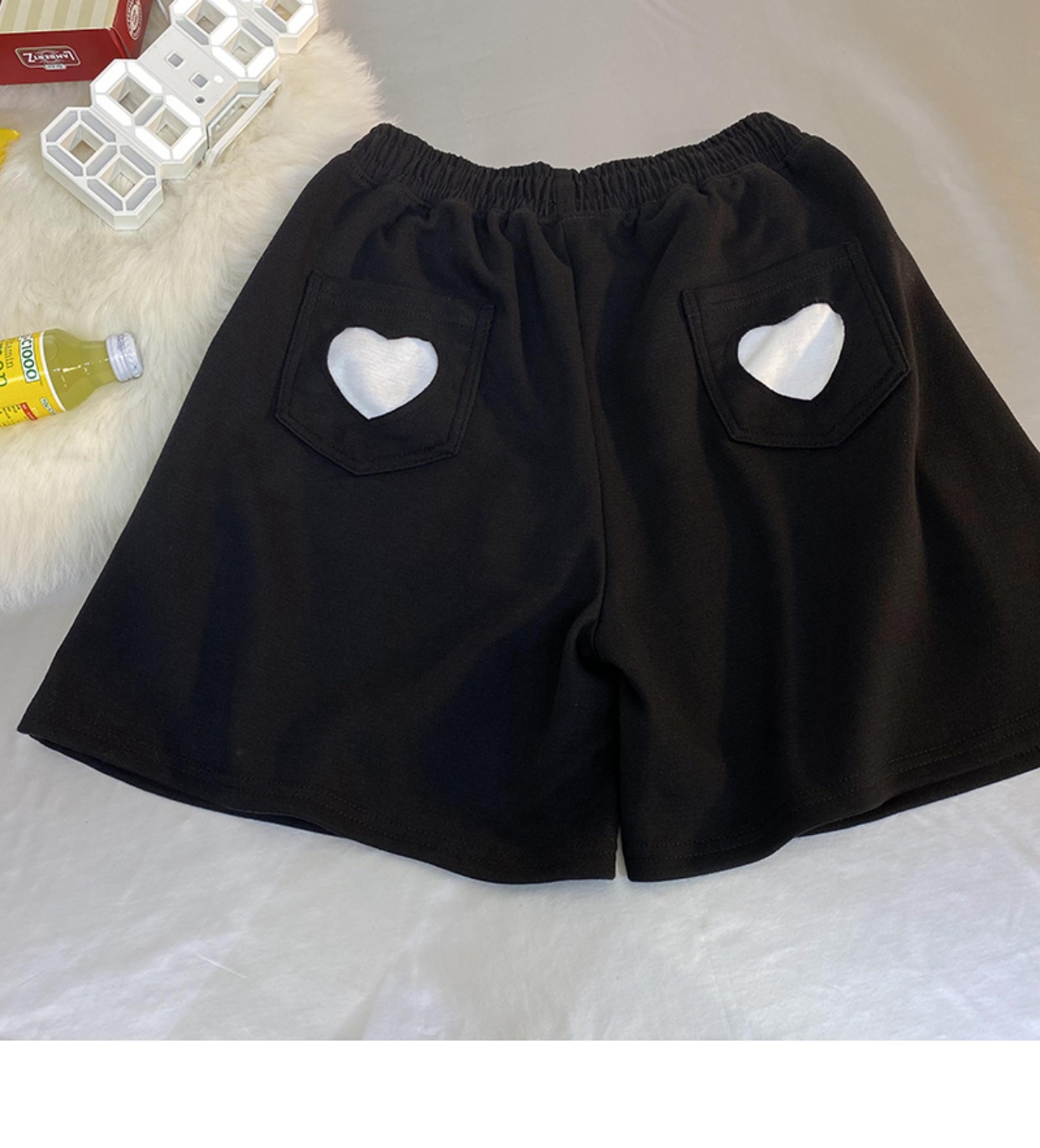 蜜桃粉愛心)短褲女夏季五分褲子高腰顯瘦寬鬆運動五分褲潮ins透氣