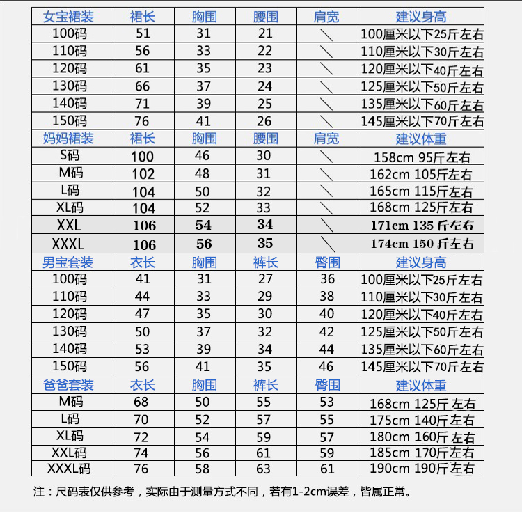 尺碼 S,4XL,3XL,爸爸套裝M碼,爸爸套裝L碼,爸爸套裝XL碼,爸爸套裝XXL碼,爸爸套裝3XL碼,女寶洋裝100碼,女寶洋裝110碼,女寶洋裝120碼,女寶洋裝130碼,女寶洋裝140碼,女寶洋裝150碼,女寶洋裝160碼,男寶套裝100碼,男寶套裝110碼,男寶套裝120碼,男寶套裝130碼,男寶套裝140碼,男寶套裝150碼,男寶套裝160碼,媽媽洋裝S碼,媽媽洋裝M碼,媽媽洋裝L碼,媽媽洋裝XL碼,媽媽洋裝XXL碼