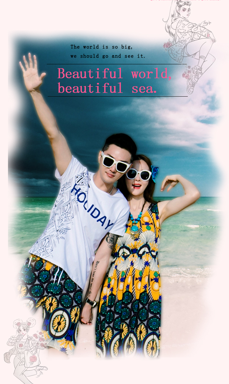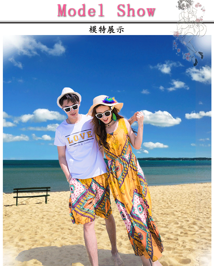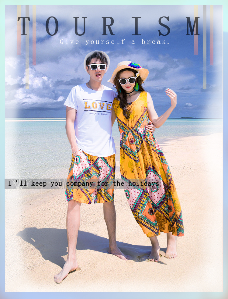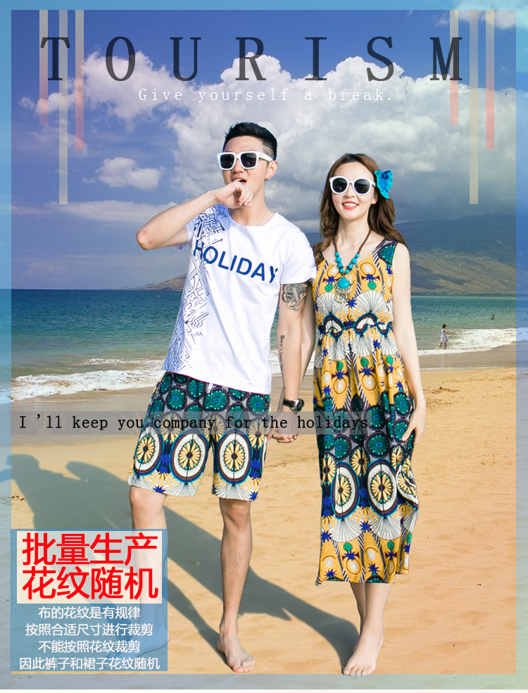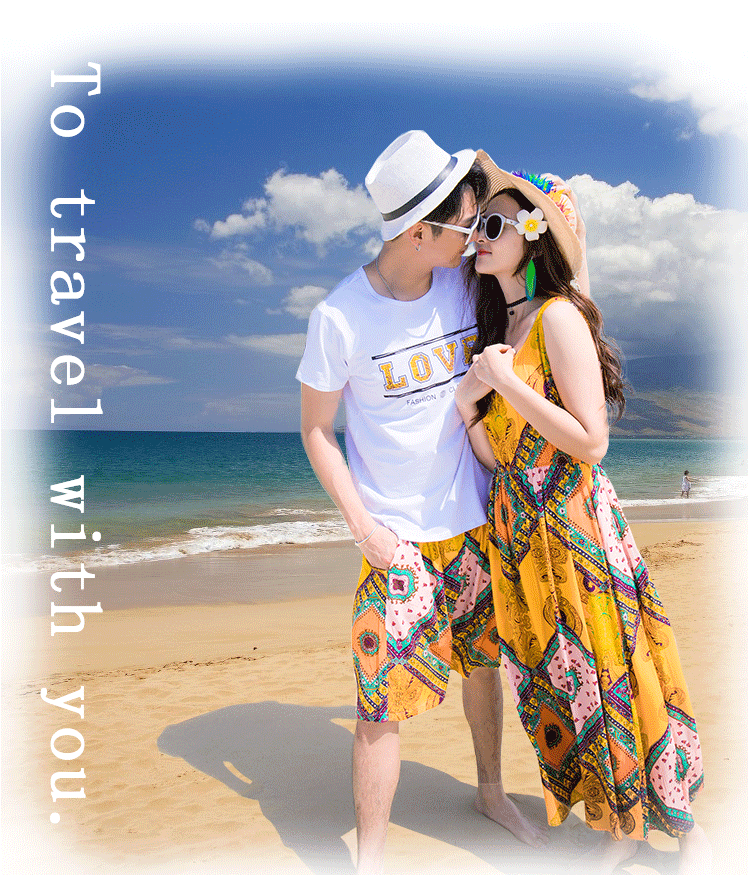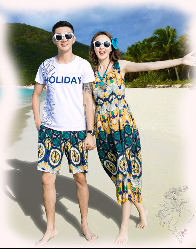 情侶裝海南三亞海邊旅遊度假拍照沙灘裙洋裝海灘裙超仙夏季套裝