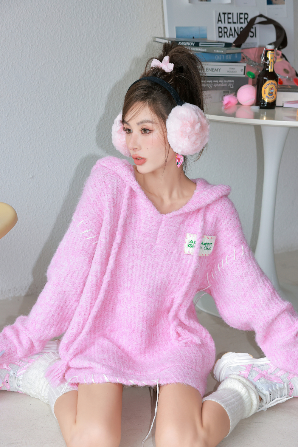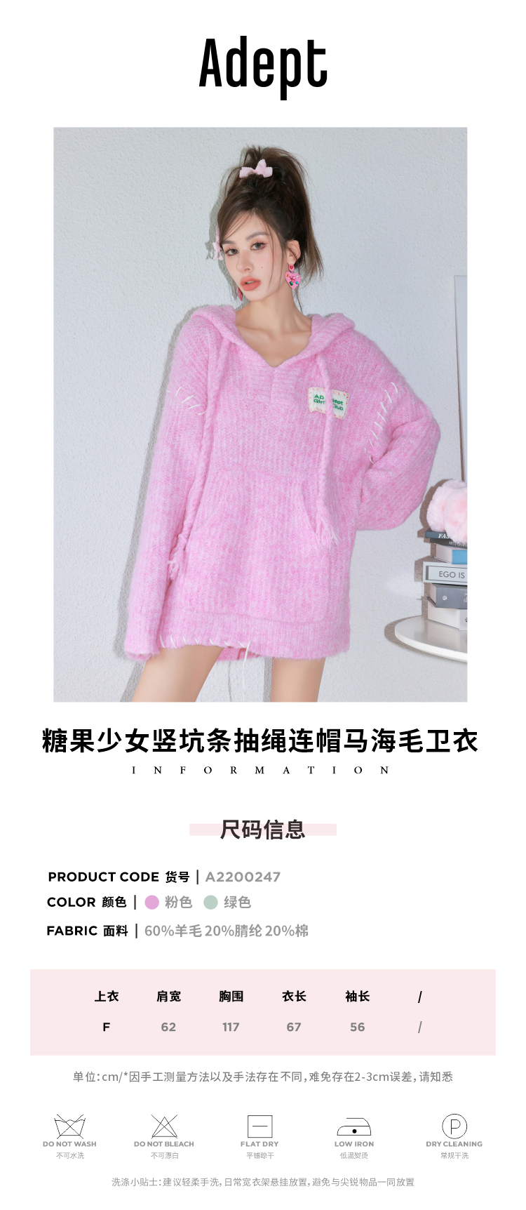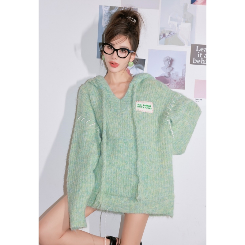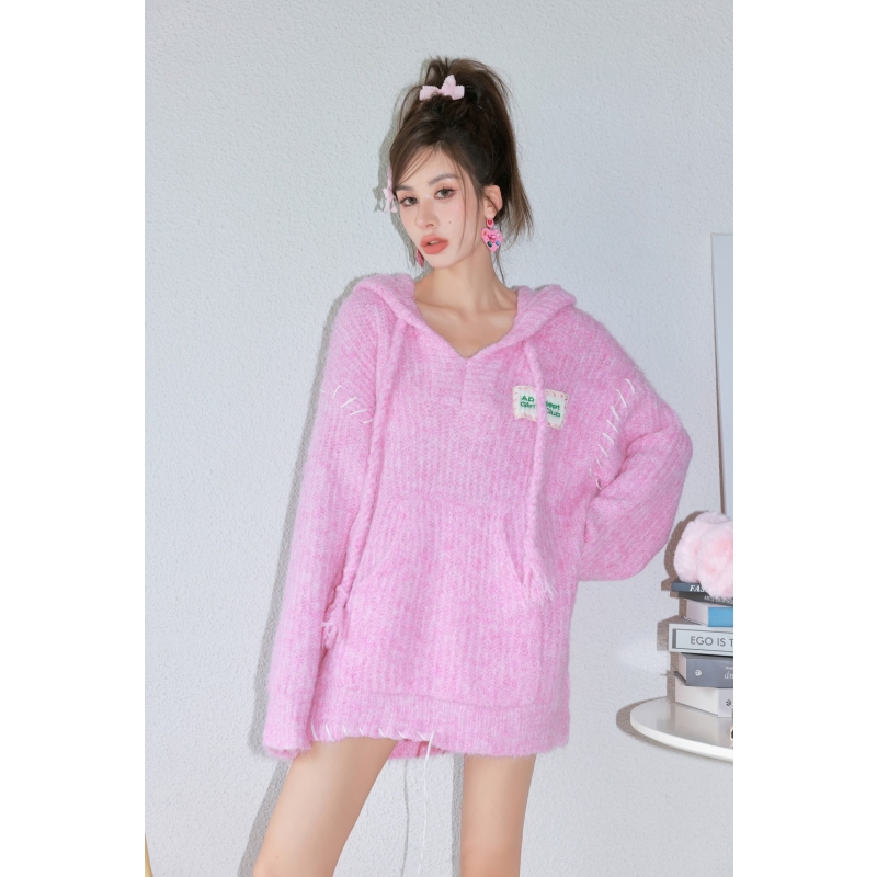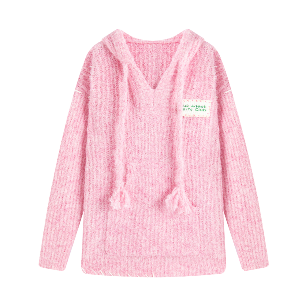 ADEPT 官方授權 糖果少女中長版抽繩連帽馬海毛毛衣女秋冬慵懶風