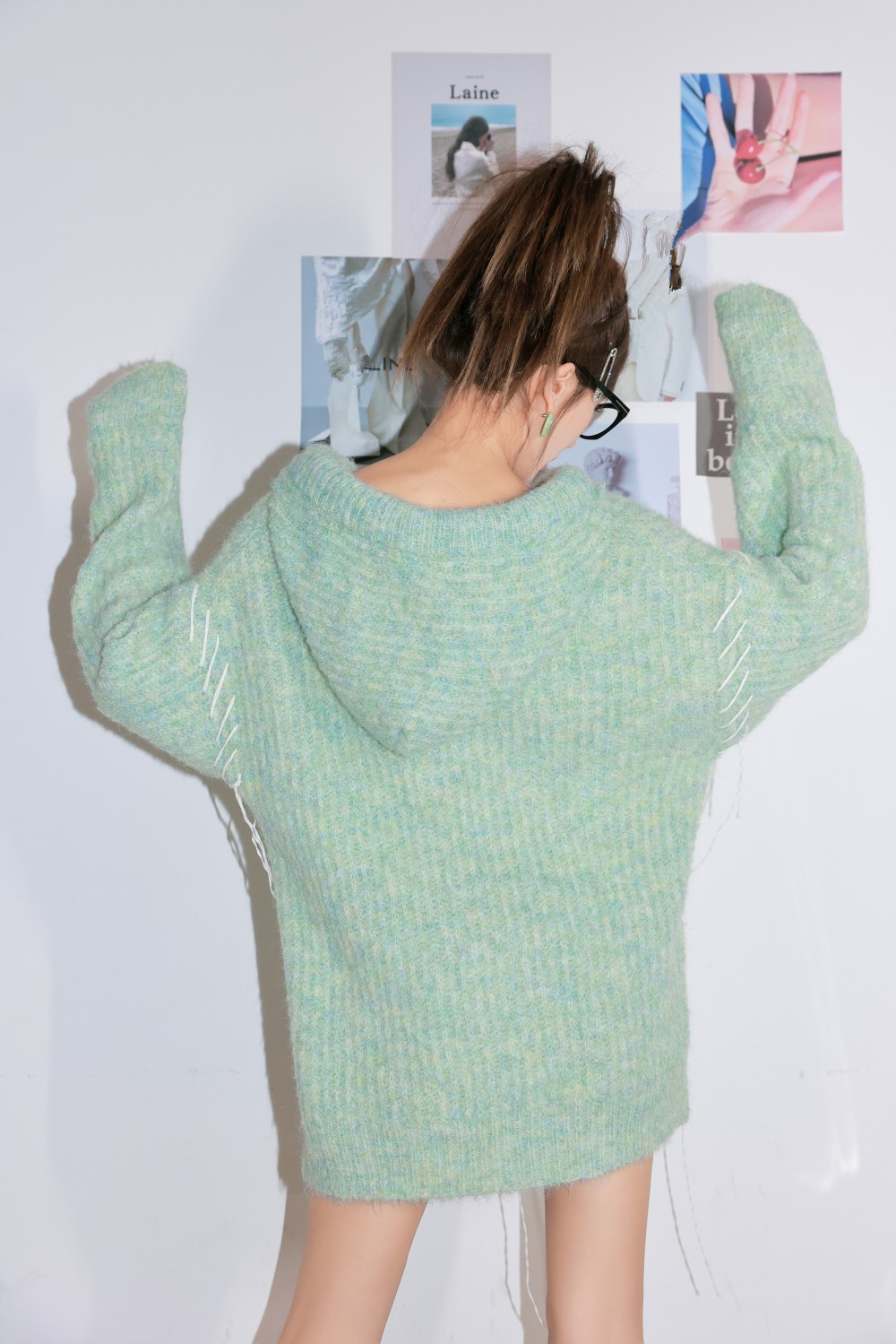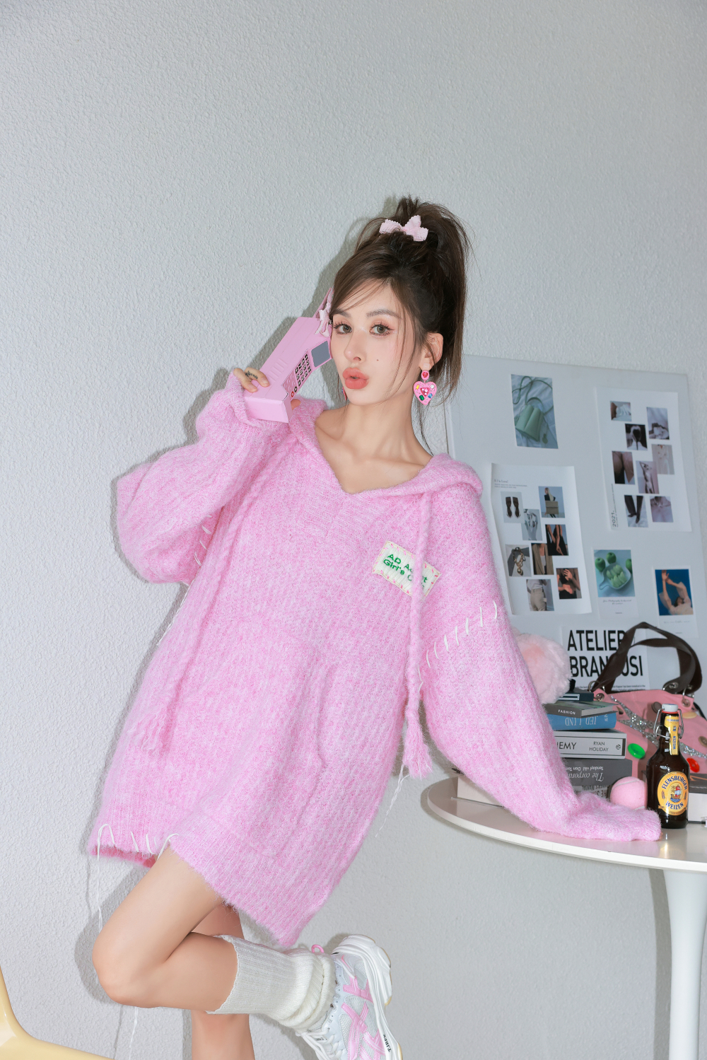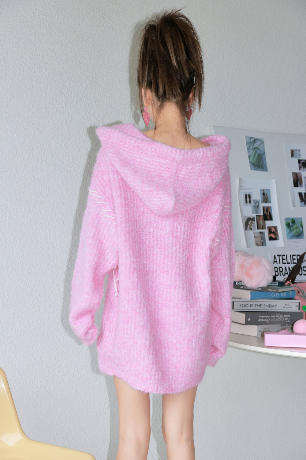 ADEPT 官方授權 糖果少女中長版抽繩連帽馬海毛毛衣女秋冬慵懶風