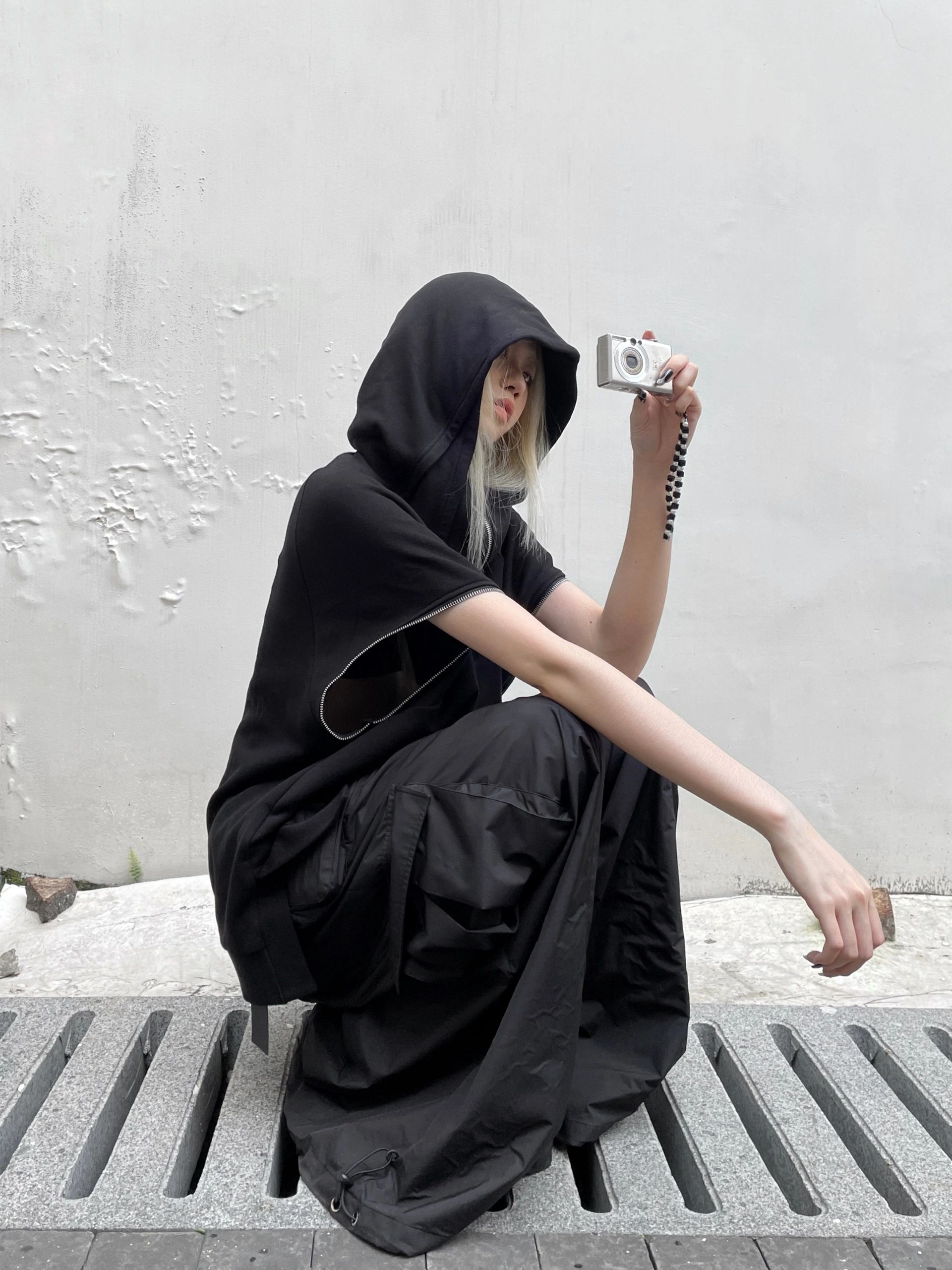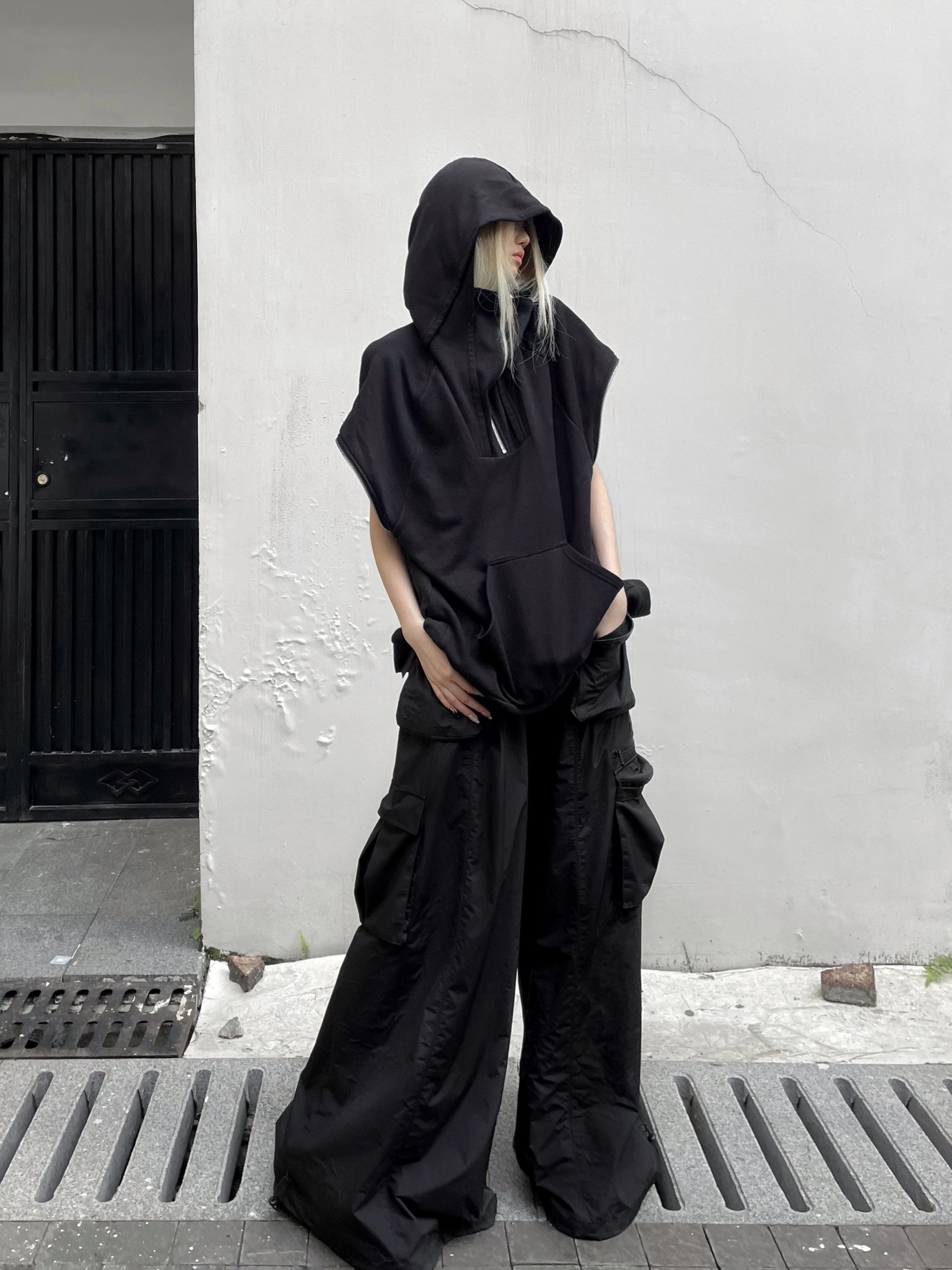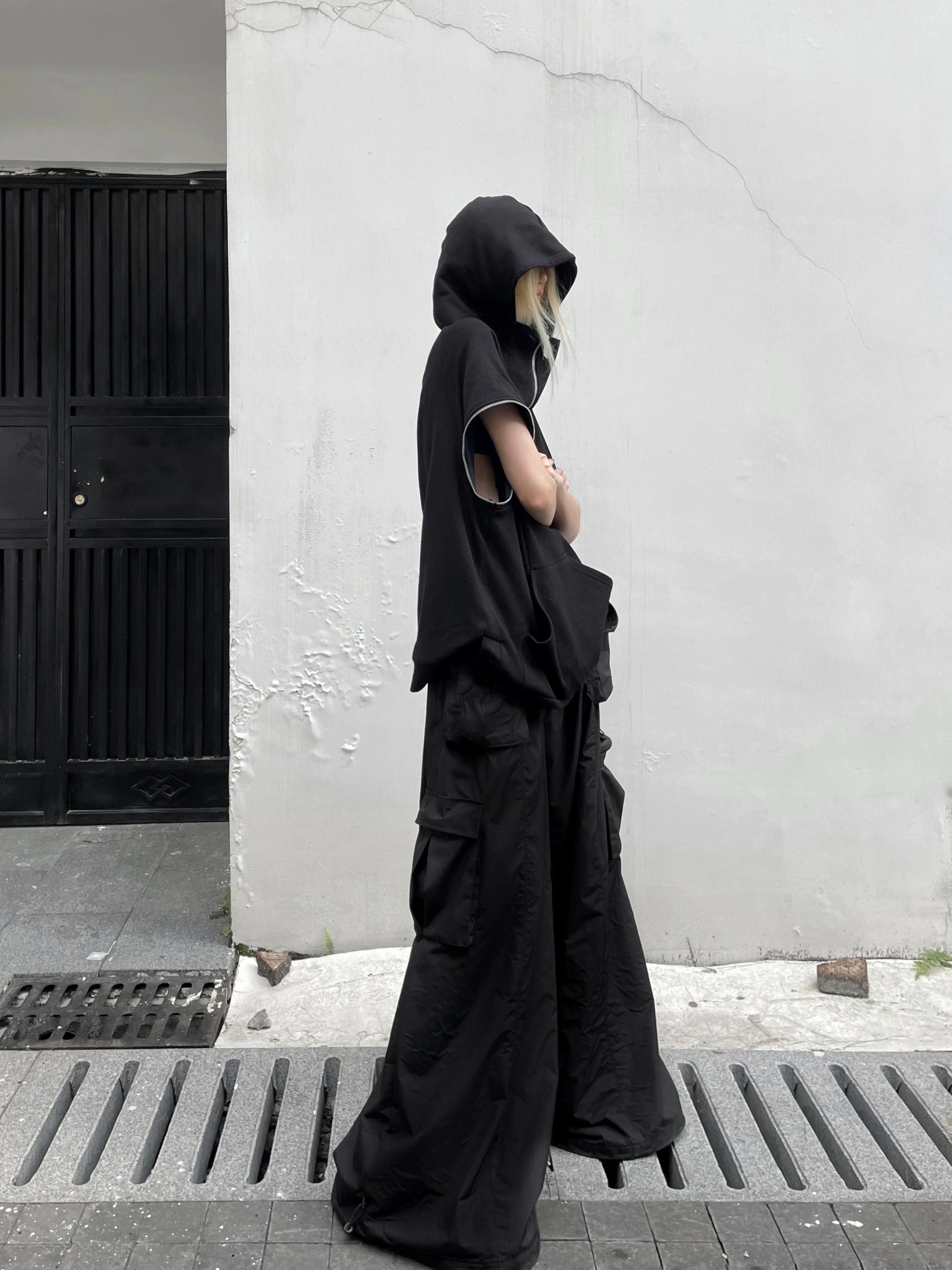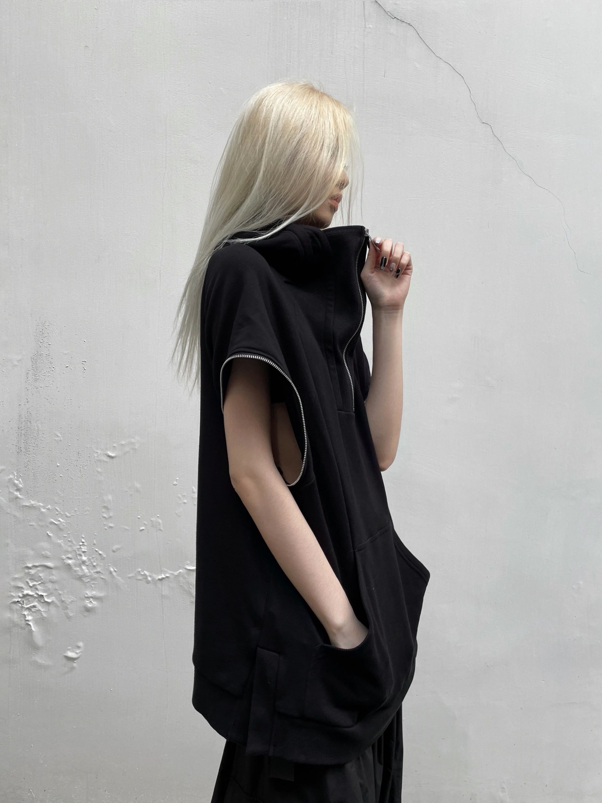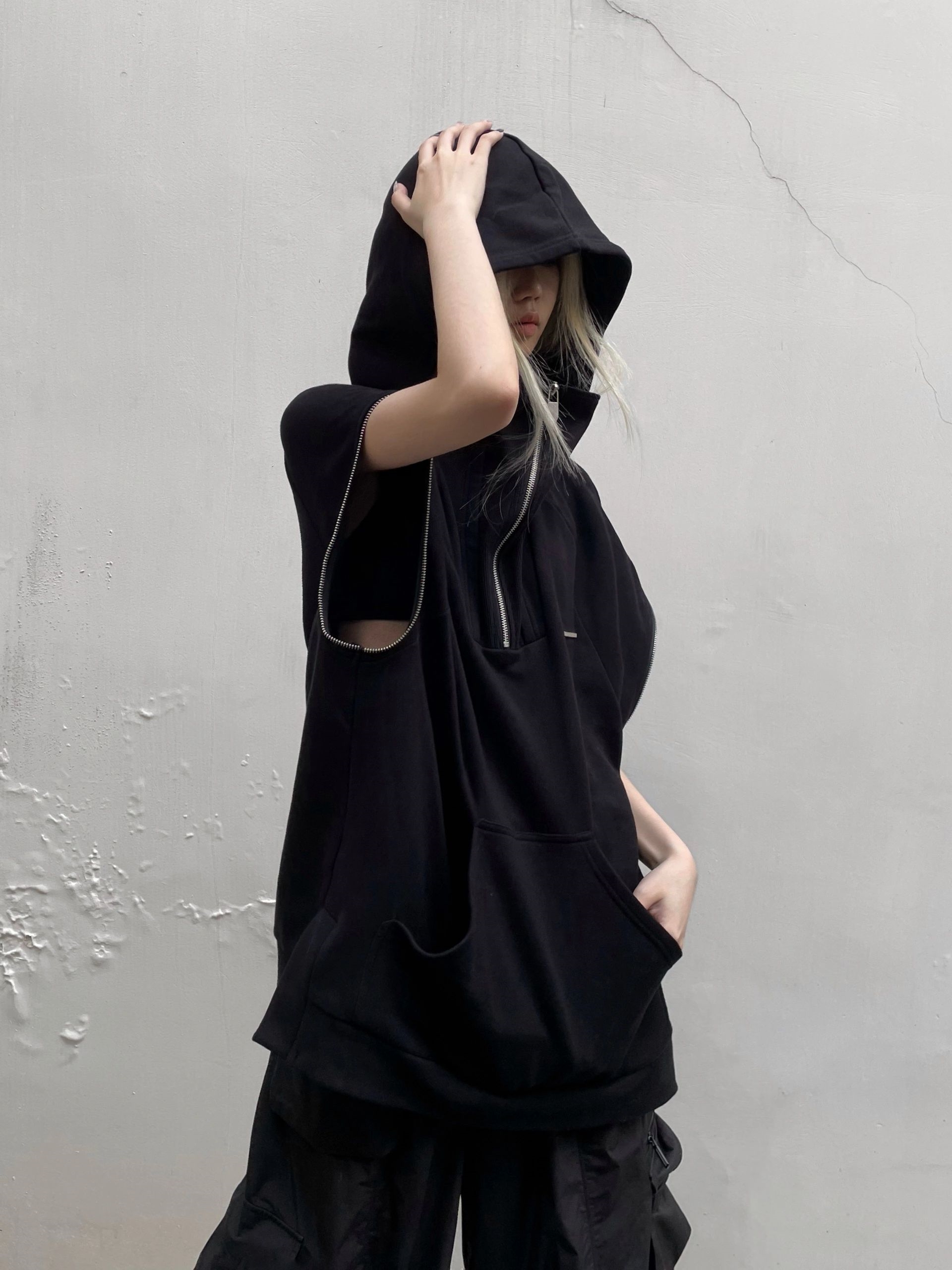 宋秀妍 SENIORS 原創暗黑高級感拉鍊帽衫T恤背心高街寬鬆無袖衛衣
