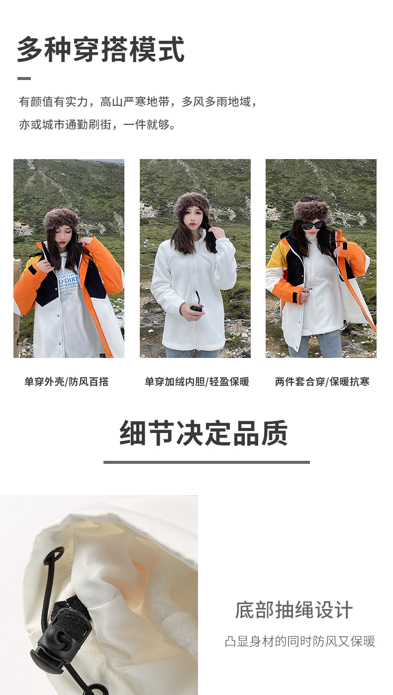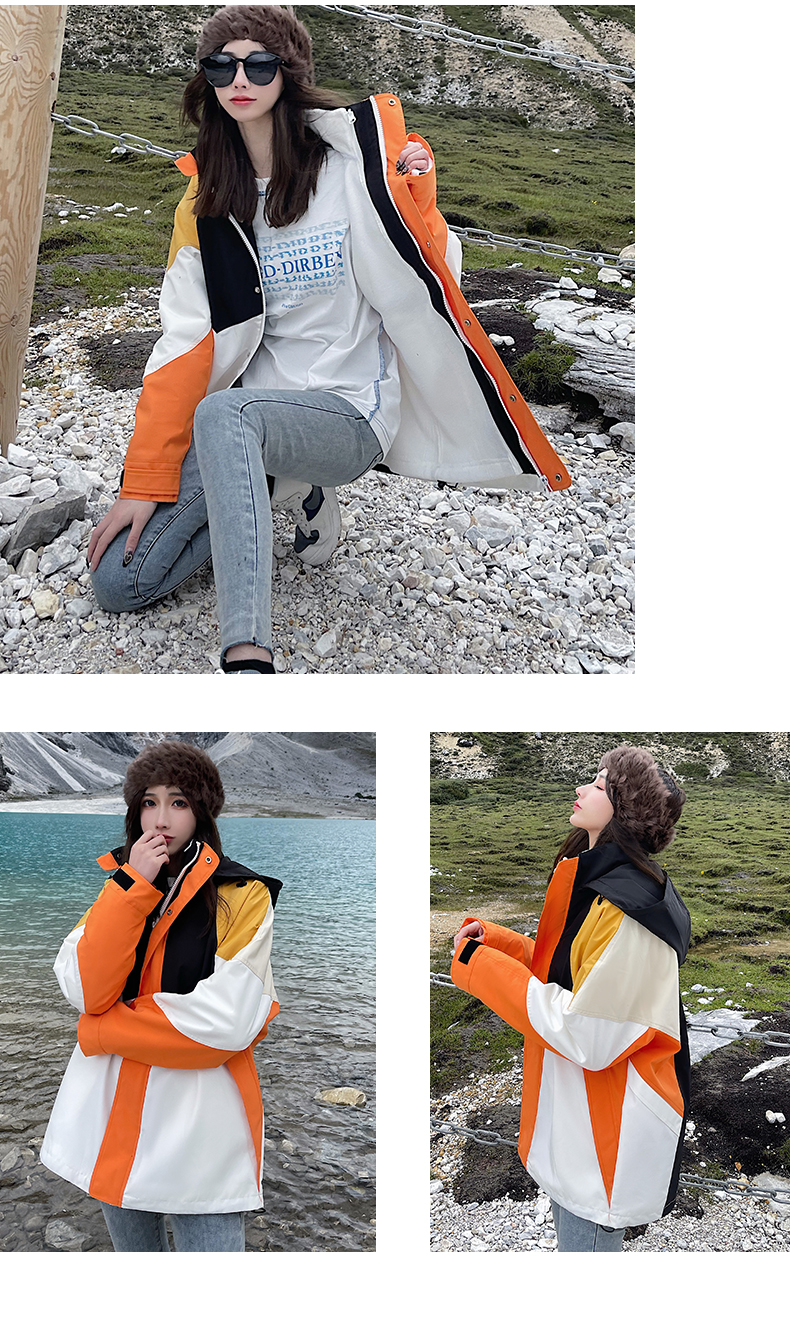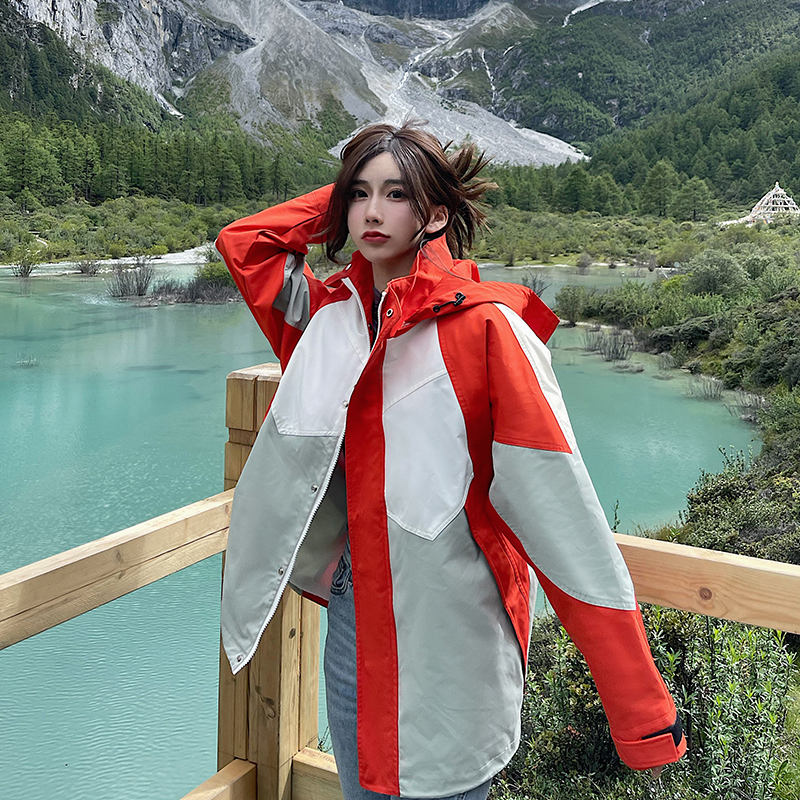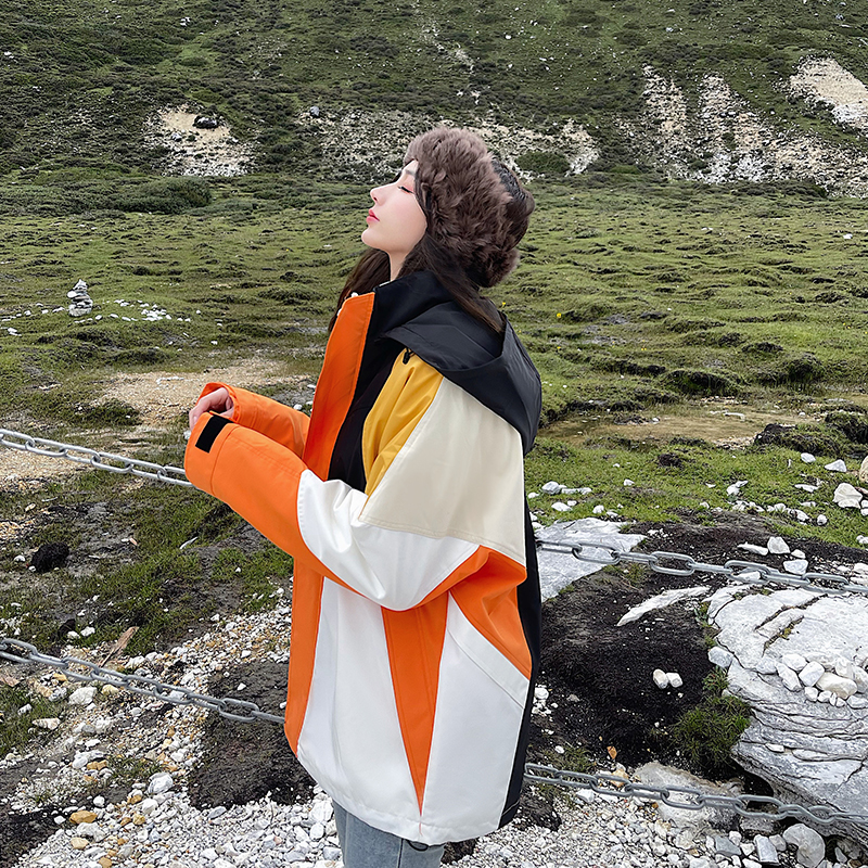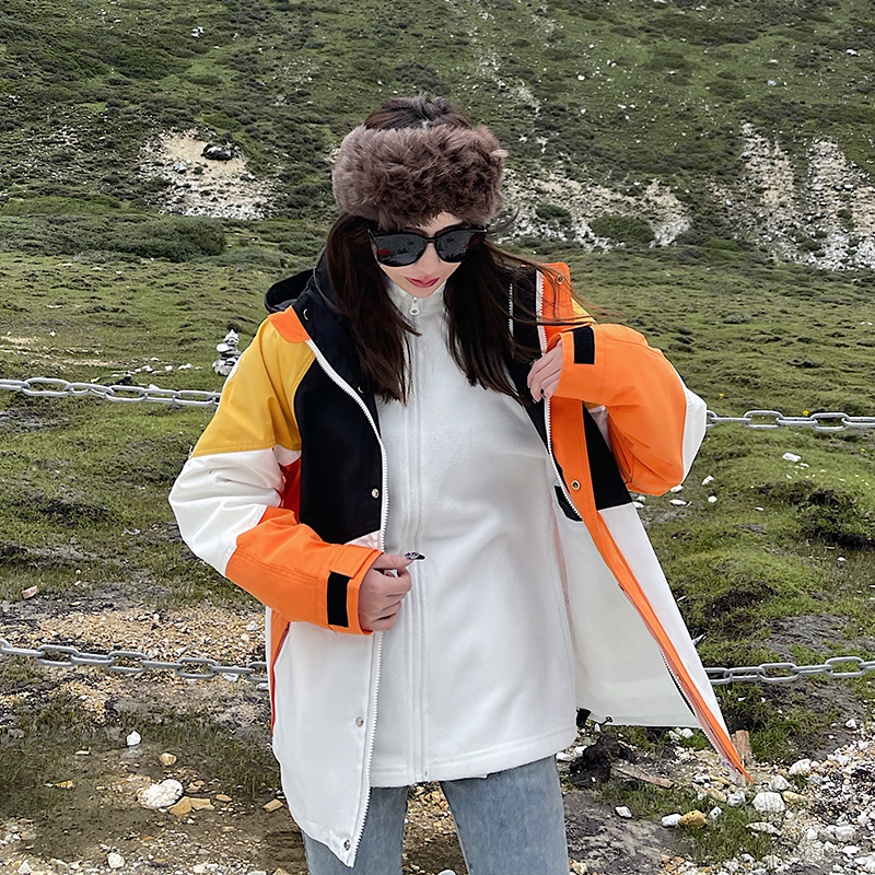 潮牌拼色炸街衝鋒衣男女三合一外套秋冬加絨西藏可拆卸防風滑雪服