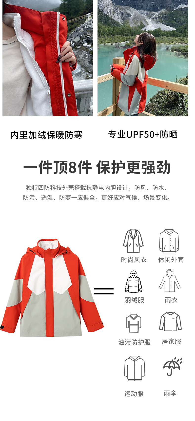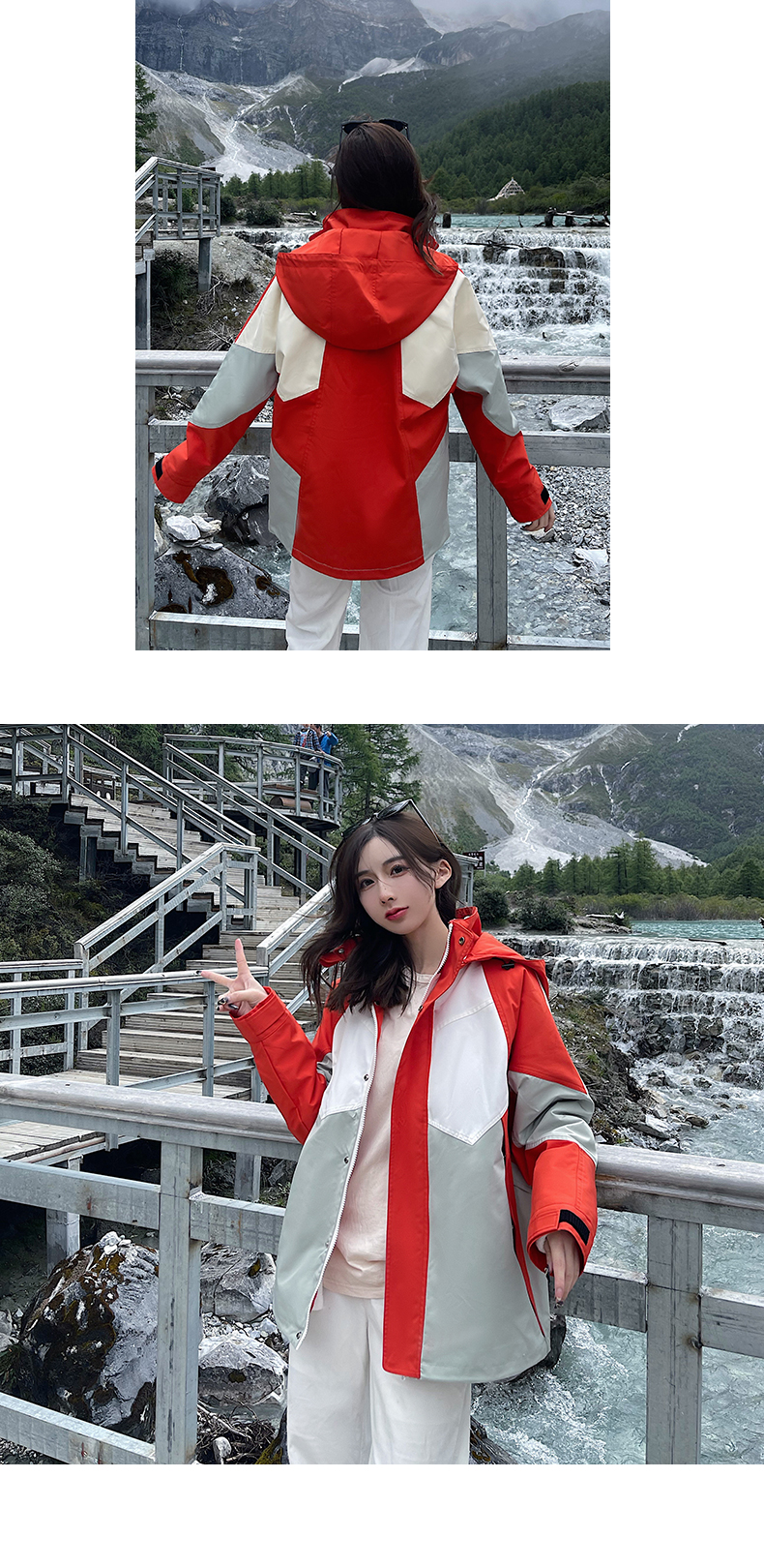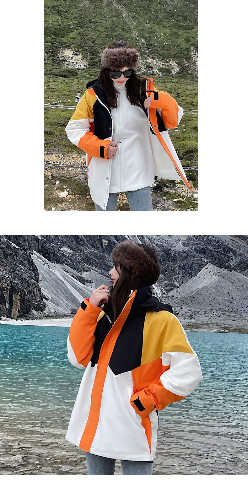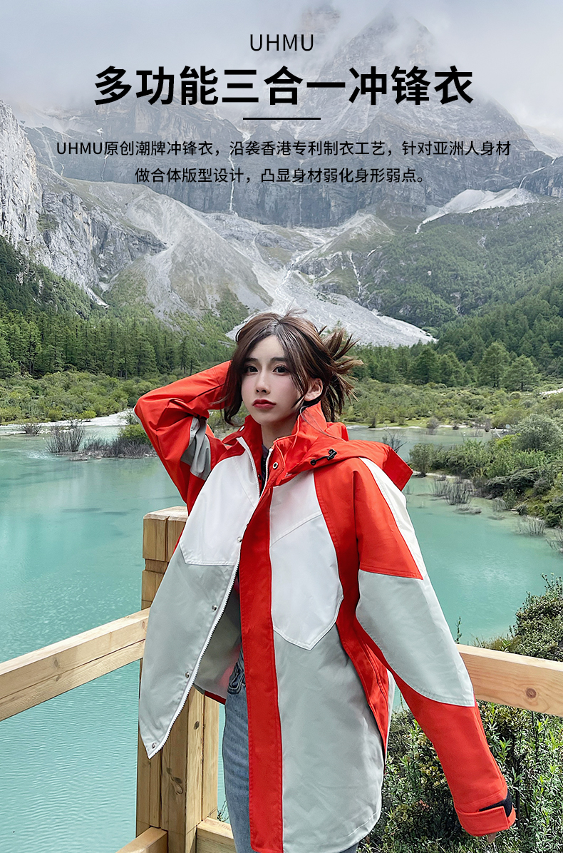 潮牌拼色炸街衝鋒衣男女三合一外套秋冬加絨西藏可拆卸防風滑雪服