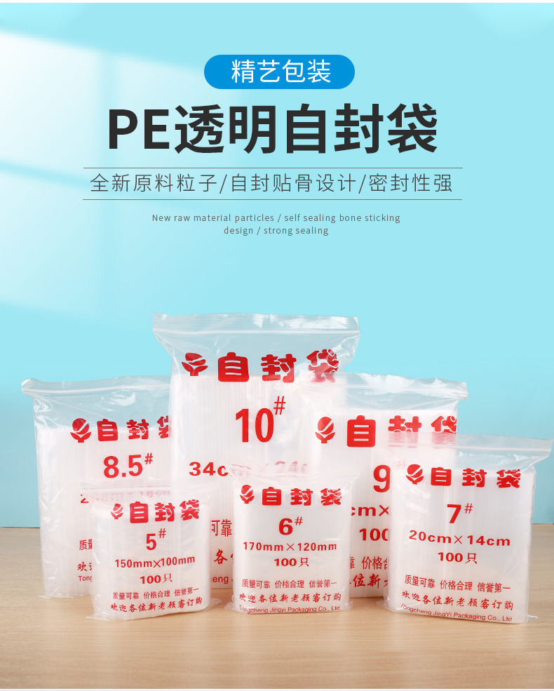 精艺牌4号自封袋8*12食品密封袋双层5丝8丝10丝12丝100只封口袋