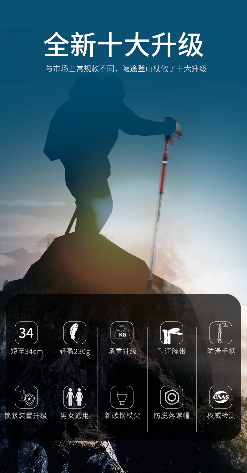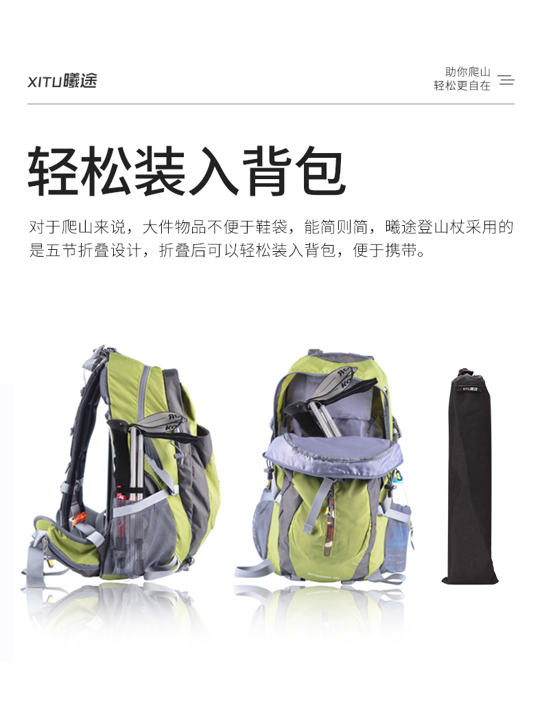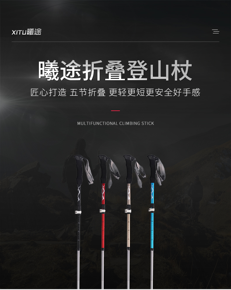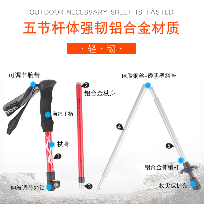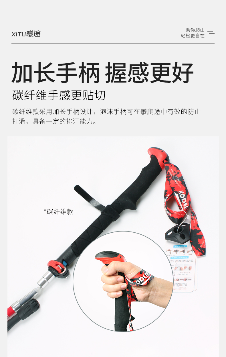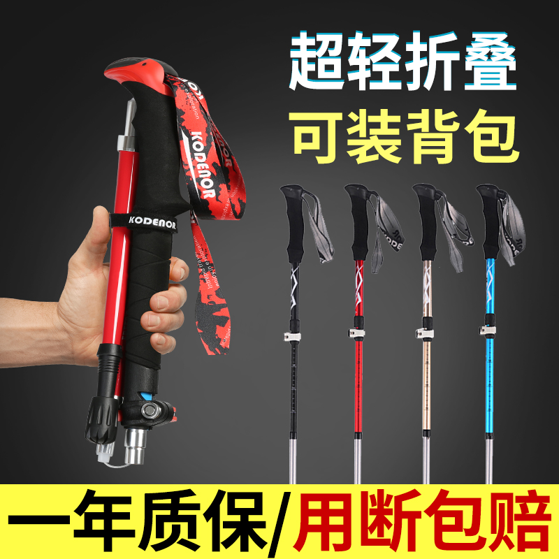 多功能登山杖超輕短碳素纖維戶外摺疊伸縮行山手杖女款爬山柺棍男