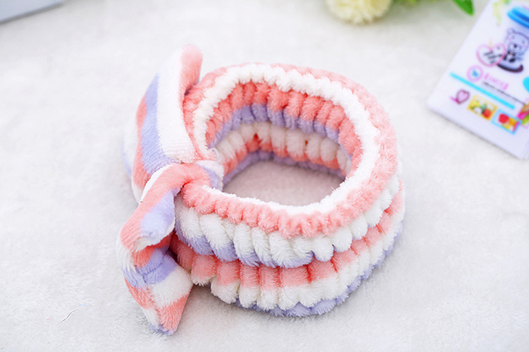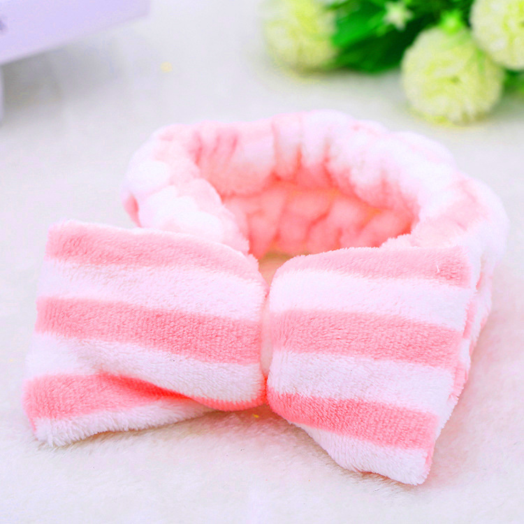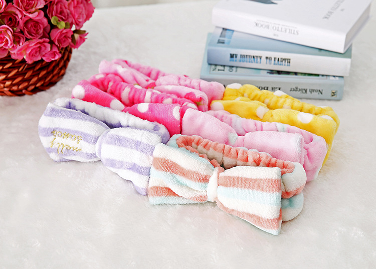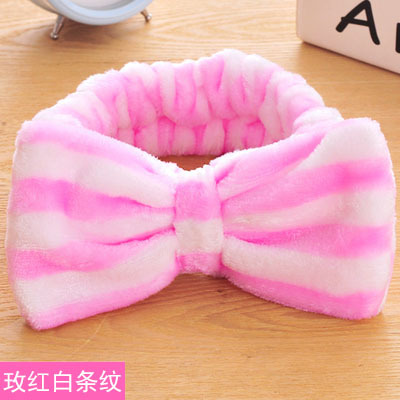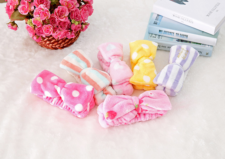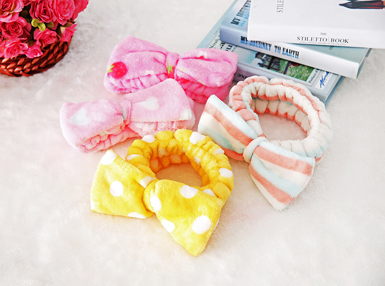 珊瑚绒蝴蝶结束发带 毛绒超细纤维头带 洗脸头巾化妆洗脸髪帶