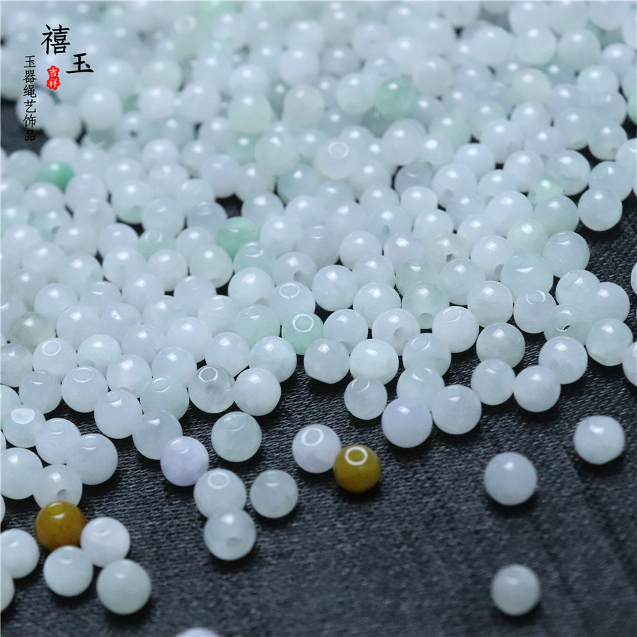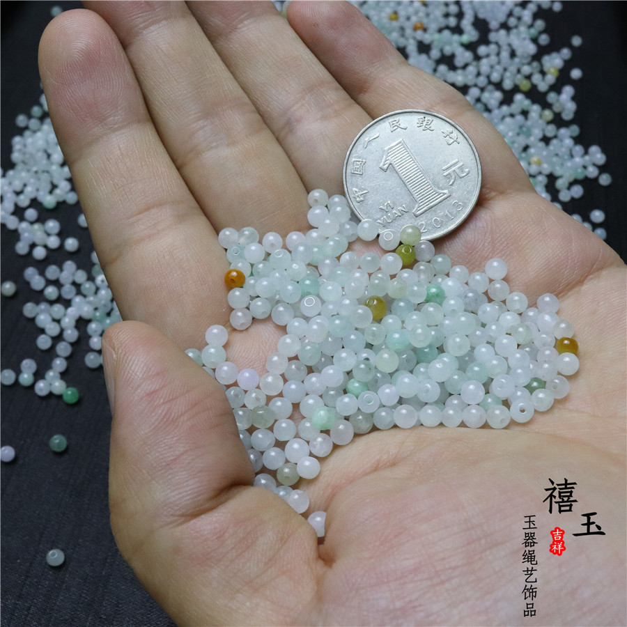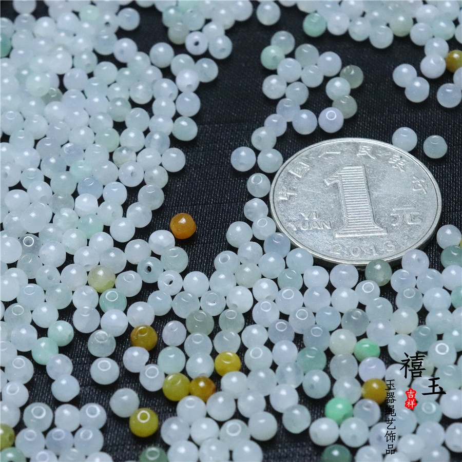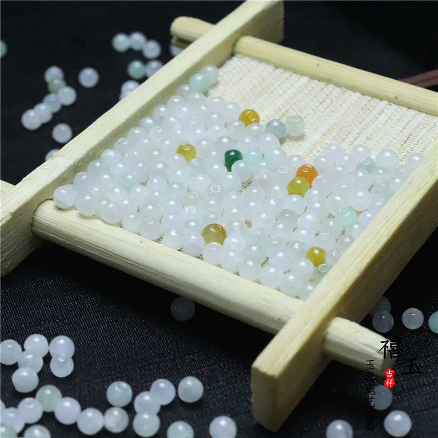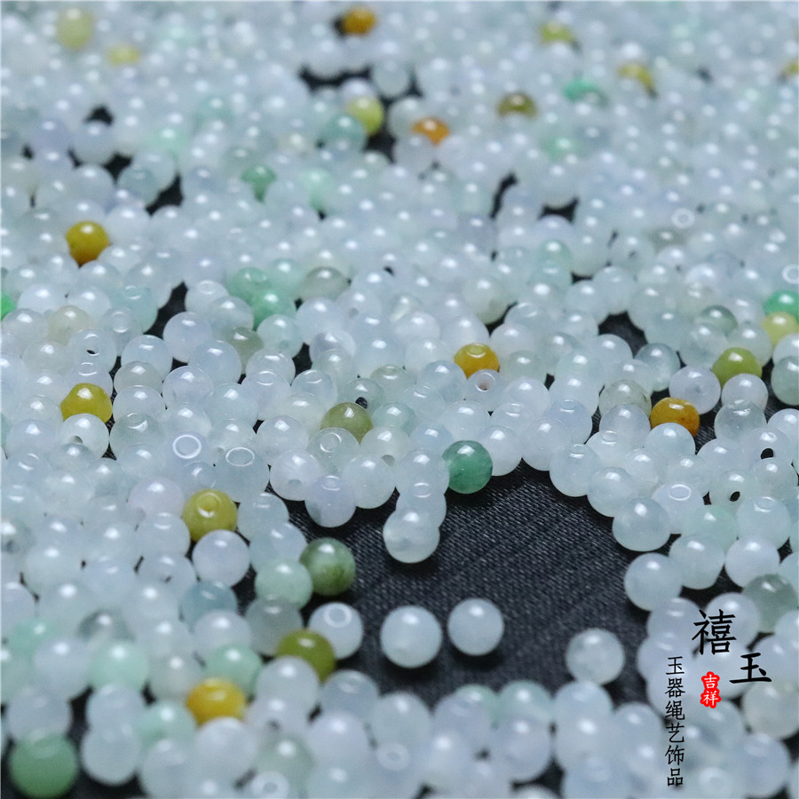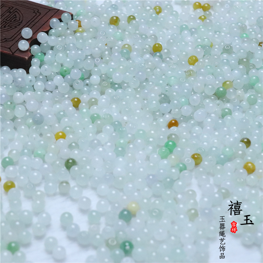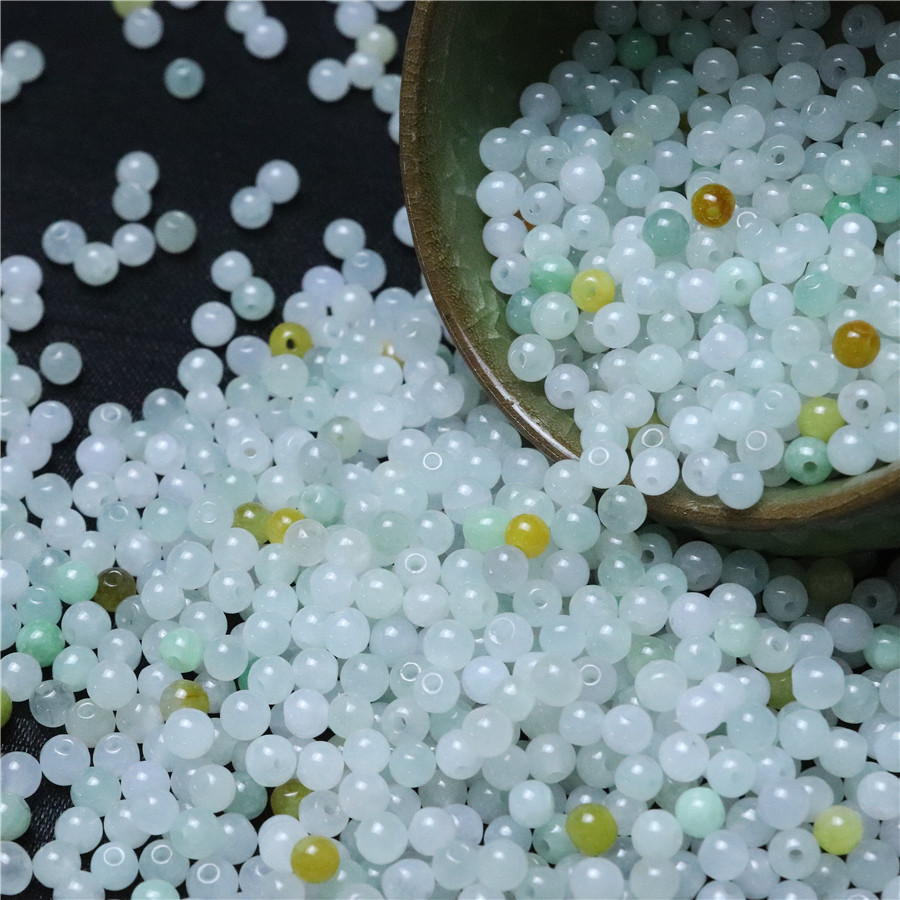 天然翡翠3.5mm三彩玉珠小圆珠糯种玉石珠子饰品配件 散珠 玉珠子