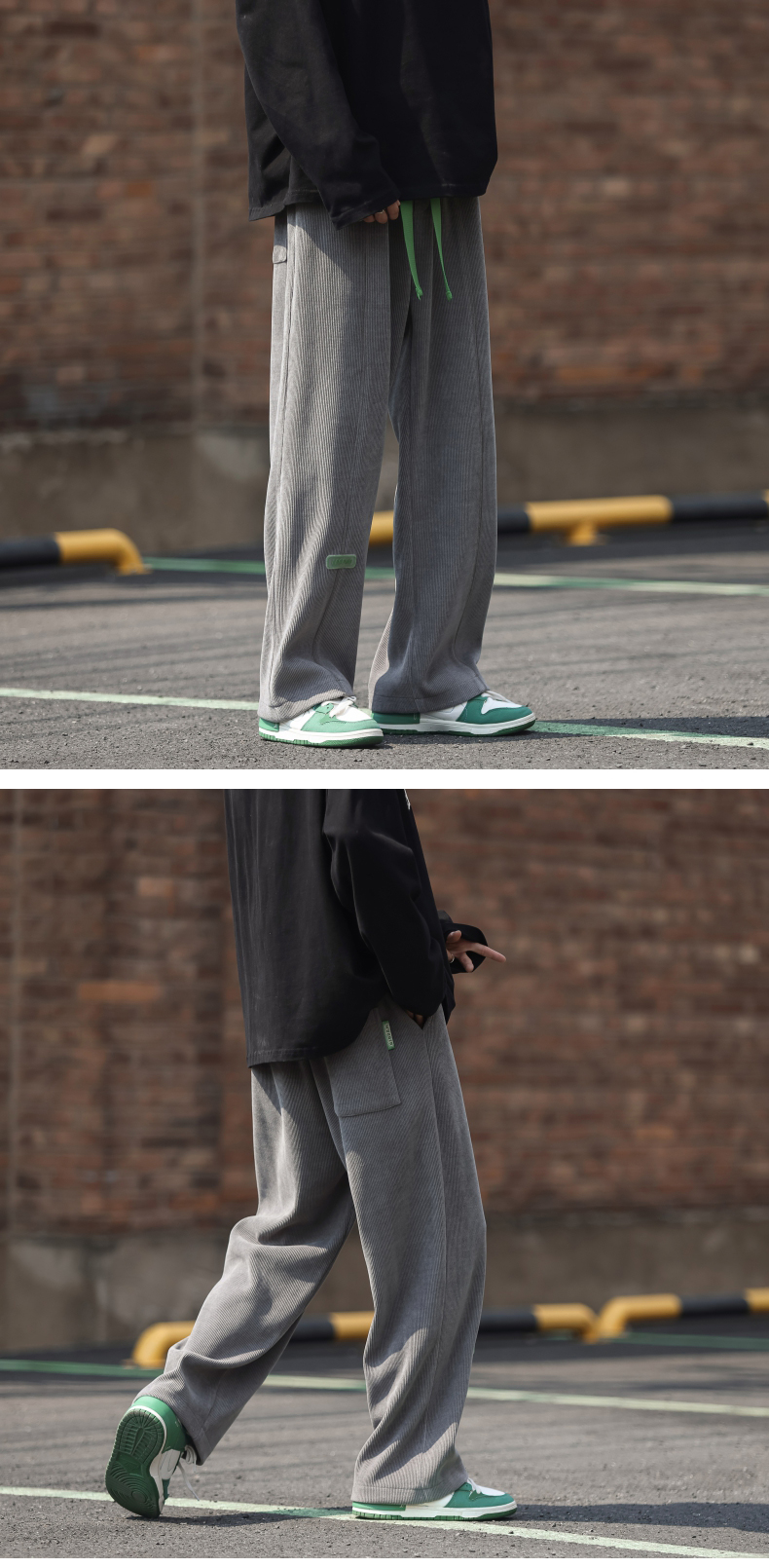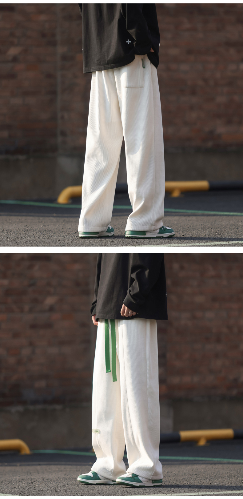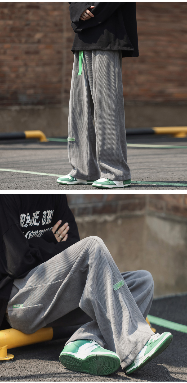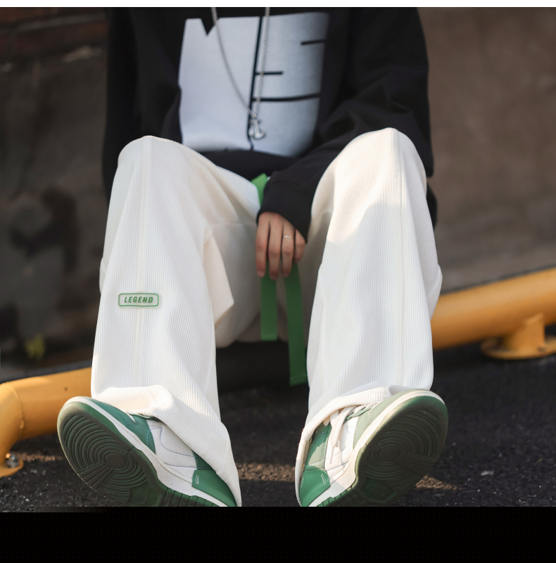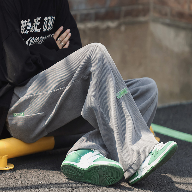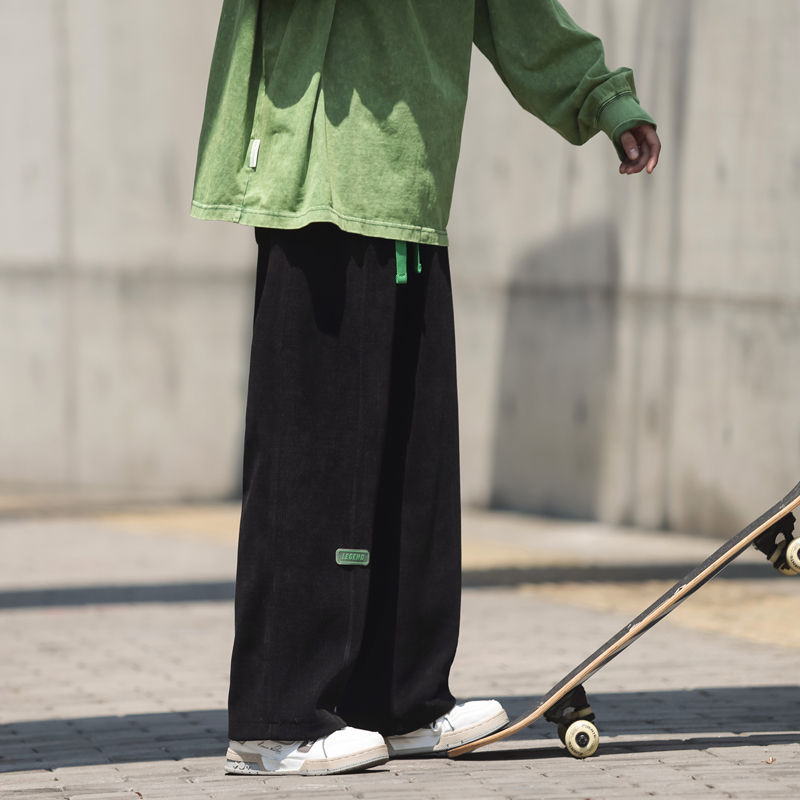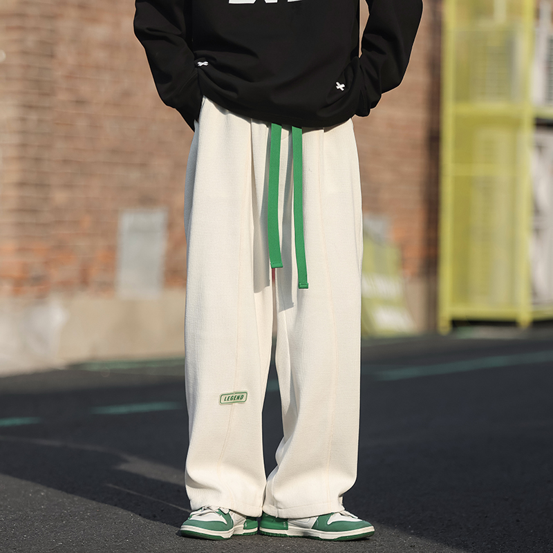 墜感慵懶褲子oversize設計感深灰色抽繩休閒褲男寬鬆直筒闊腿長褲