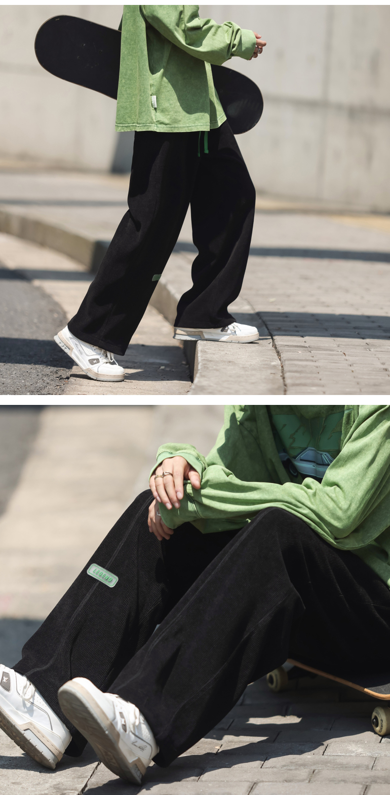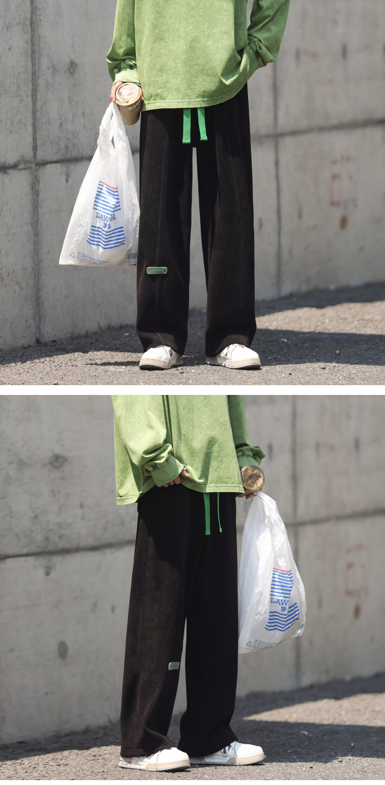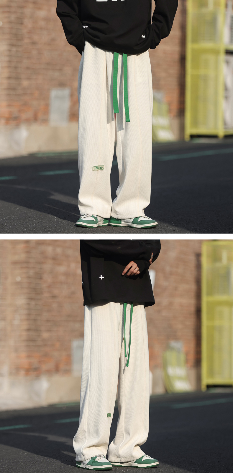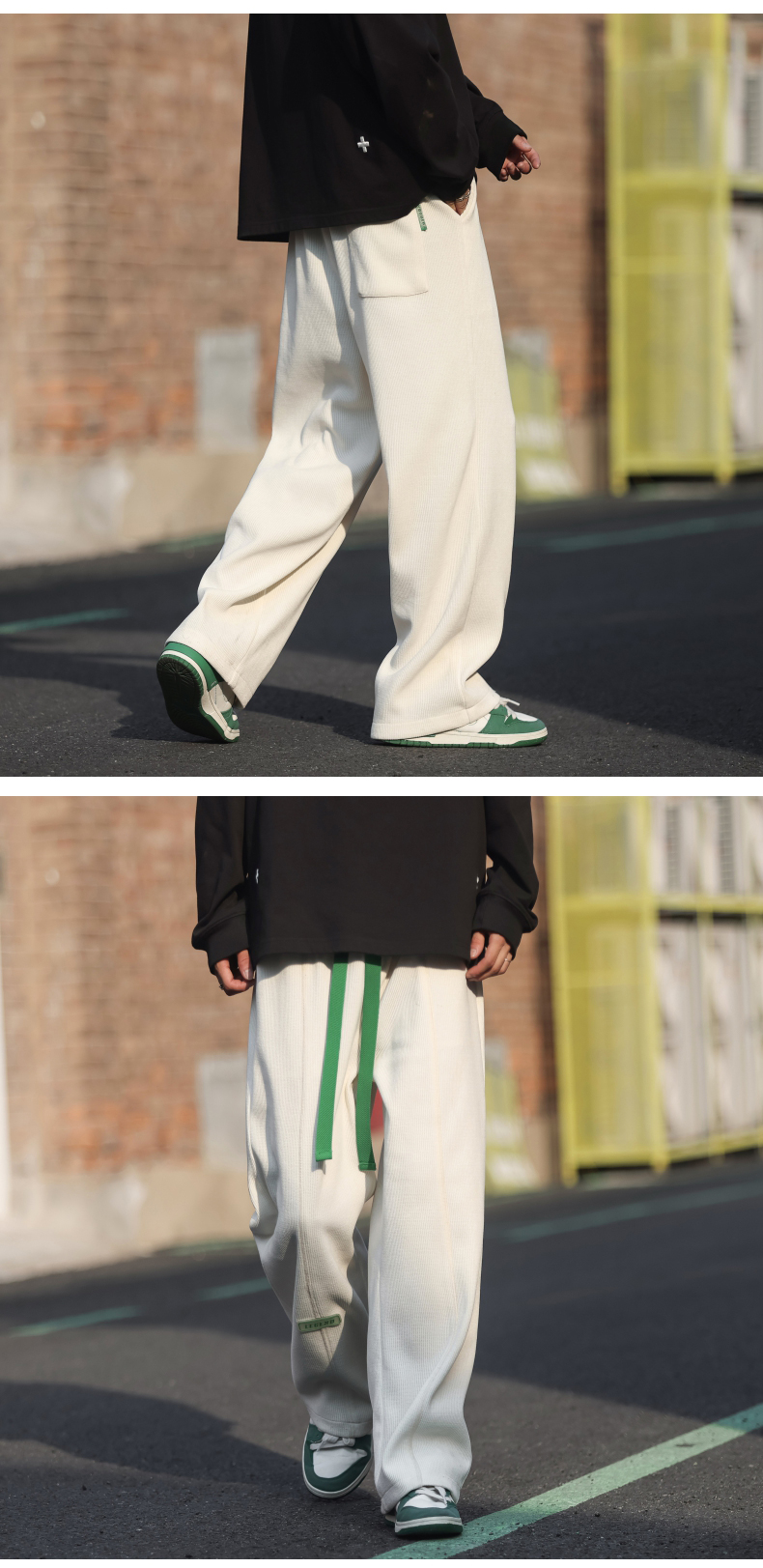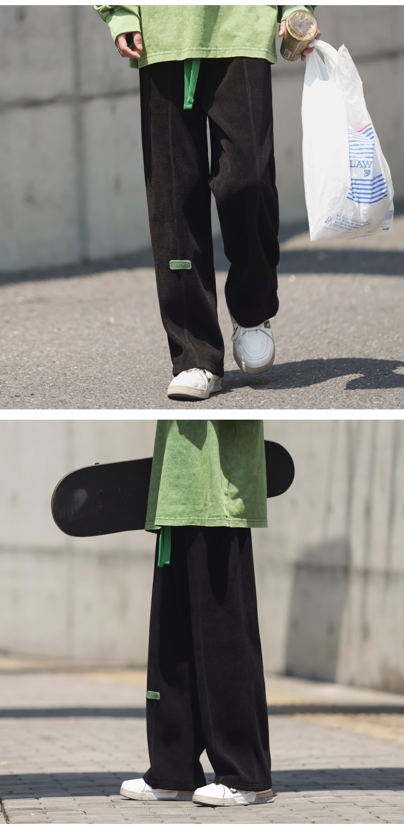 墜感慵懶褲子oversize設計感深灰色抽繩休閒褲男寬鬆直筒闊腿長褲