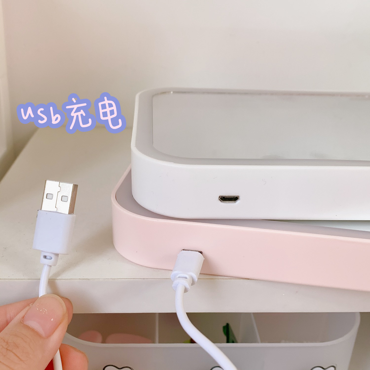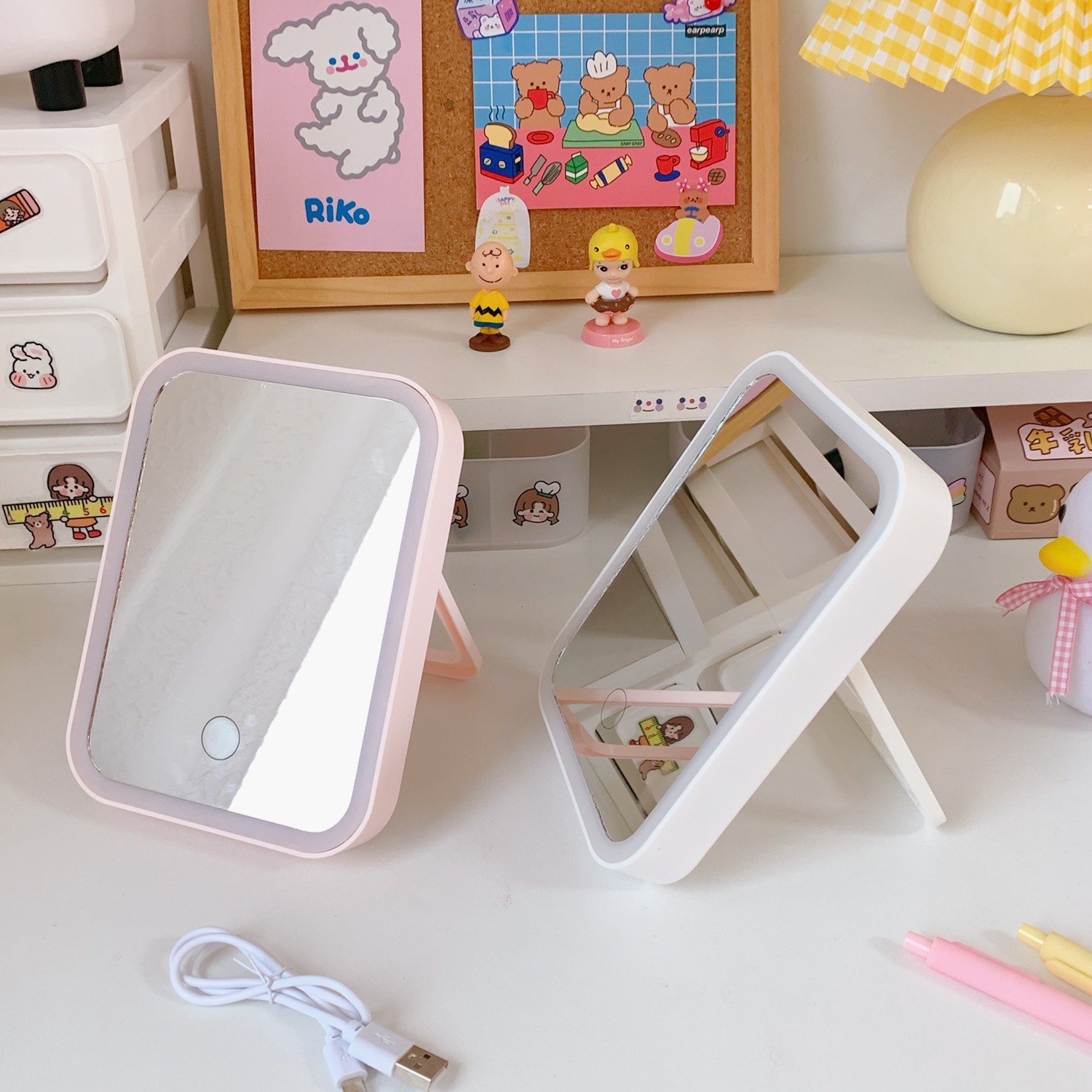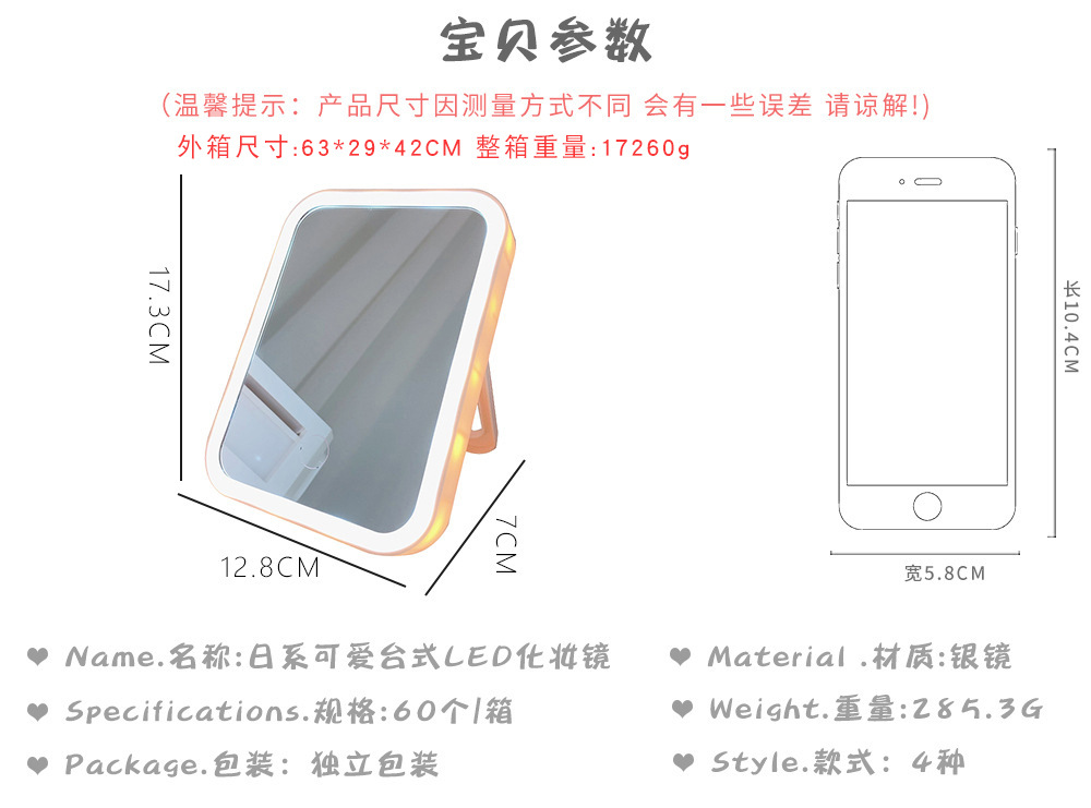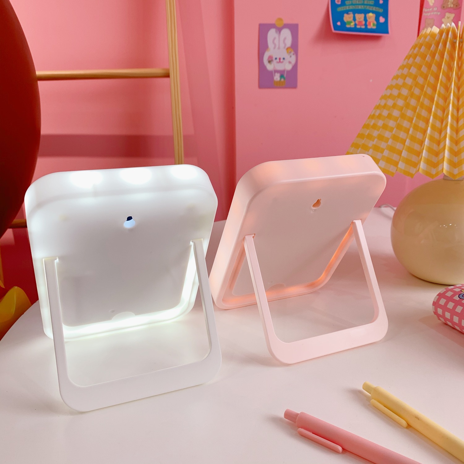 日系可爱带灯台式桌面化妆镜LED大号网红梳妆镜子折叠便携化妆镜