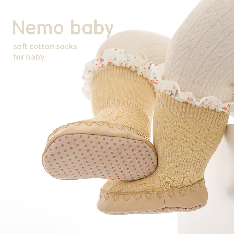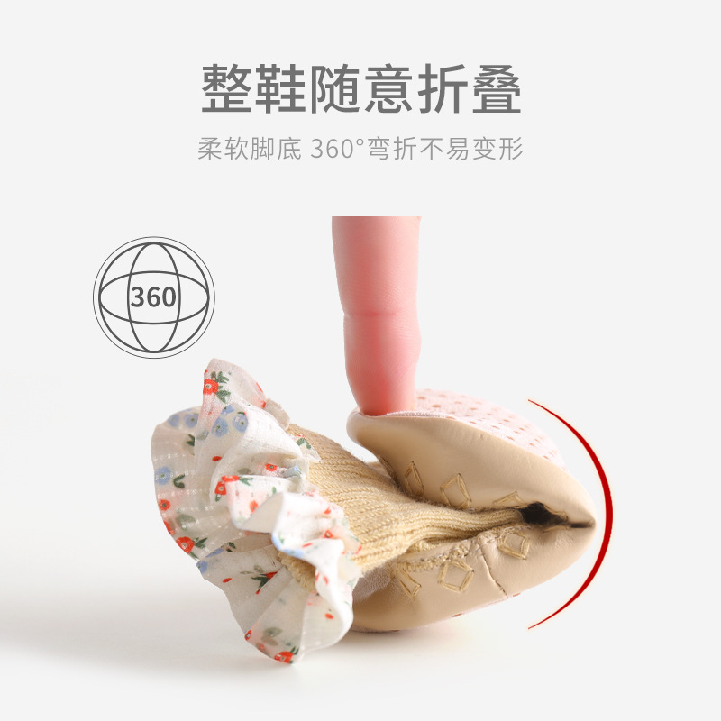 2023春季新品婴儿地板鞋袜韩国公主蕾丝花边宝宝学步鞋外穿皮底鞋