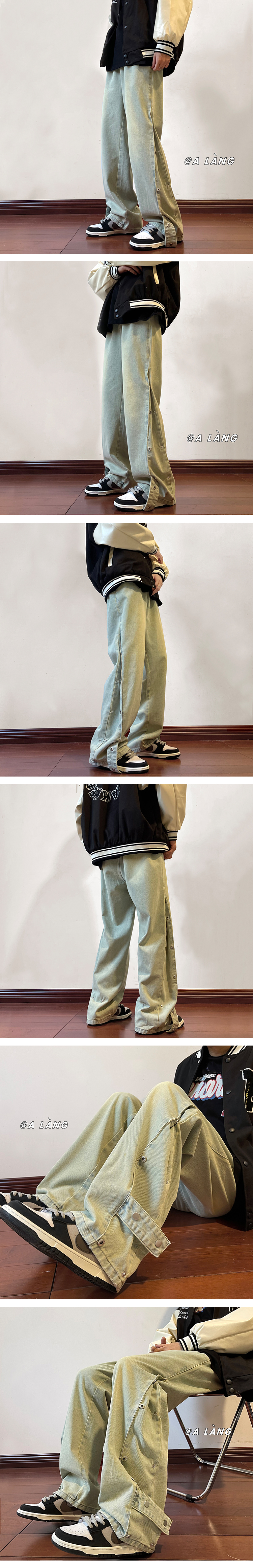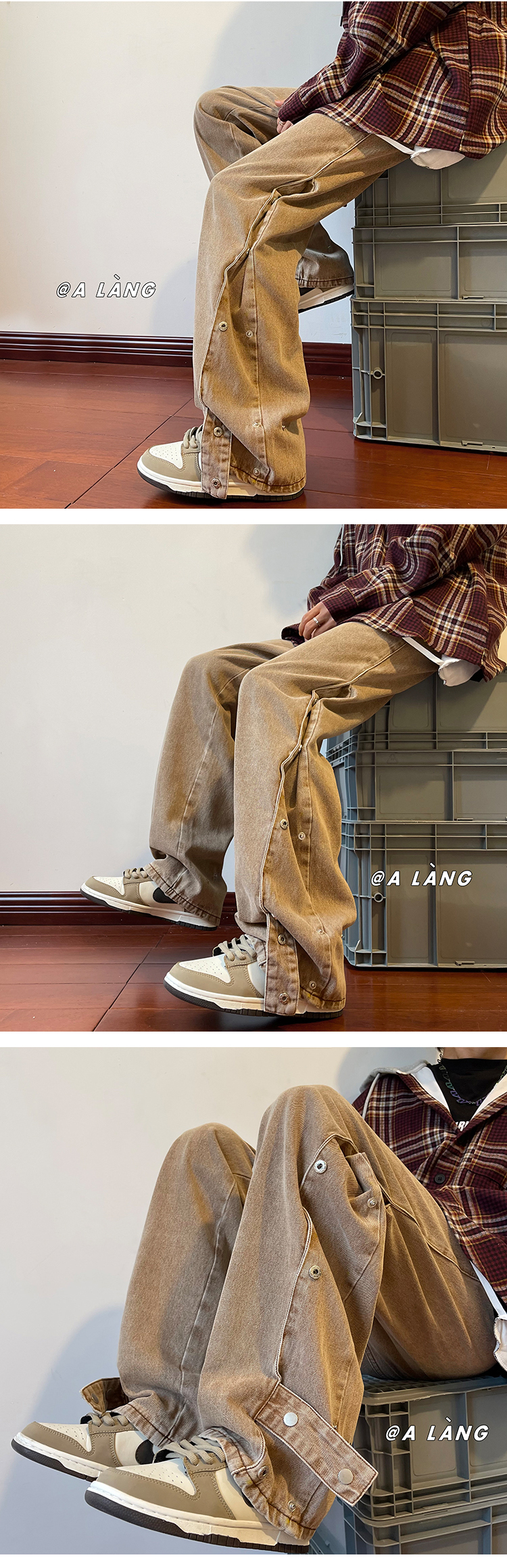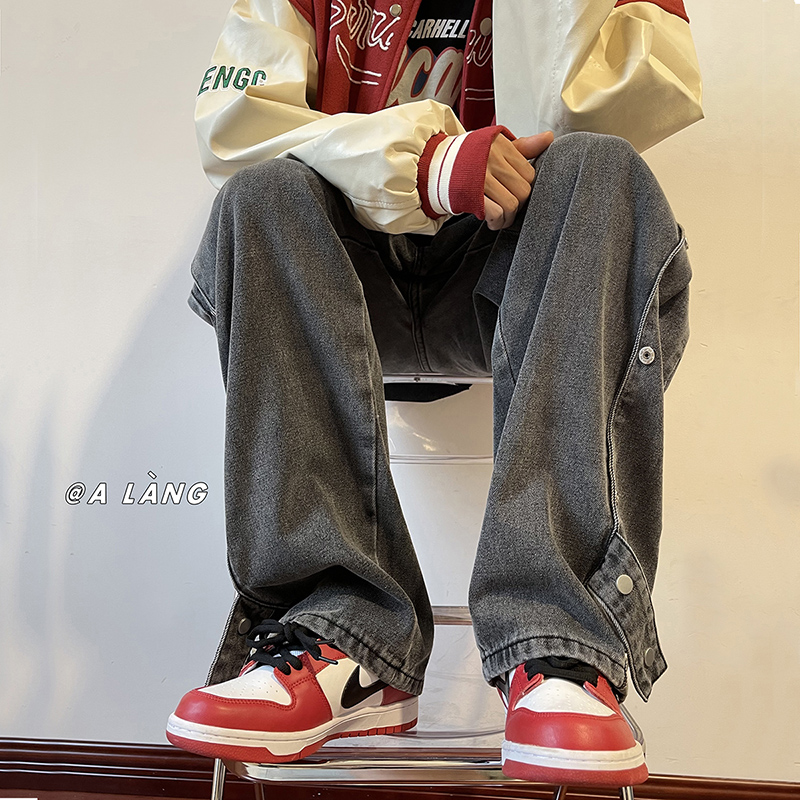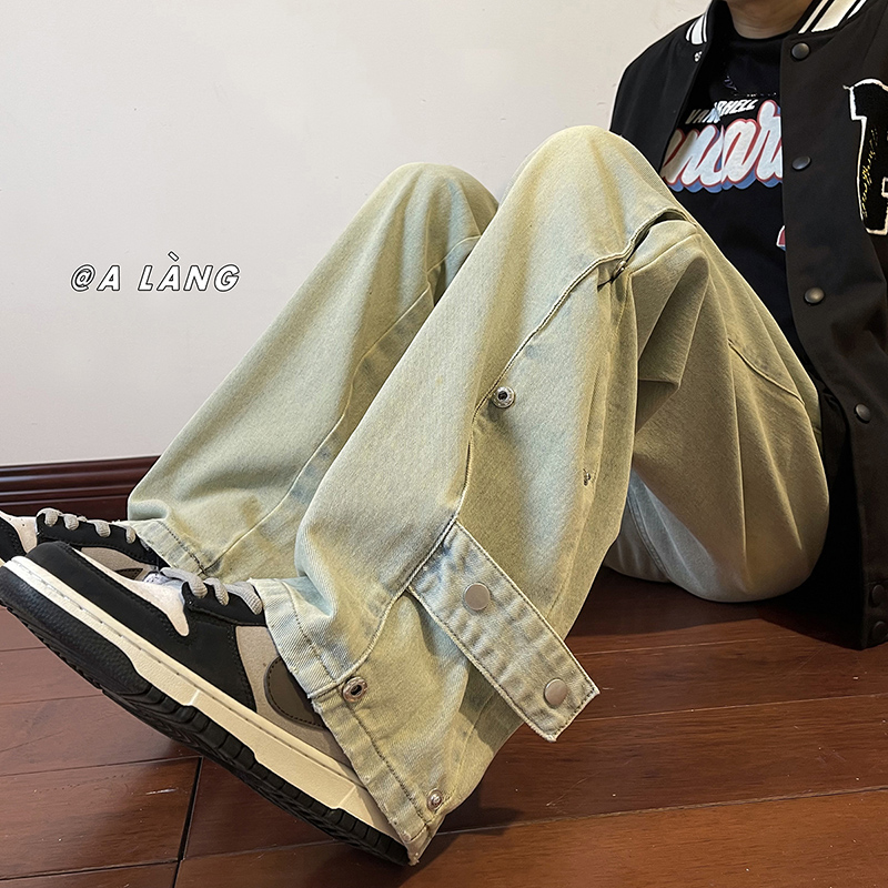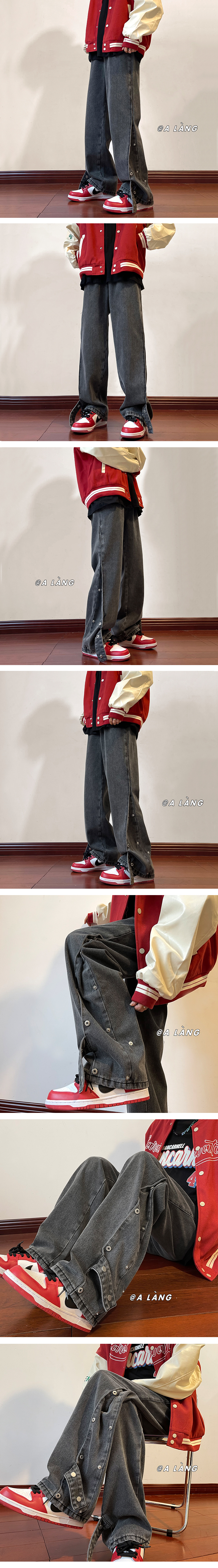 解構通風機能暗釦牛仔褲hiphop美潮高街褲子嘻哈歐美街頭寬鬆直筒褲
