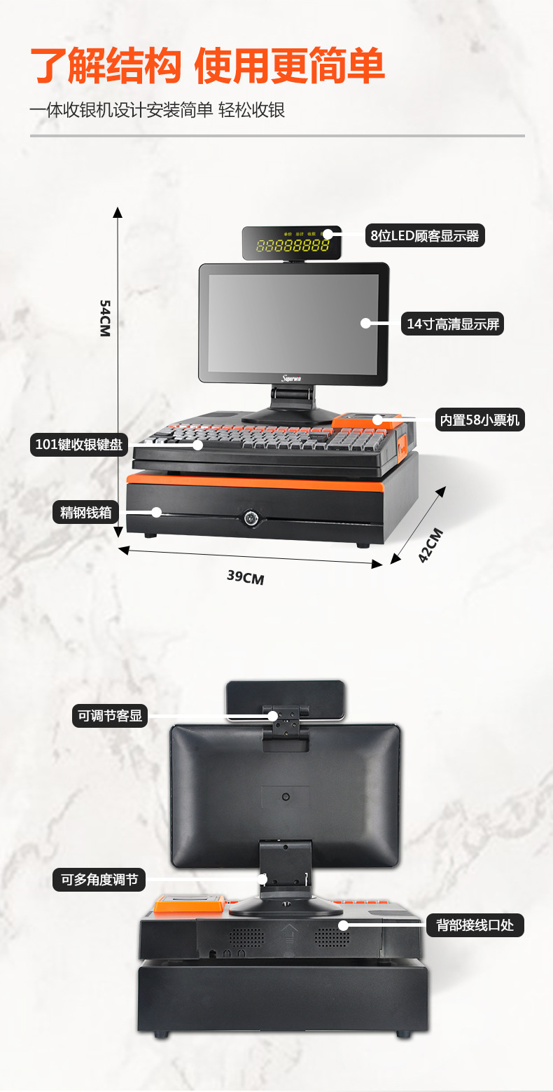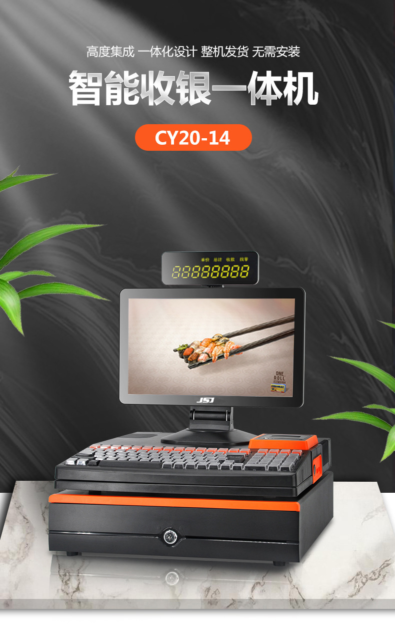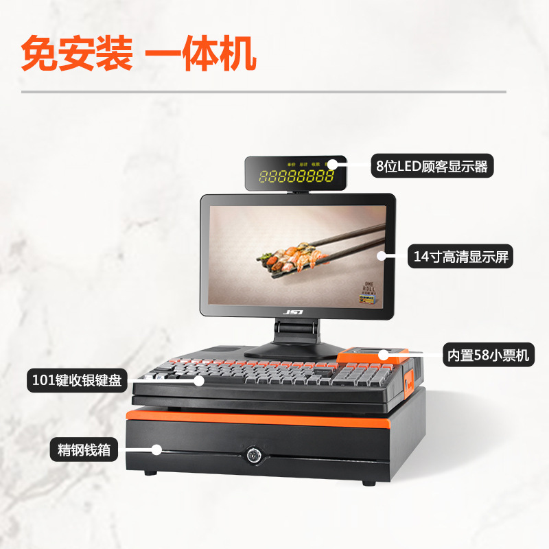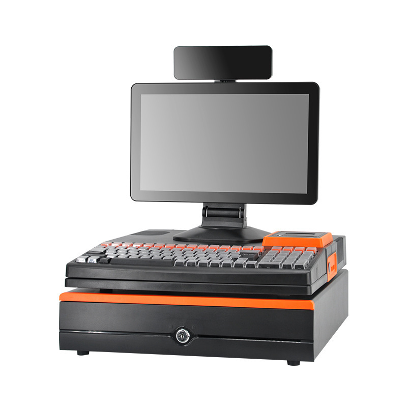 商超前台收银机一体机电脑机器黑色收钱机英文便利店超市收款机