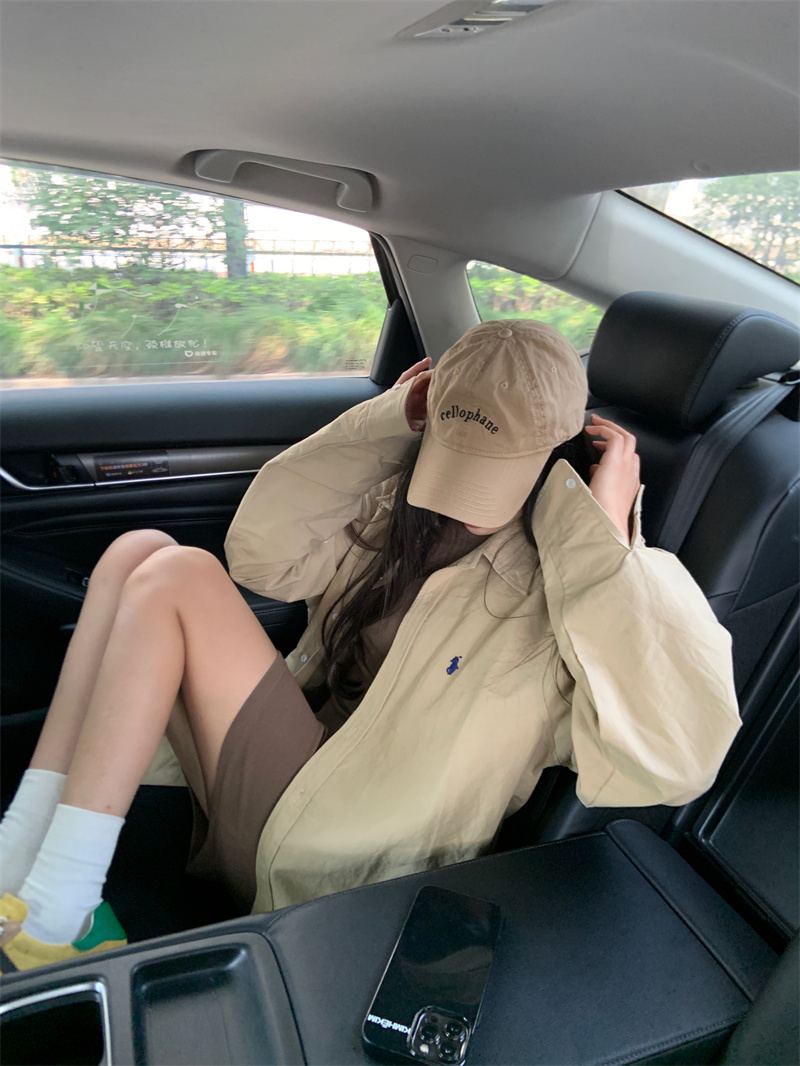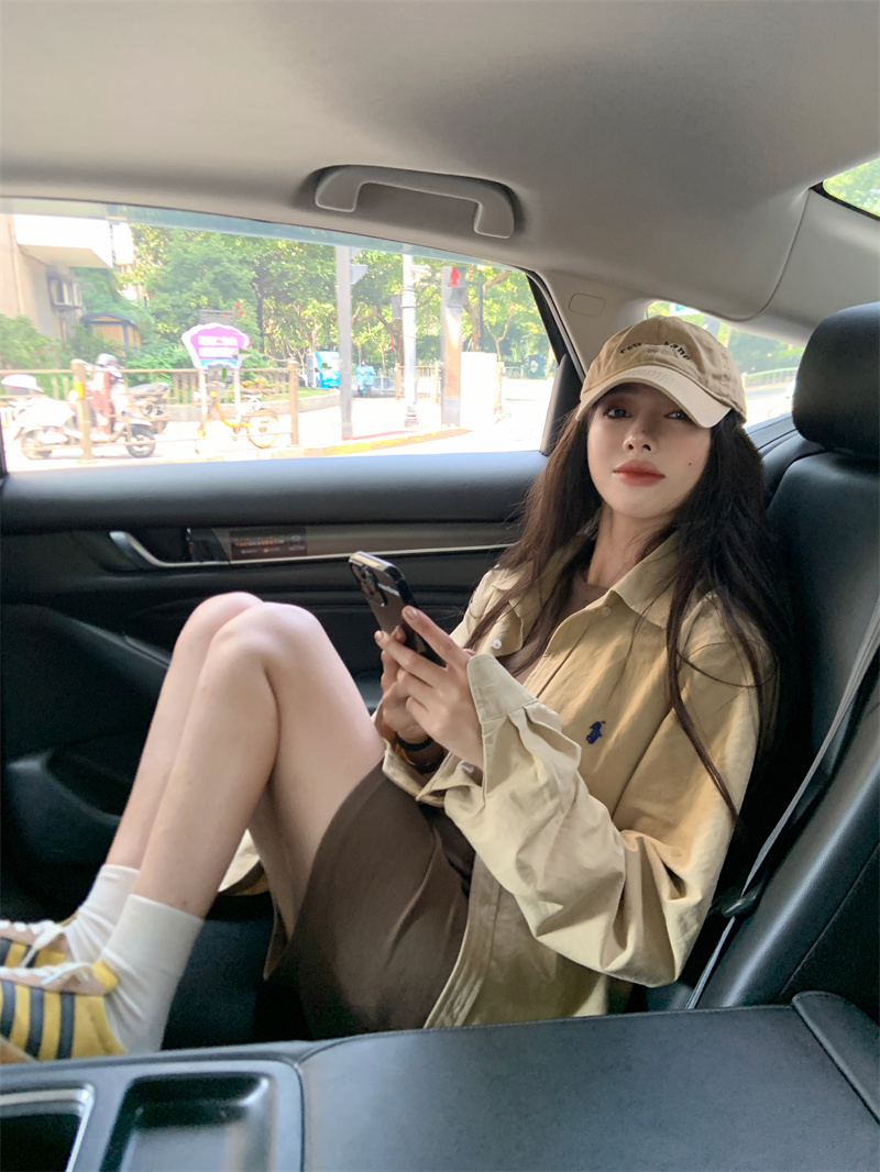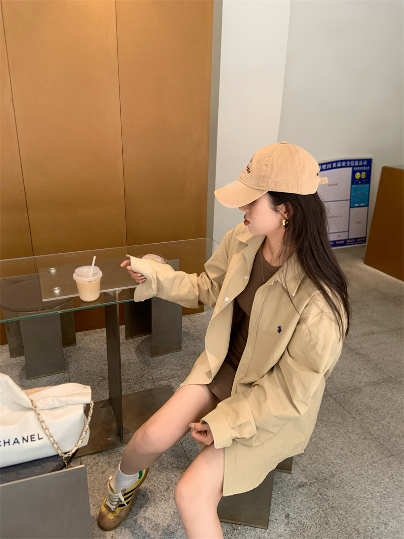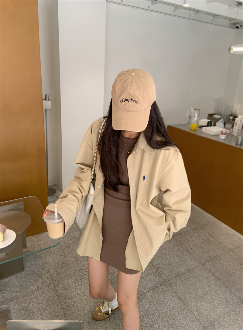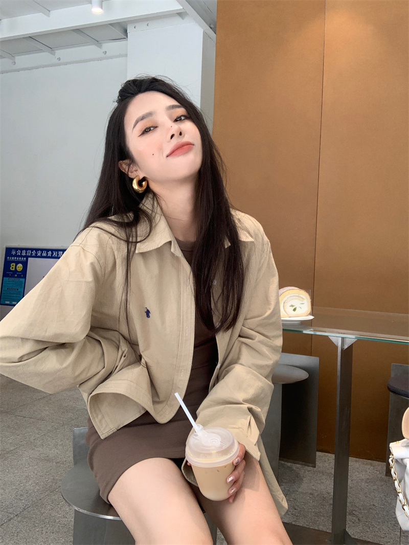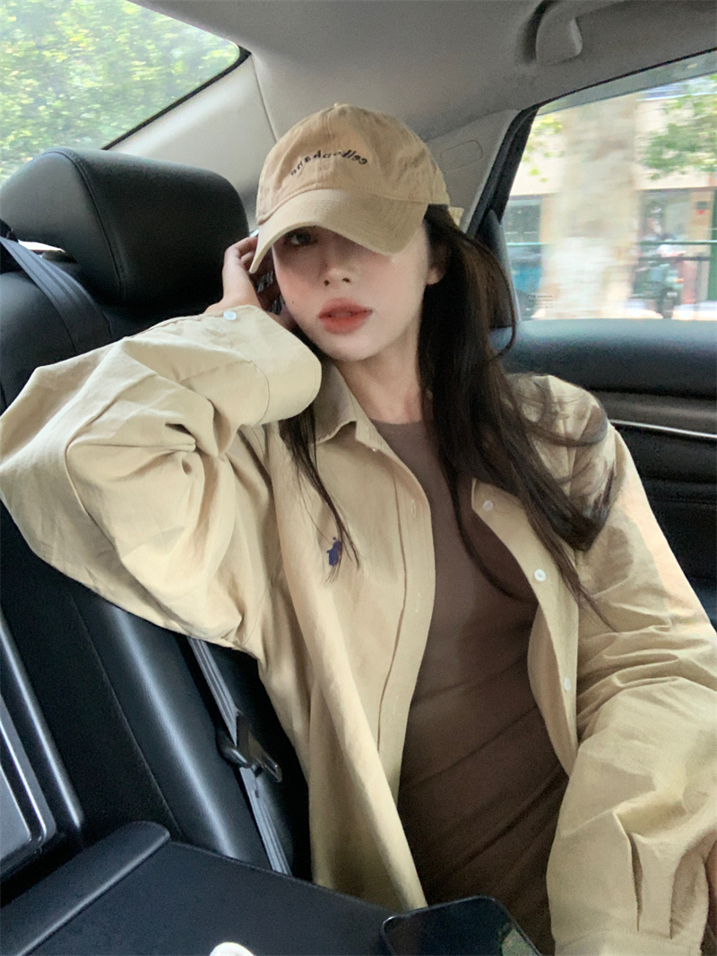 百搭卡其色長袖襯衫女秋季新款外搭寬鬆純色襯衫中長版外套上衣
