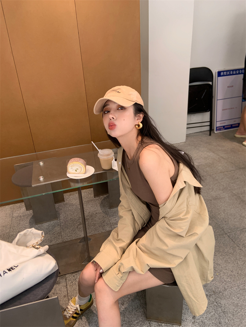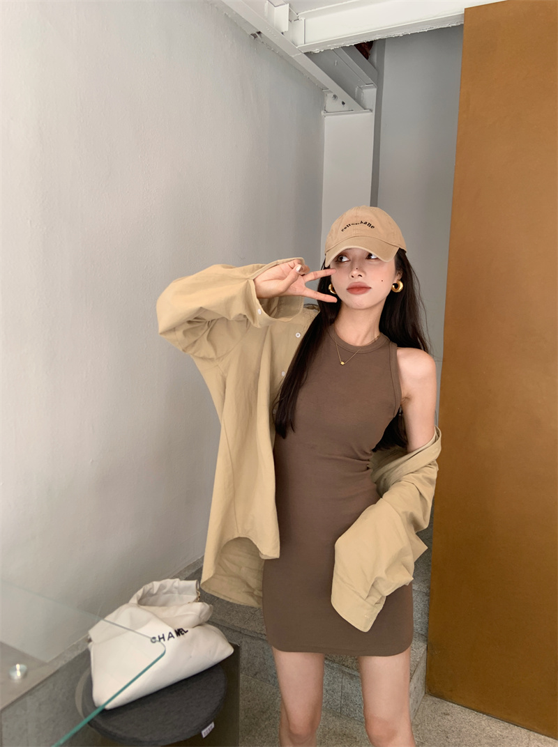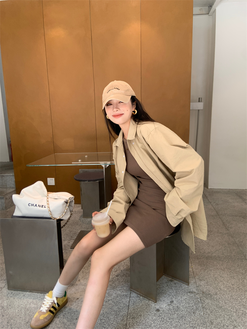 顏色分類 卡其色襯衫,棕色背心裙