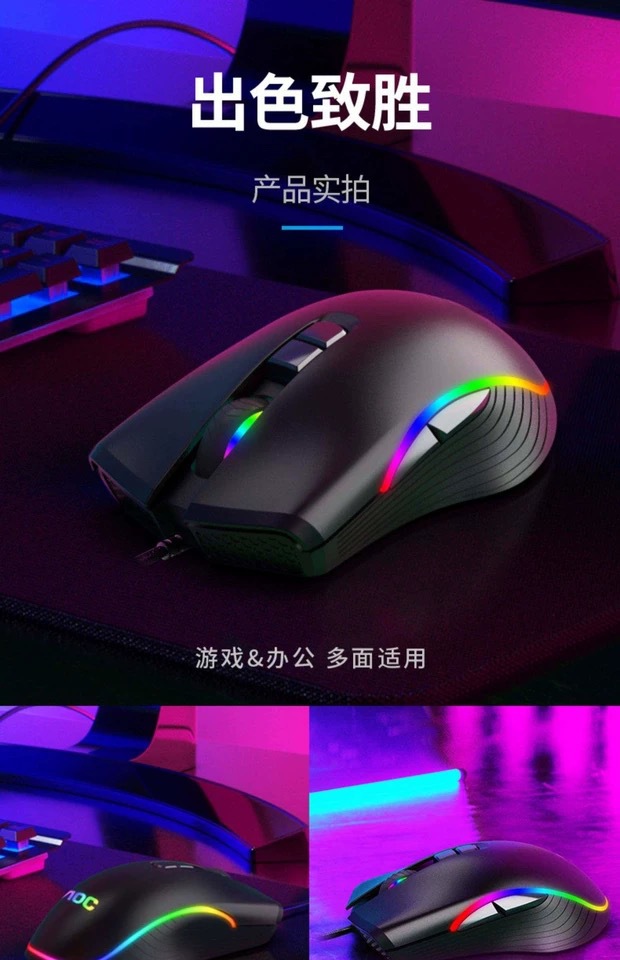 AOC GM100有线电竞游戏鼠标笔记本台式机电脑人体工程学通用鼠标