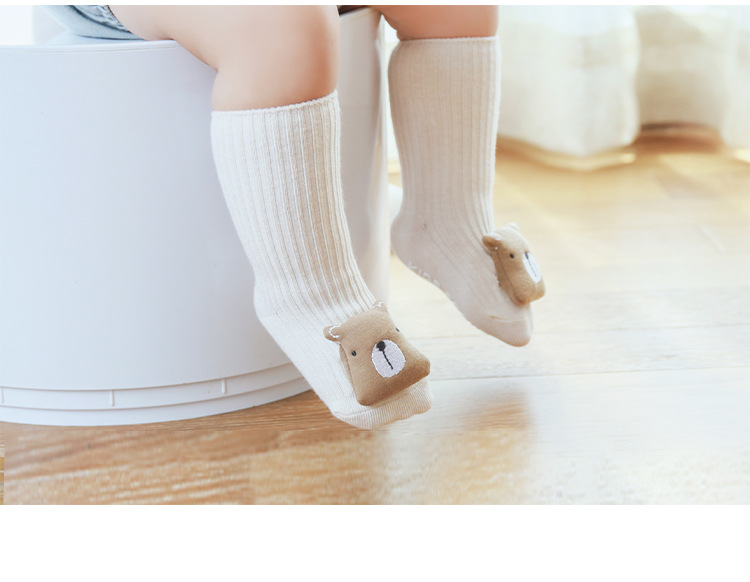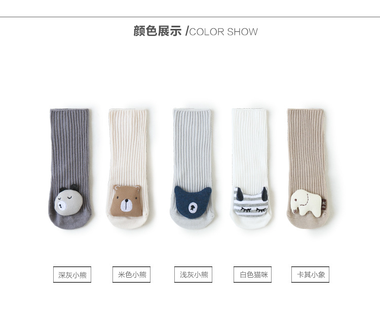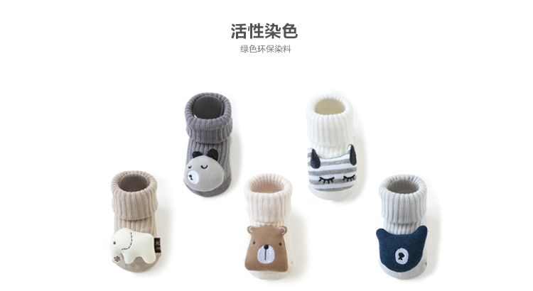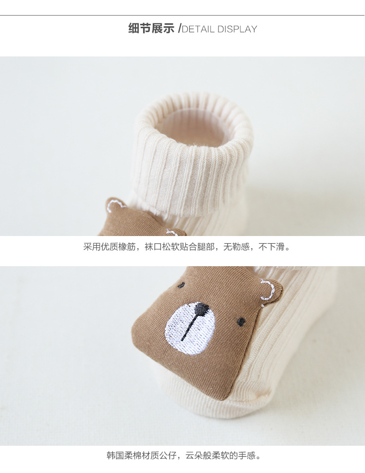 儿童袜子秋季新款韩版刺绣公仔宝宝袜防滑点胶地板袜婴幼儿学步袜