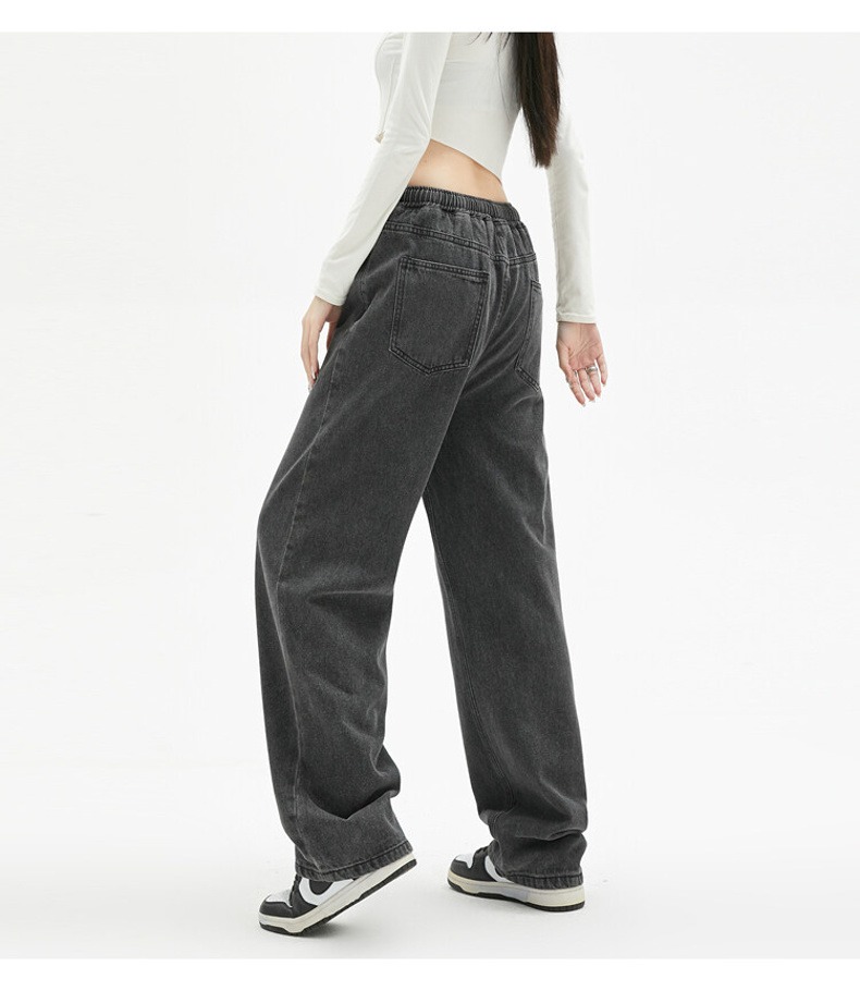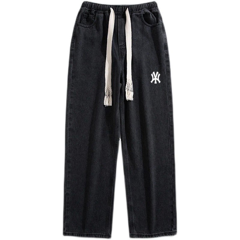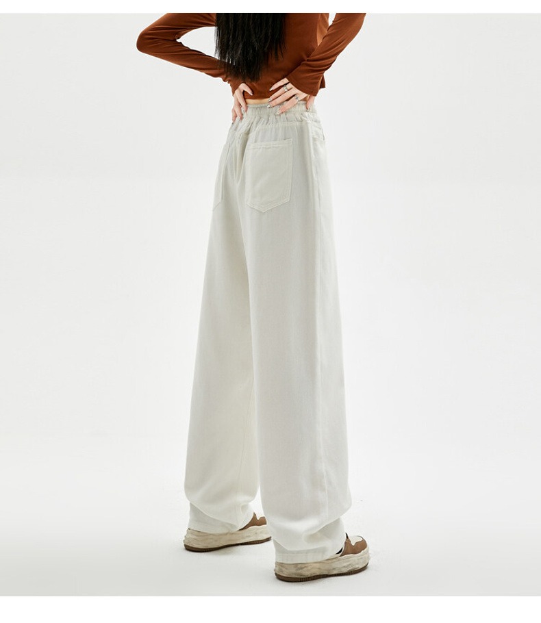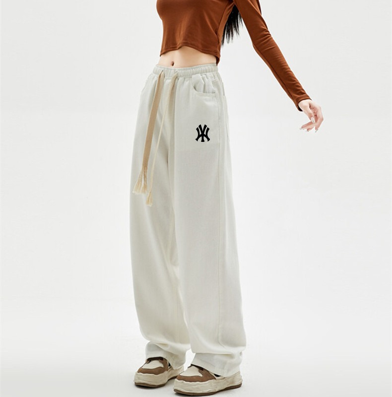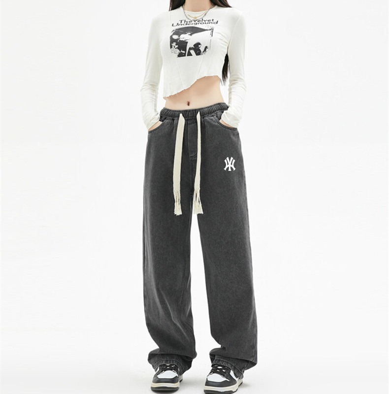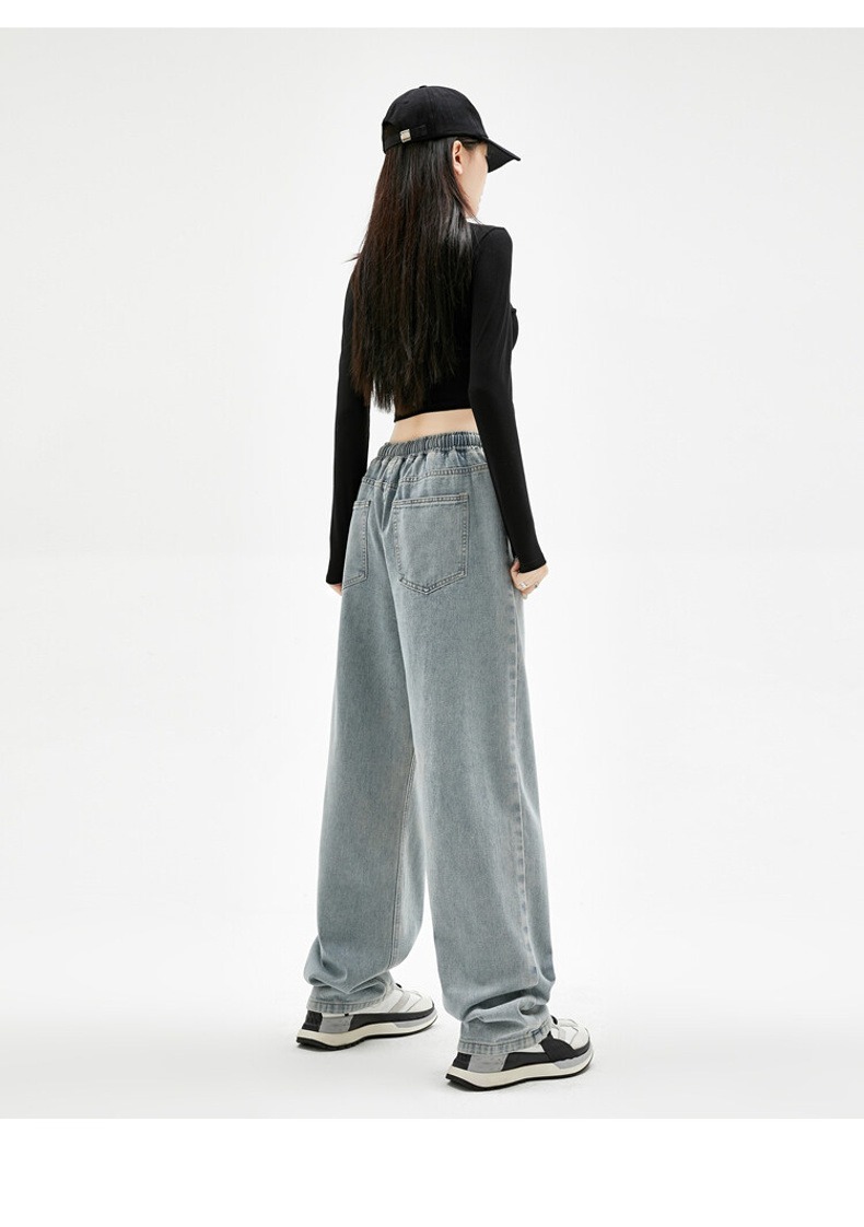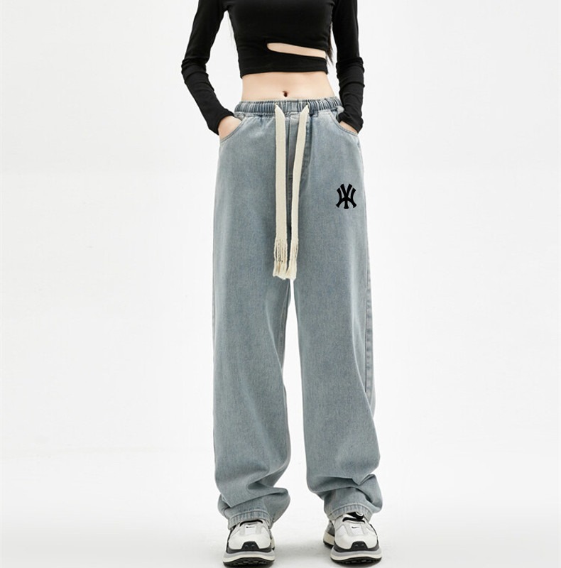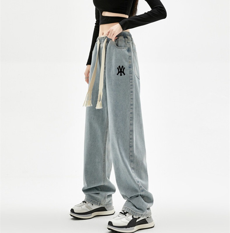 2023新款闊腿牛仔褲女春夏設計感寬鬆高腰顯瘦洗水淺色直筒拖地褲