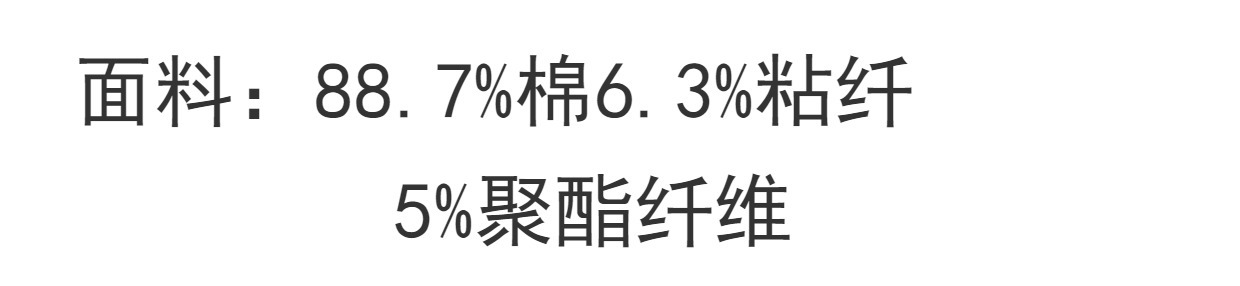 材質成分 棉88.7% 黏膠纖維(黏膠纖維)6.3% 聚酯纖維5%