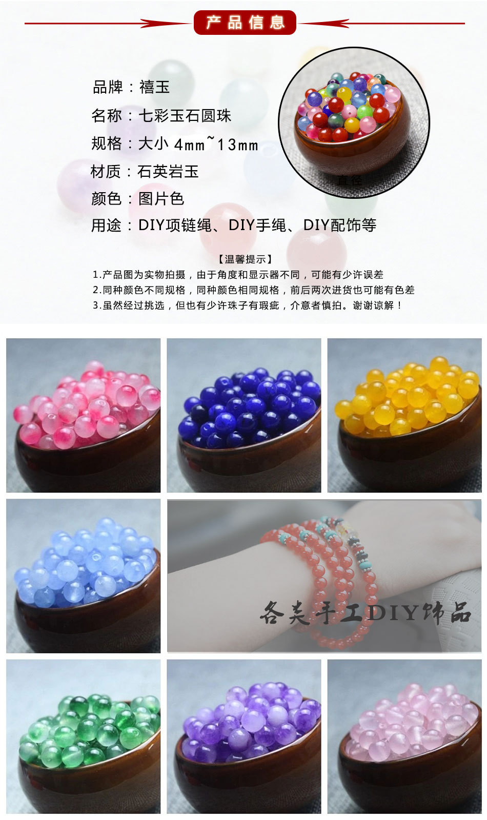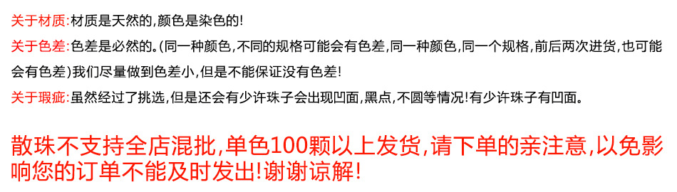 关于材质:材质是天然的,颜色是染色的!同一种颜色的珠子有可能有深色和浅色。