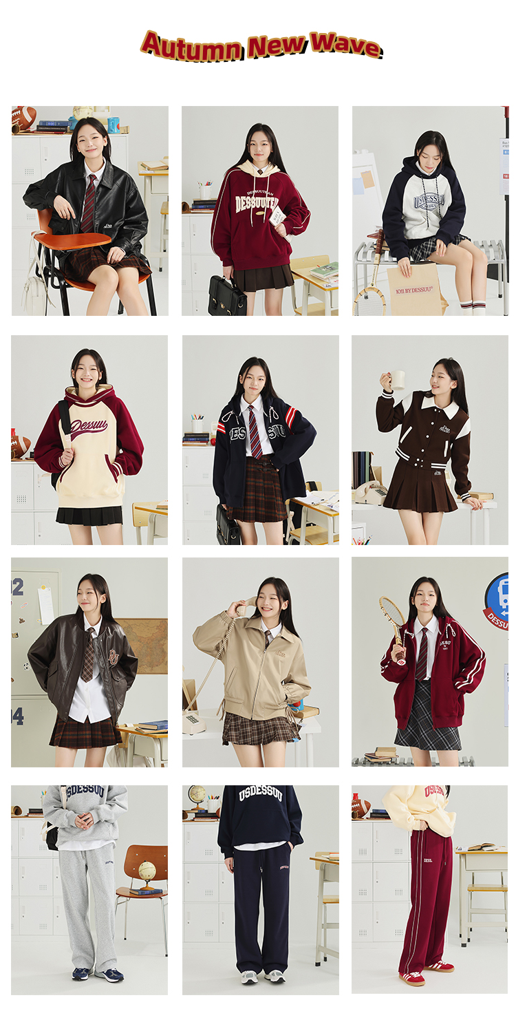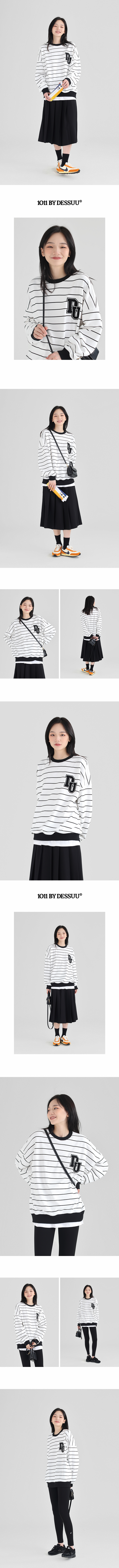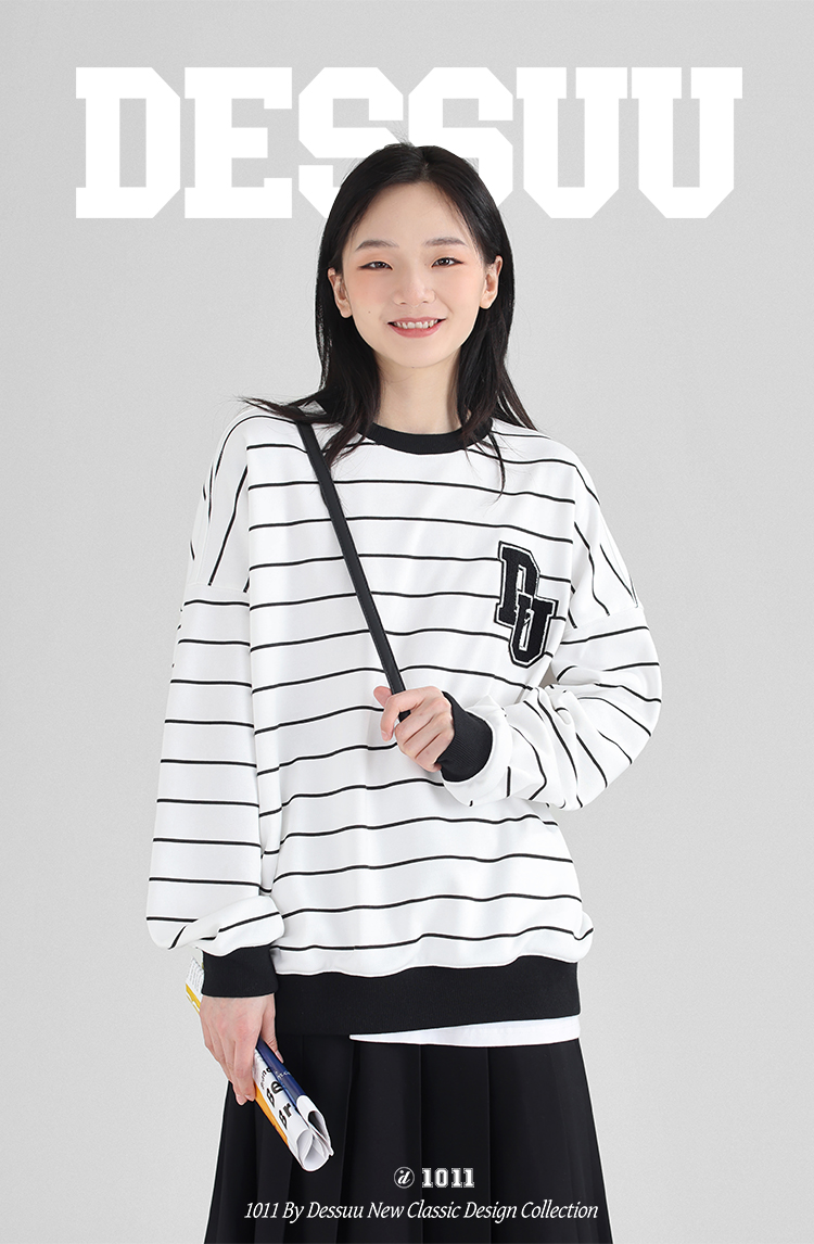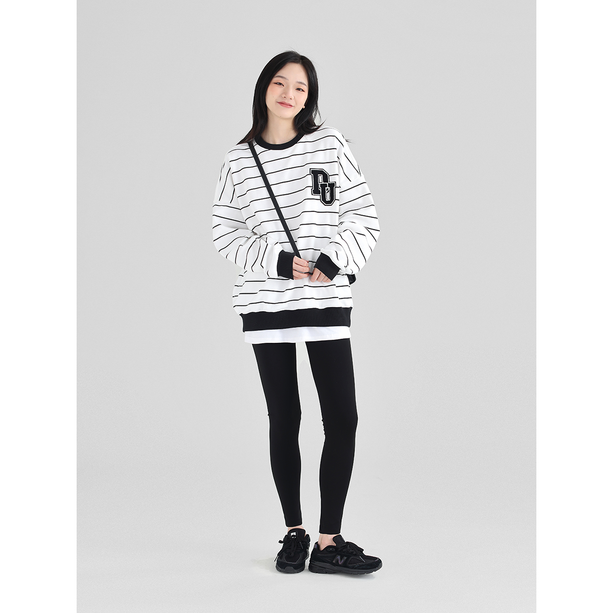 DESSUU 毛巾刺繡學院風條紋圓領厚棉T女2023秋季新款寬鬆套頭上衣