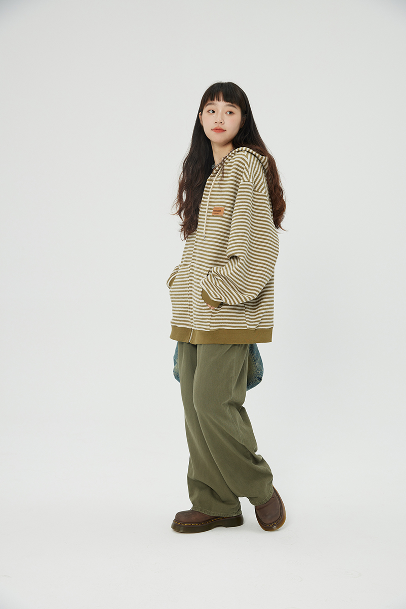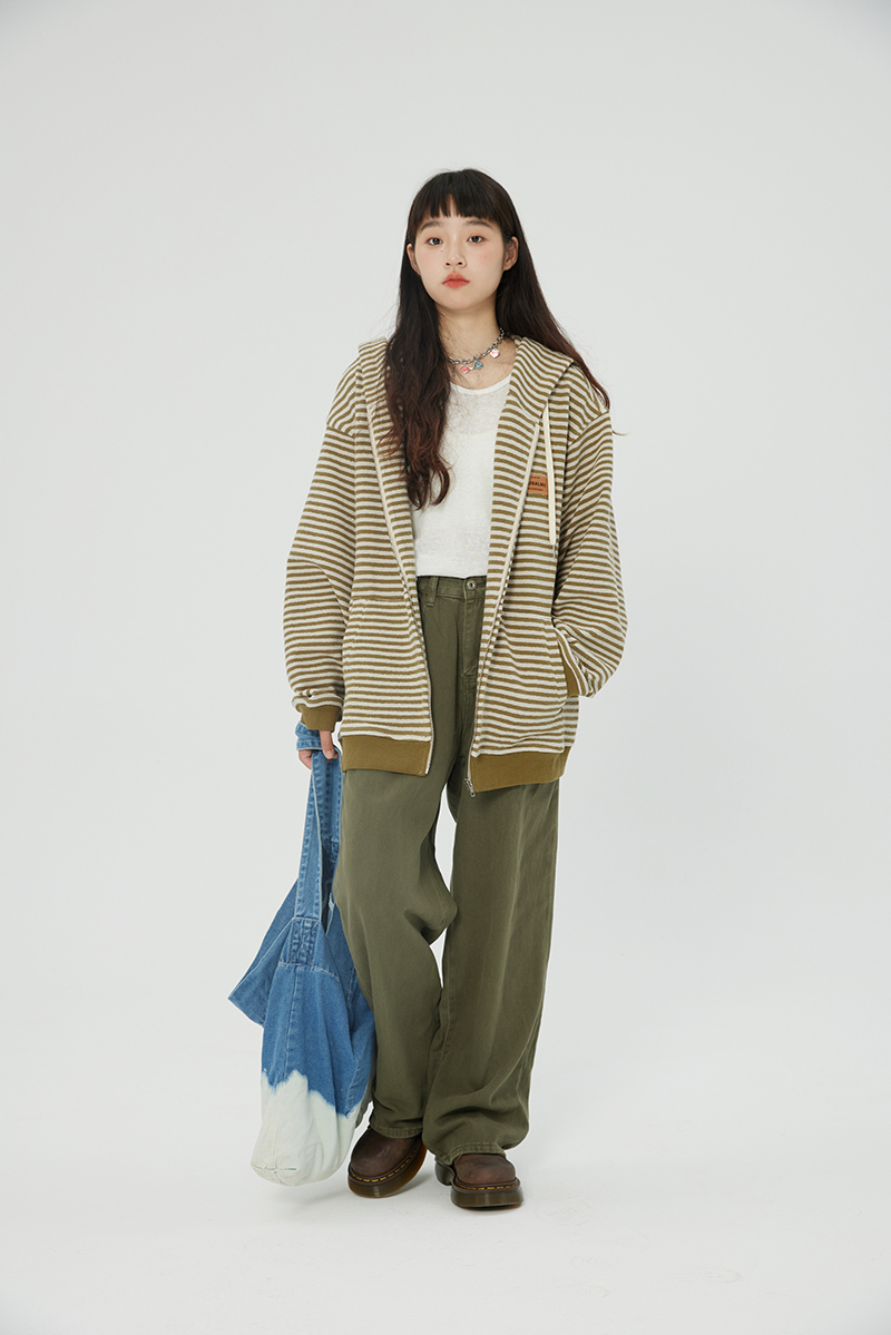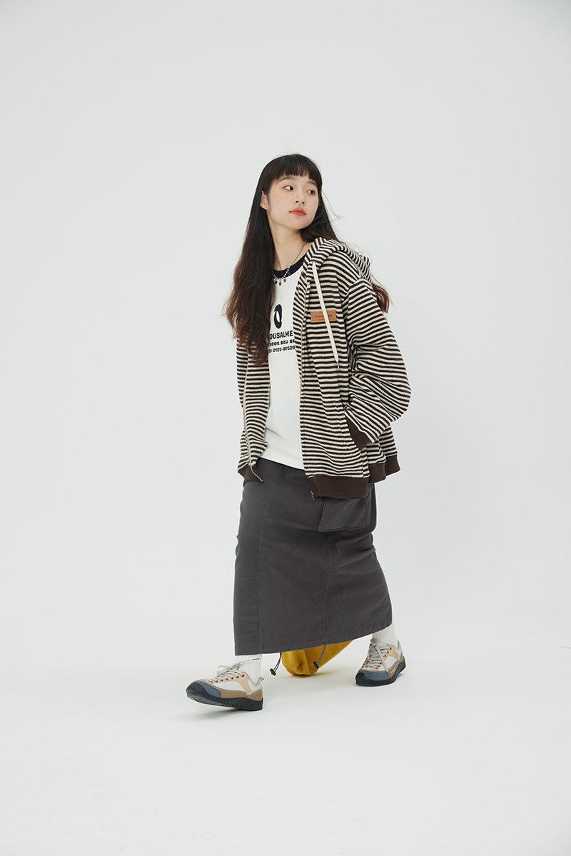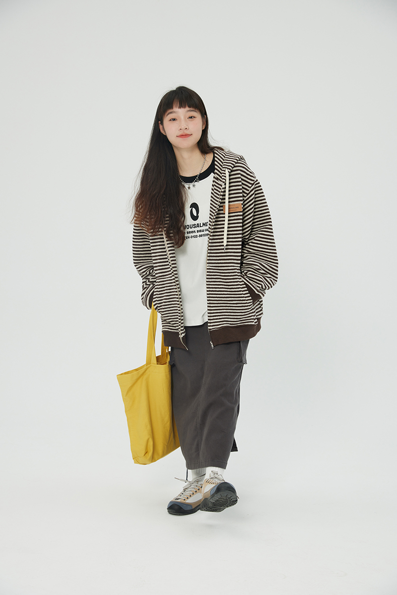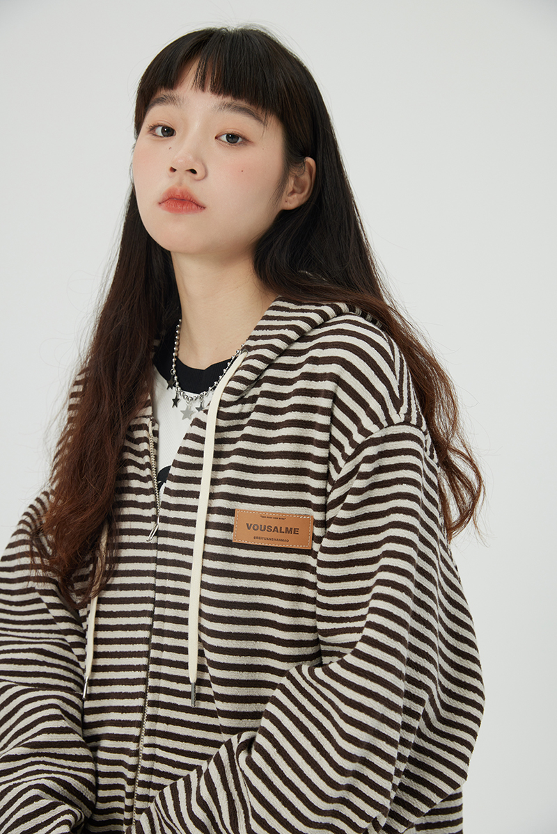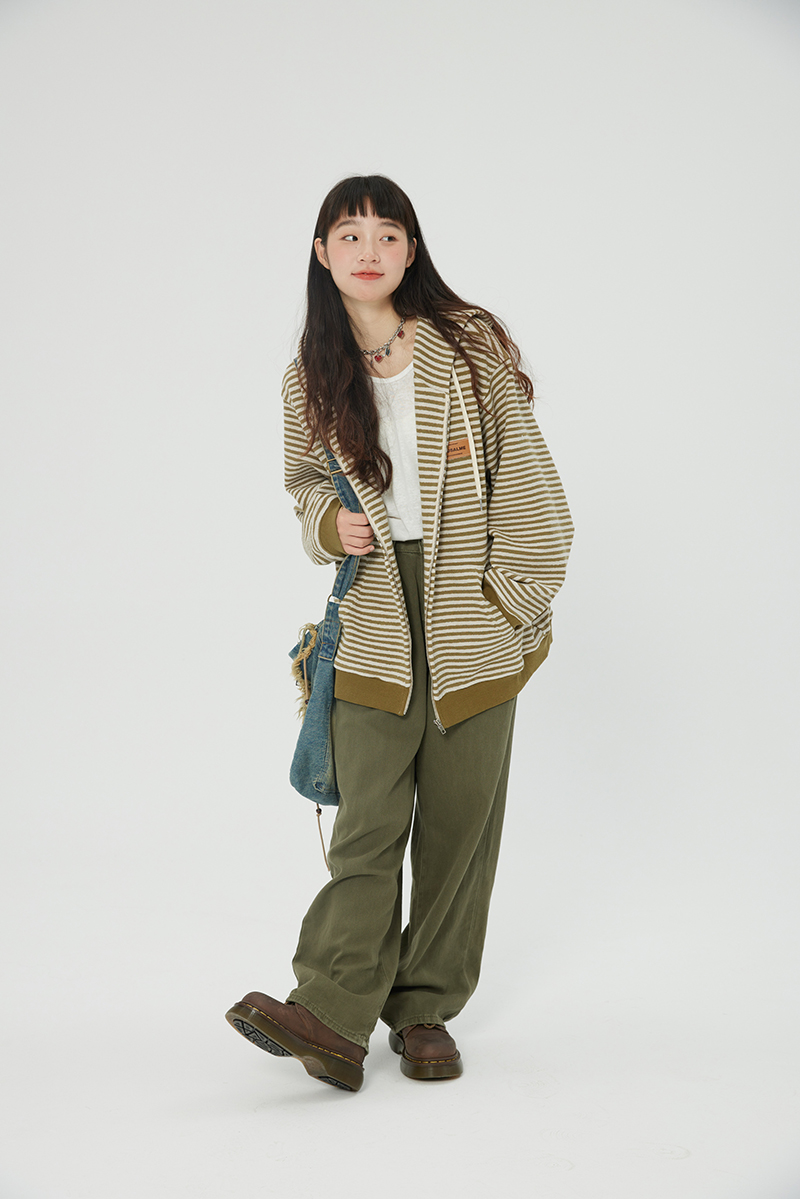 北原山貓 22ss/原創秋季條紋連帽運動衫女休閒寬鬆加厚長袖開衫外套