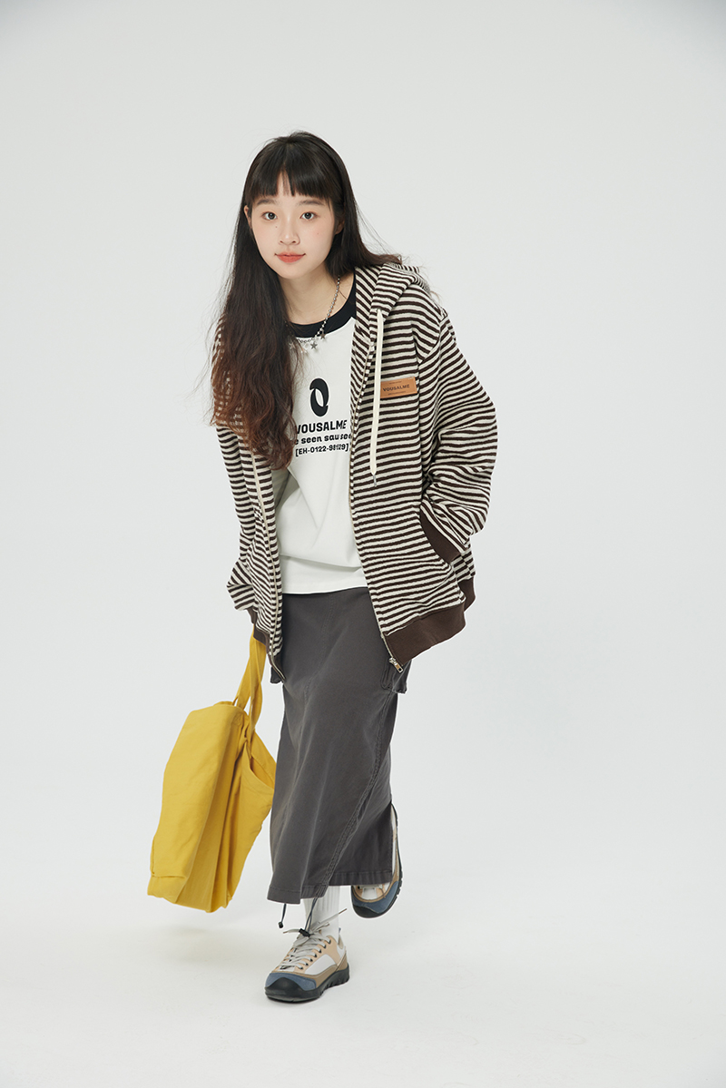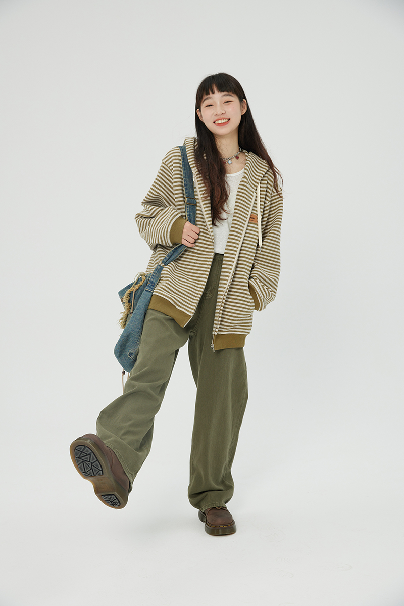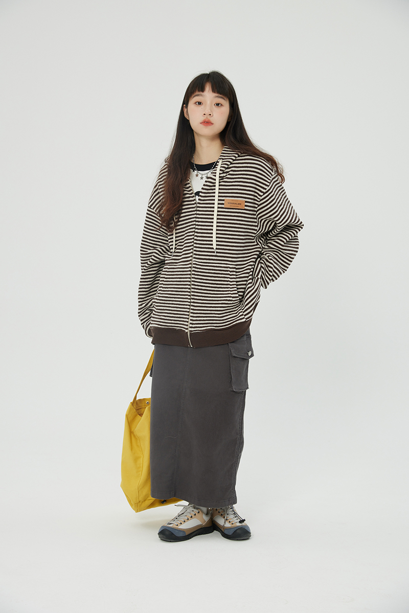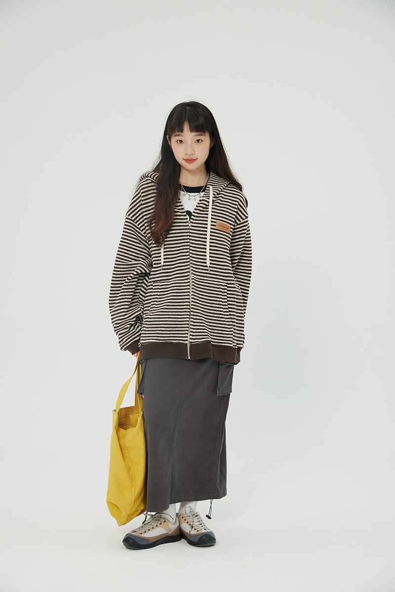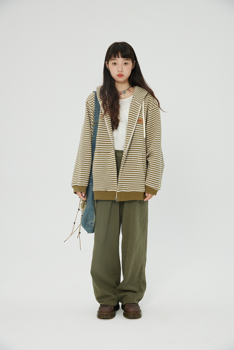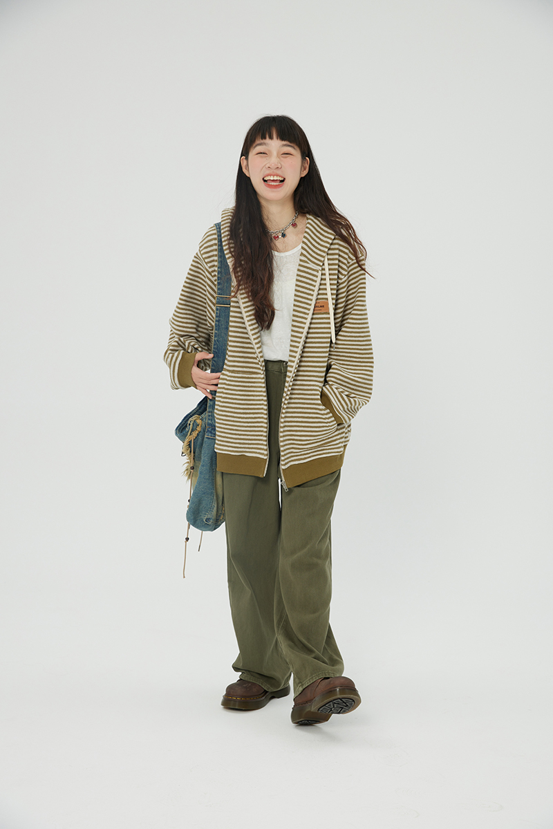 北原山貓 22ss/原創秋季條紋連帽運動衫女休閒寬鬆加厚長袖開衫外套
