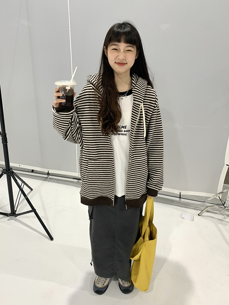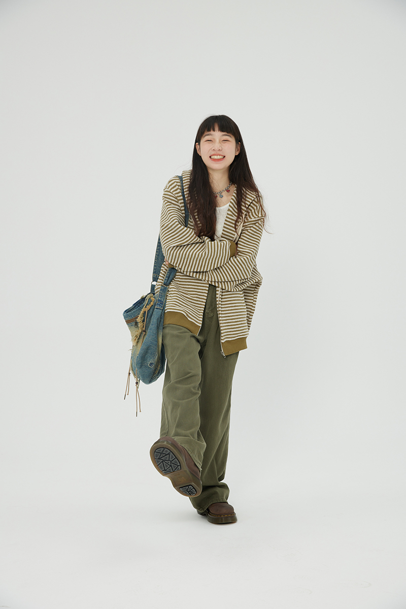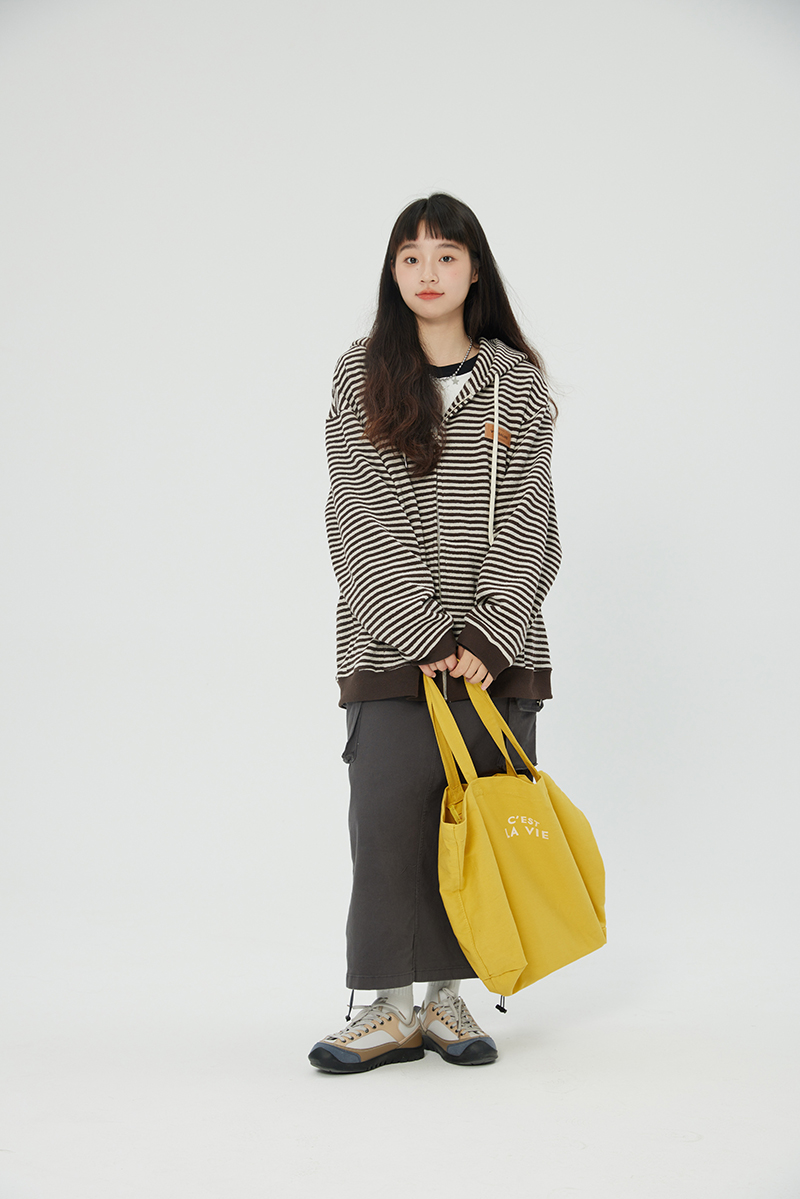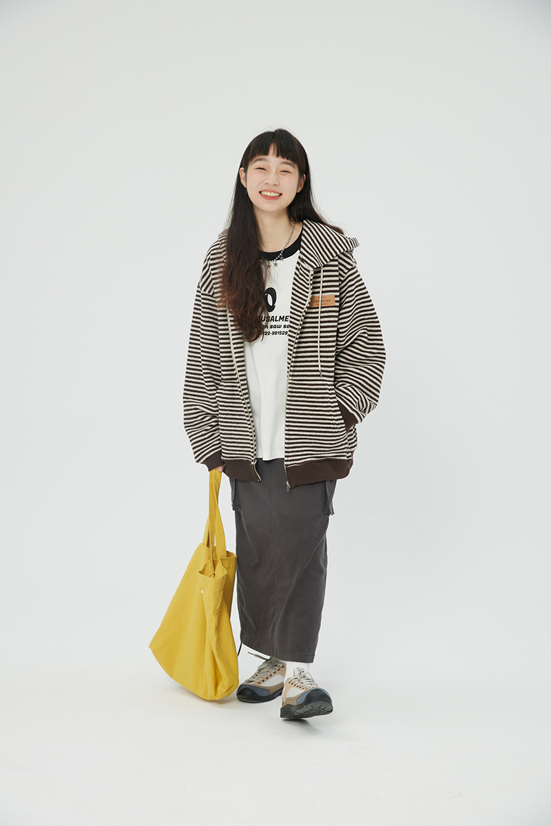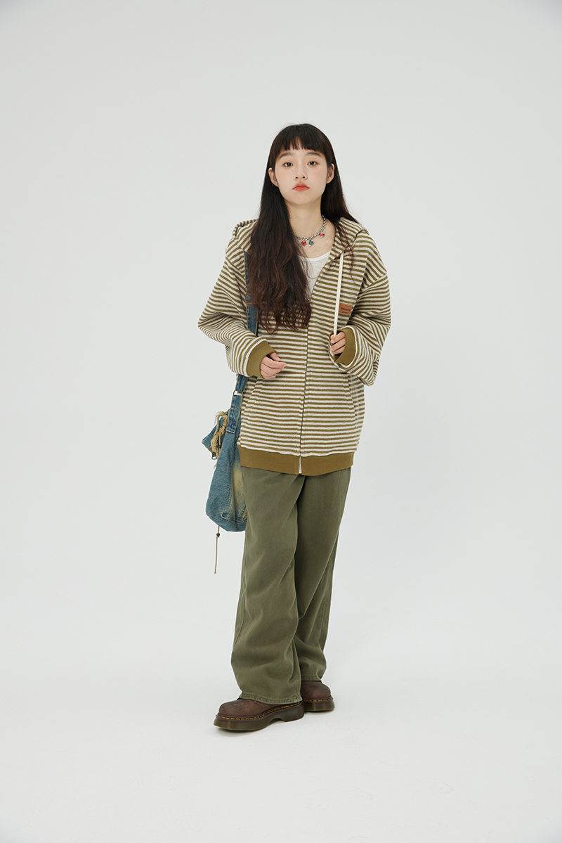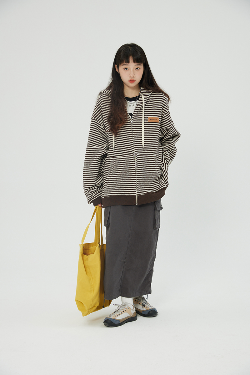 北原山貓 22ss/原創秋季條紋連帽運動衫女休閒寬鬆加厚長袖開衫外套