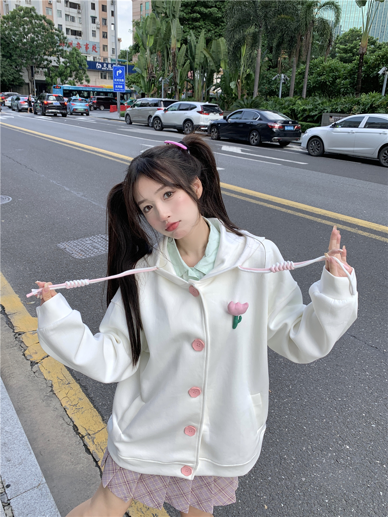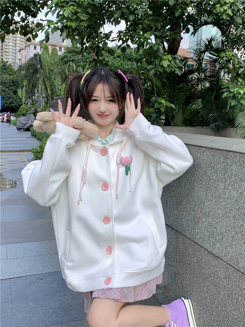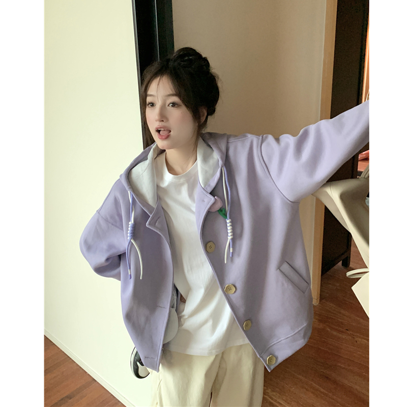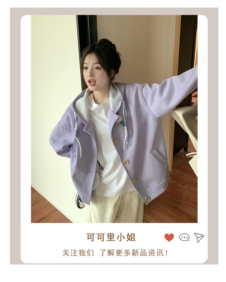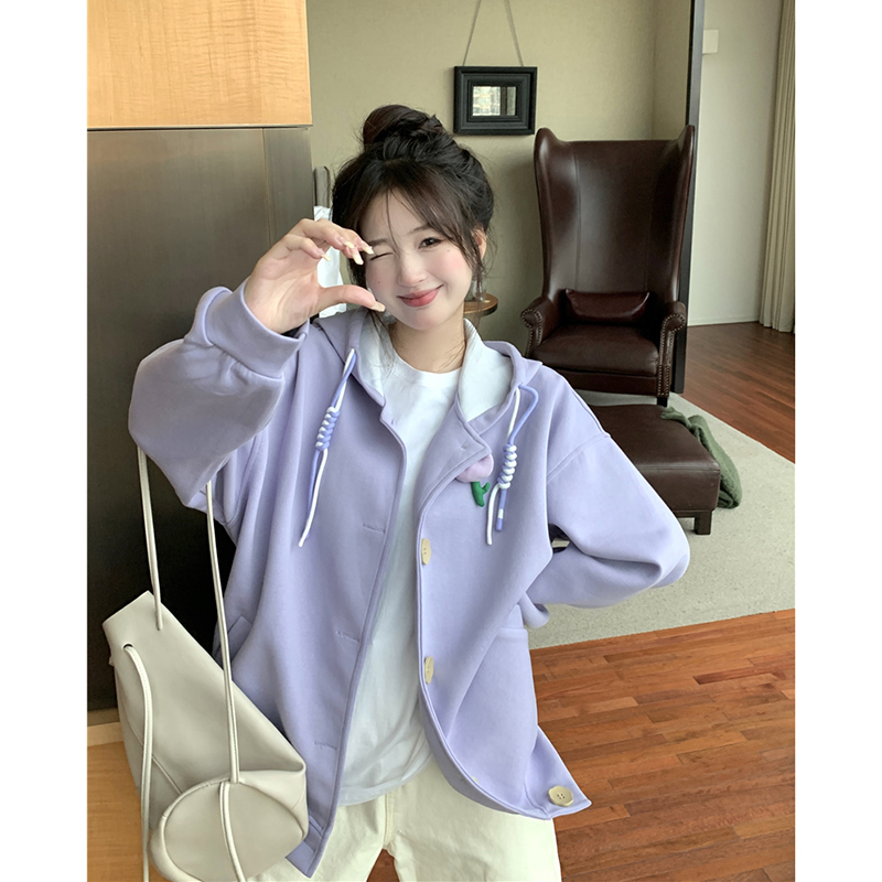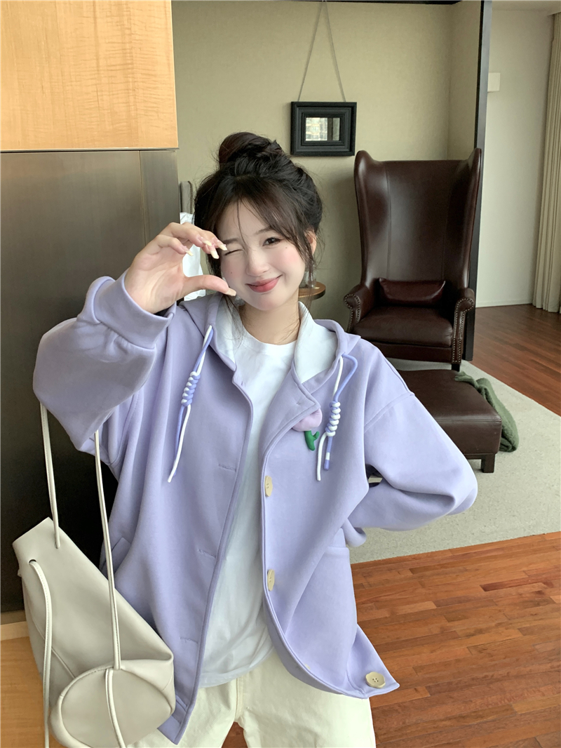 甜美森系設計感連帽長袖厚棉T女裝秋季2023新款時尚加厚寬鬆外套潮