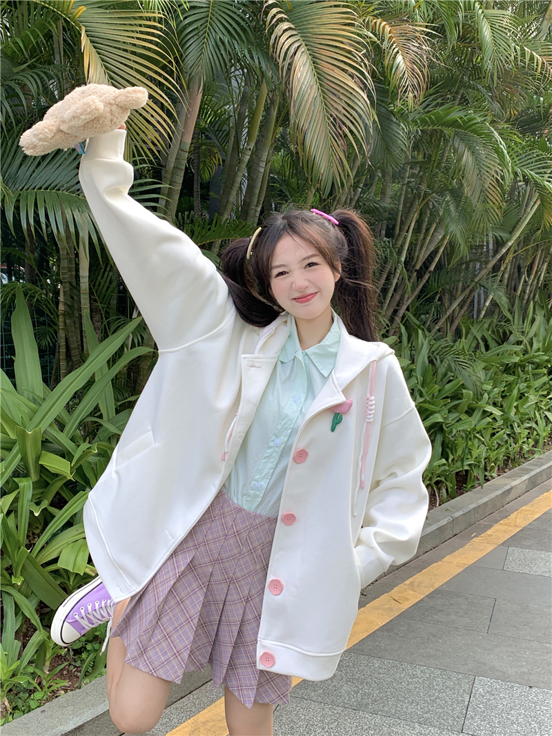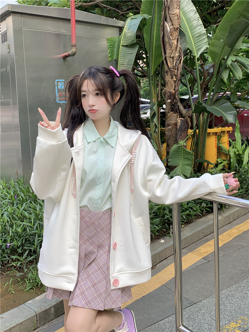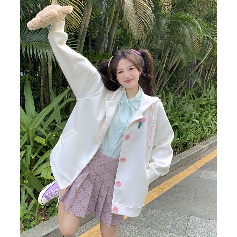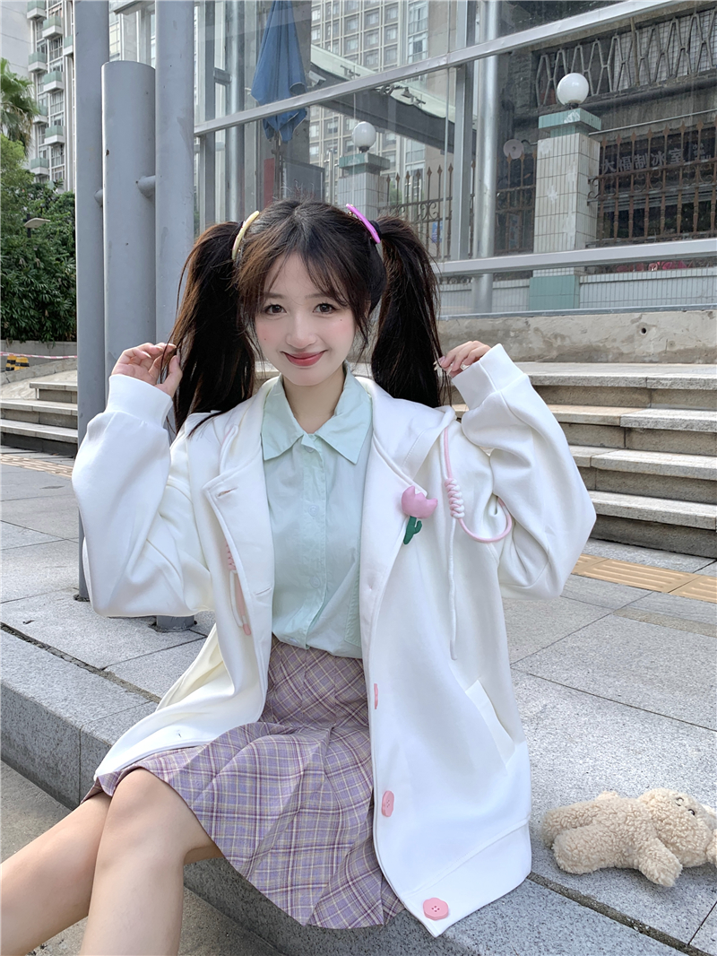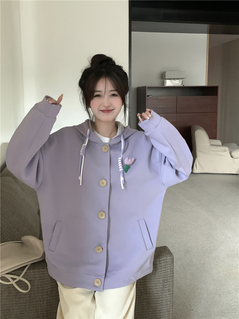 甜美森系設計感連帽長袖厚棉T女裝秋季2023新款時尚加厚寬鬆外套潮